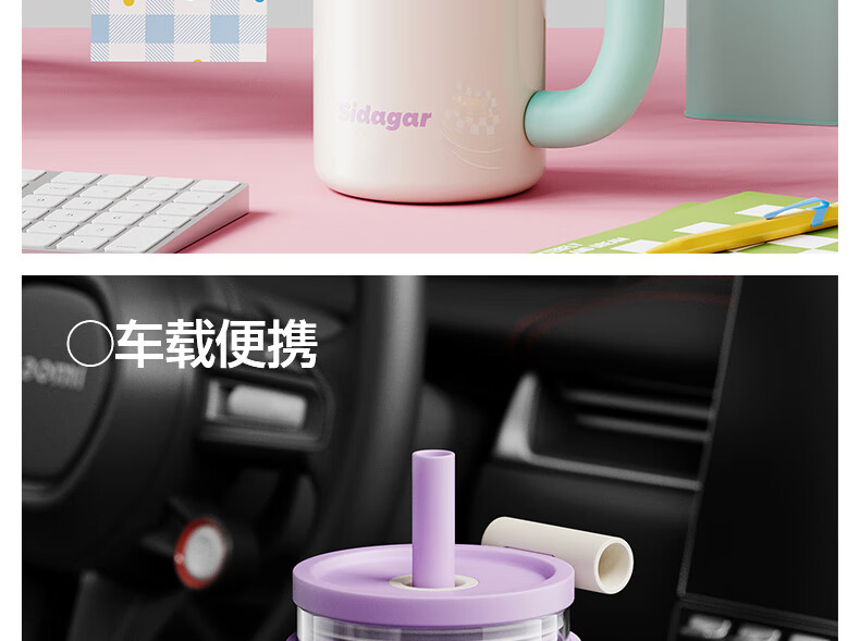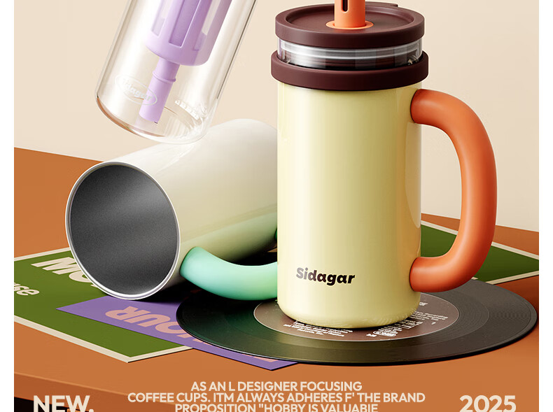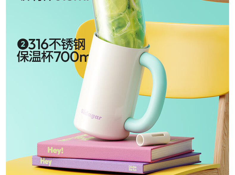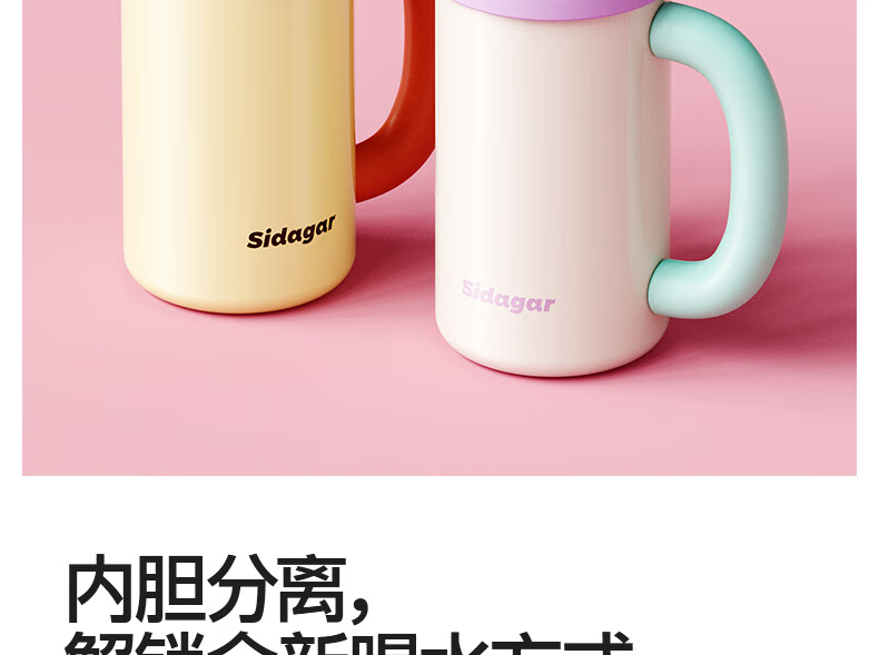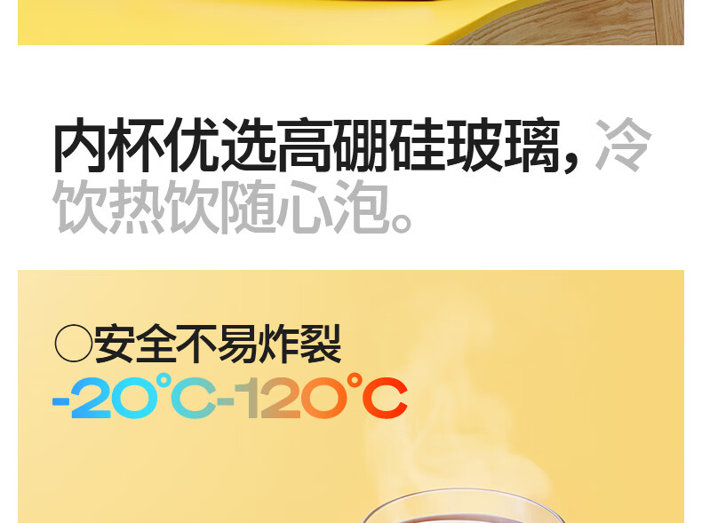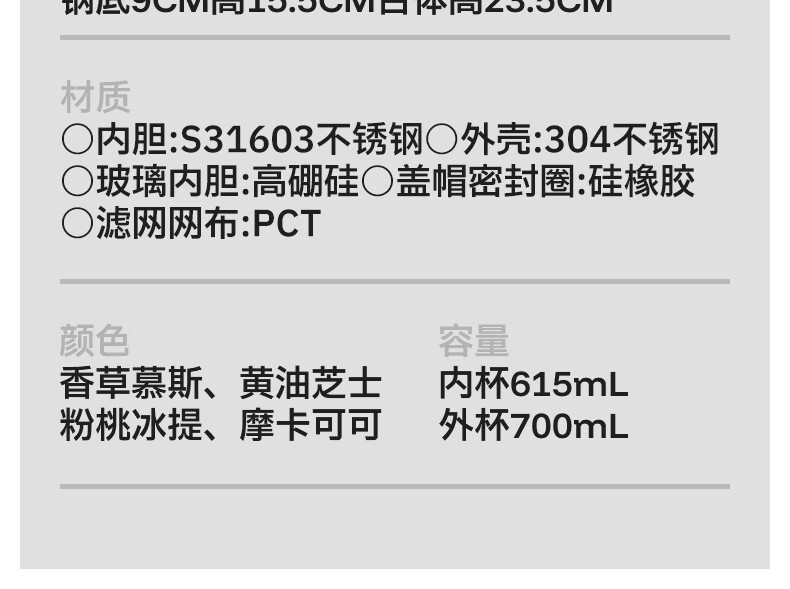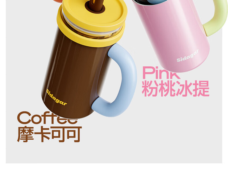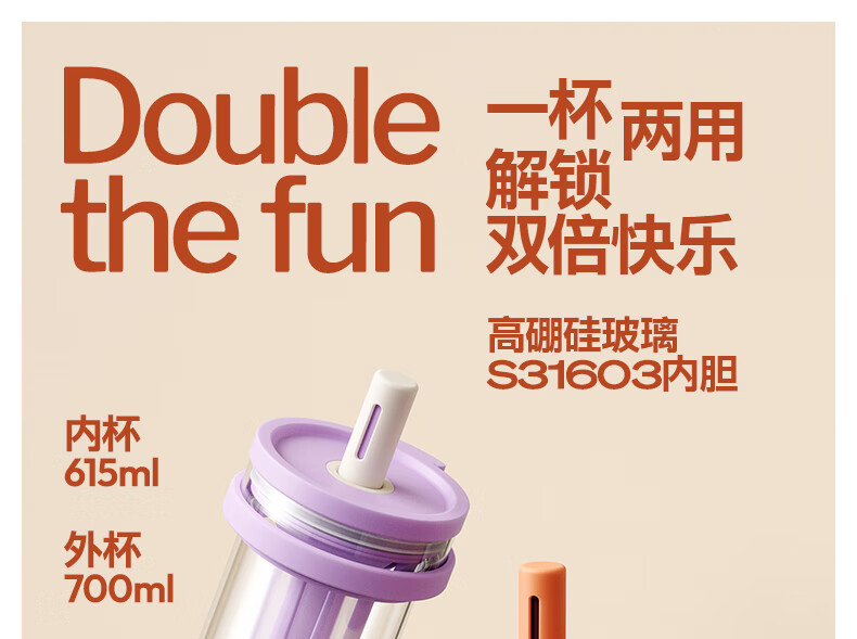 世大家保温杯女士水杯玻璃杯高颜值大容量双享咖啡杯办公家用便携杯子 摩卡可可【一杯两用】 外杯700ml内杯615ml