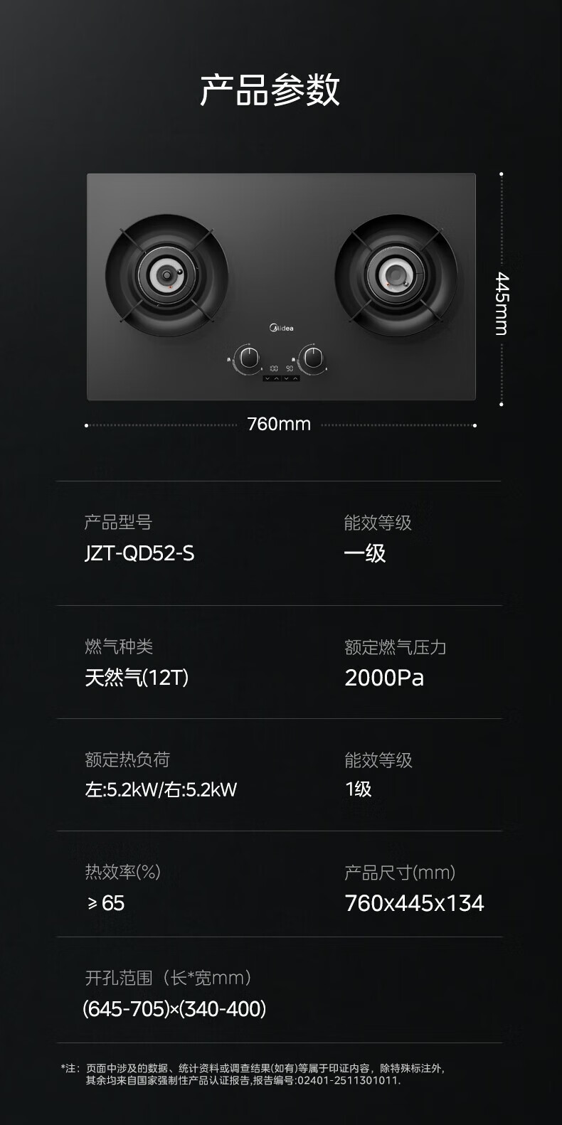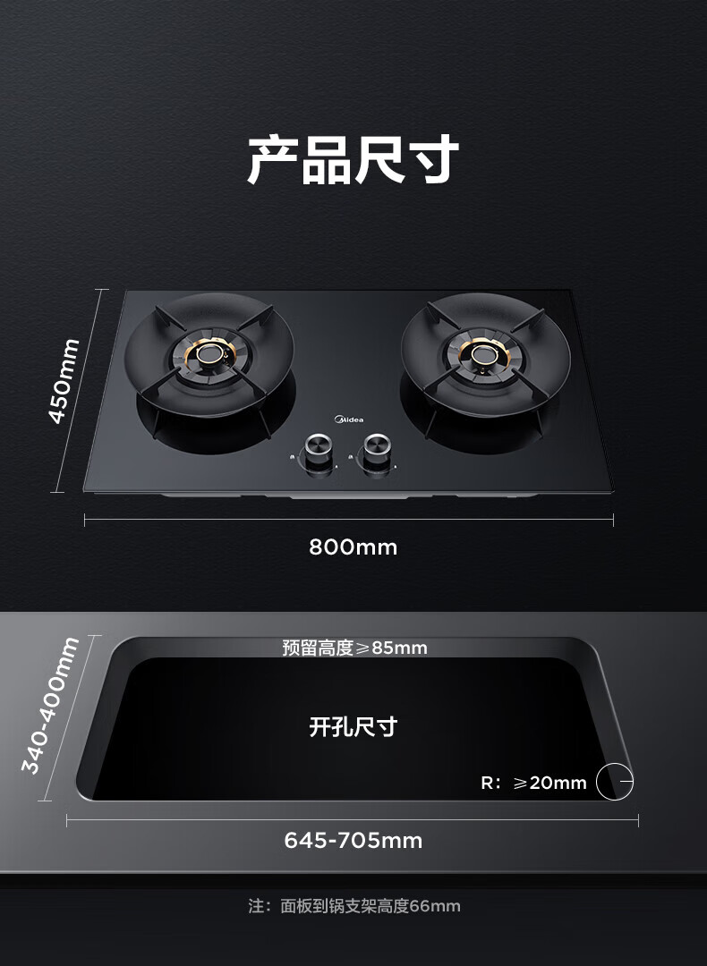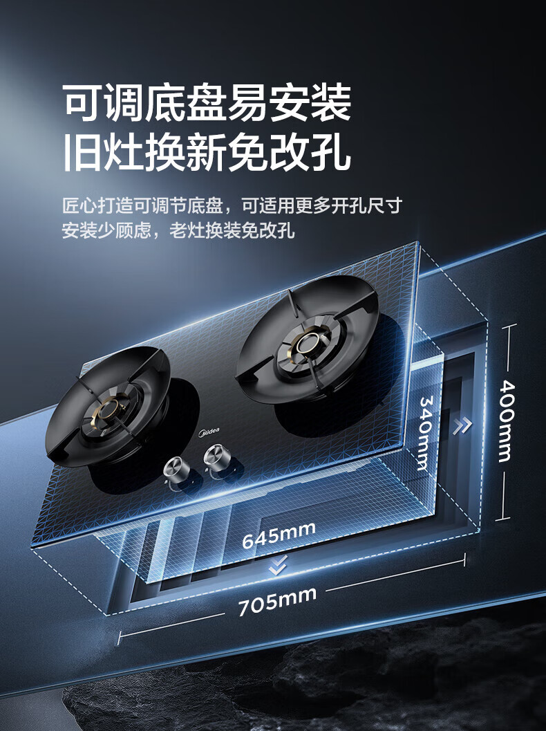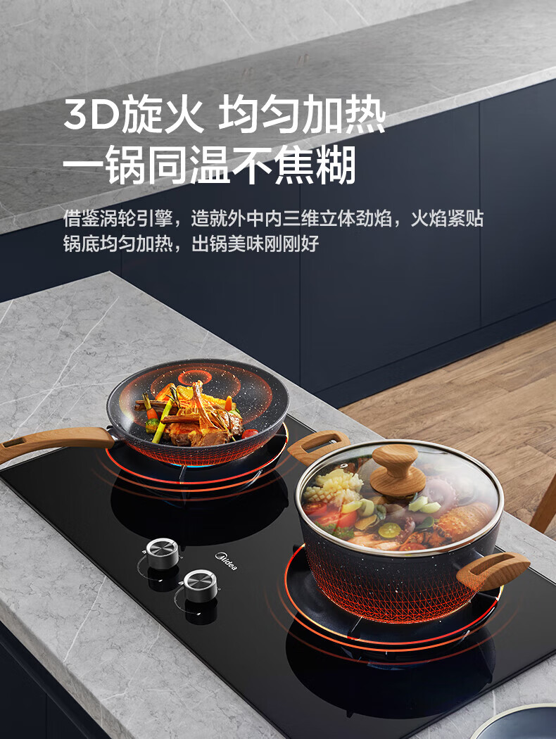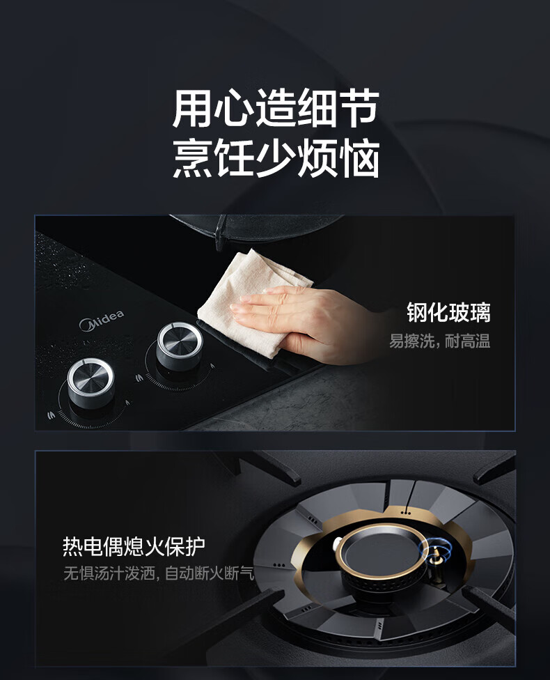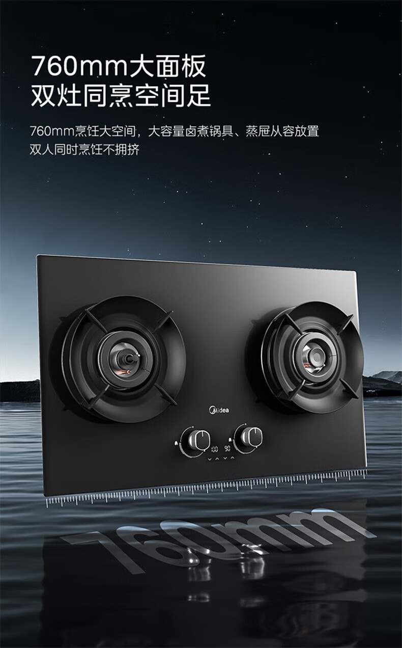 美的(Midea)【QD529 可搭配蒸汽洗系列】燃气灶 5.2kW猛火灶 双边定时 铜火盖 天然气 台嵌两用70%热效率 灶具 天然气12T 【QD529】双边定时5.2Kw大火力