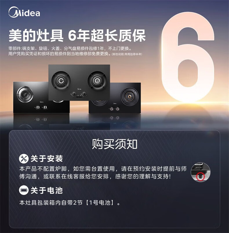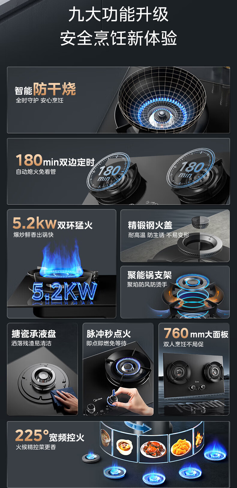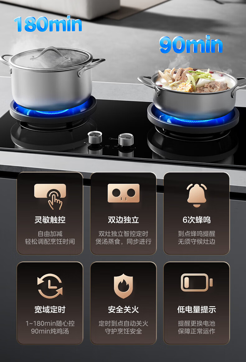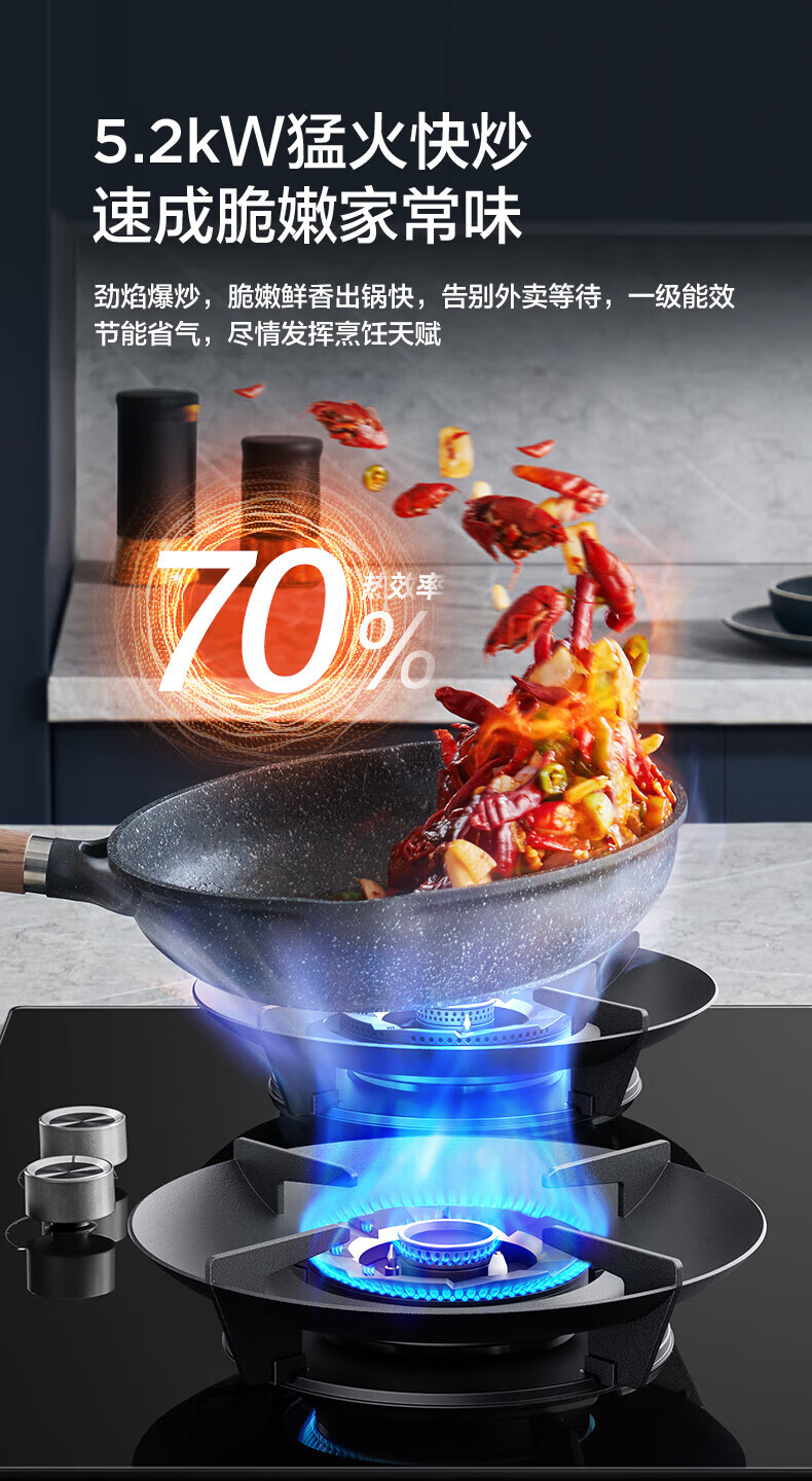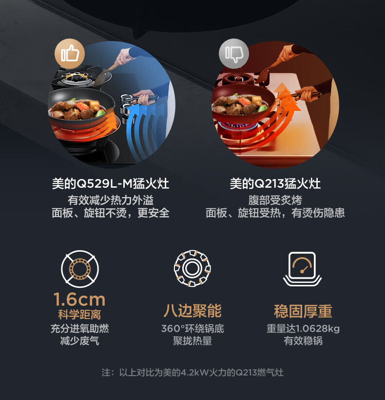 美的(Midea)【QD529 可搭配蒸汽洗系列】燃气灶 5.2kW猛火灶 双边定时 铜火盖 天然气 台嵌两用70%热效率 灶具 天然气12T 【QD529】双边定时5.2Kw大火力