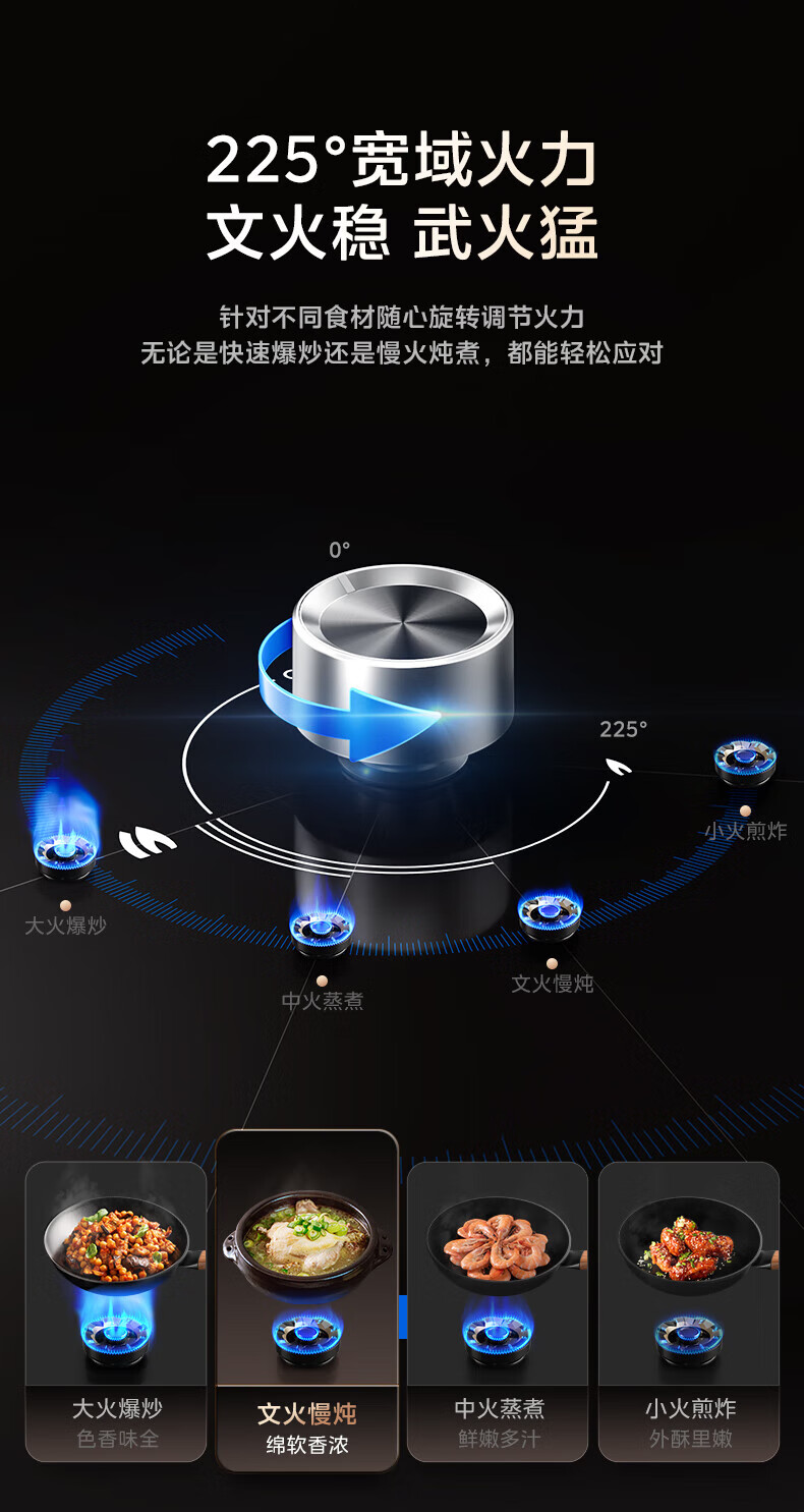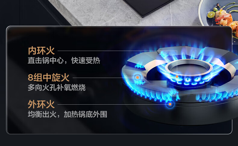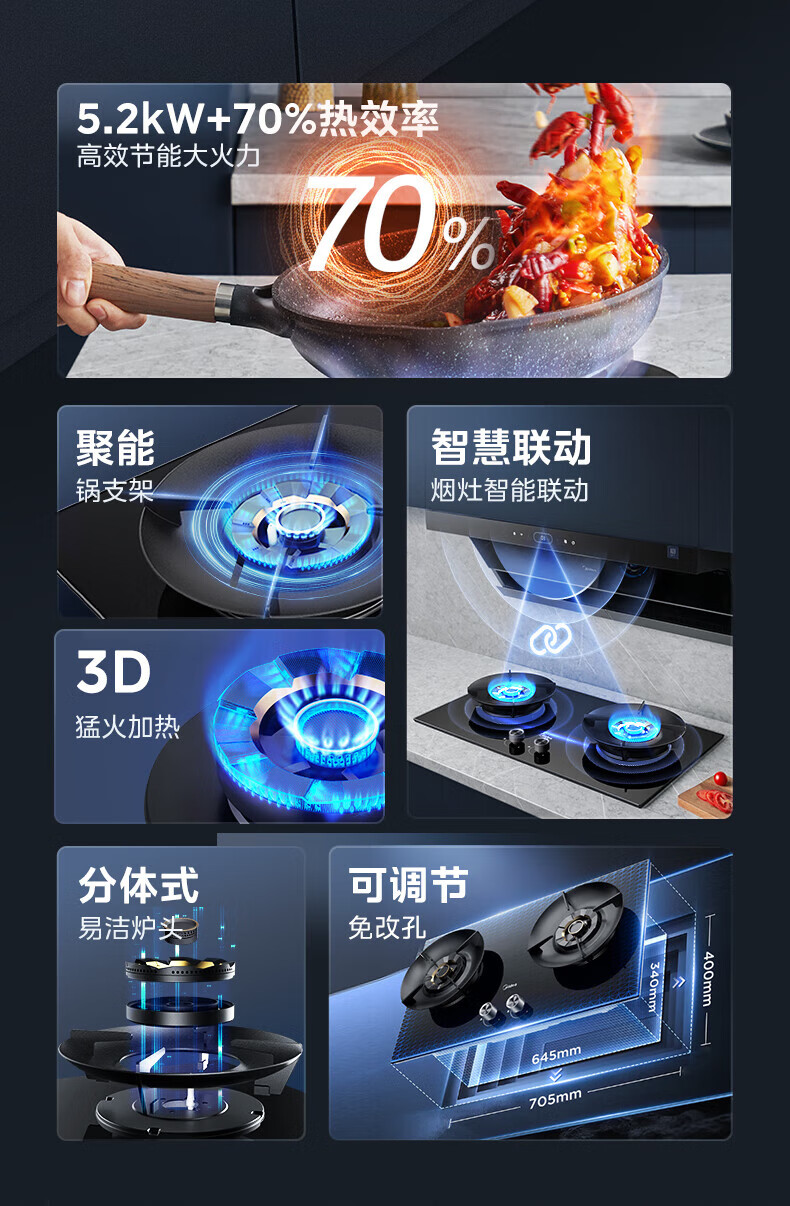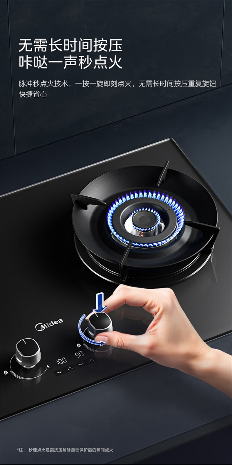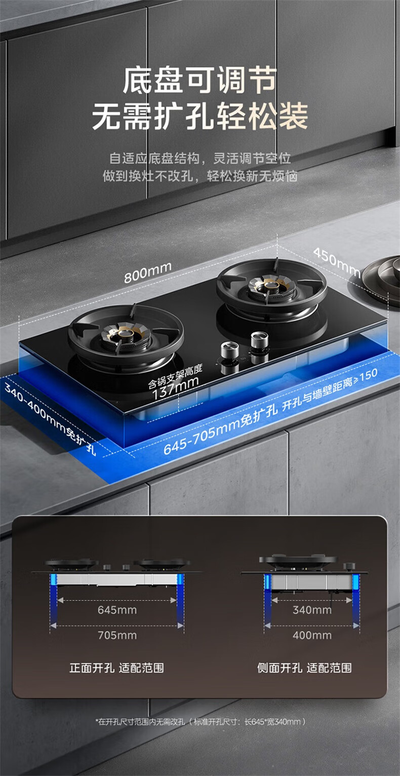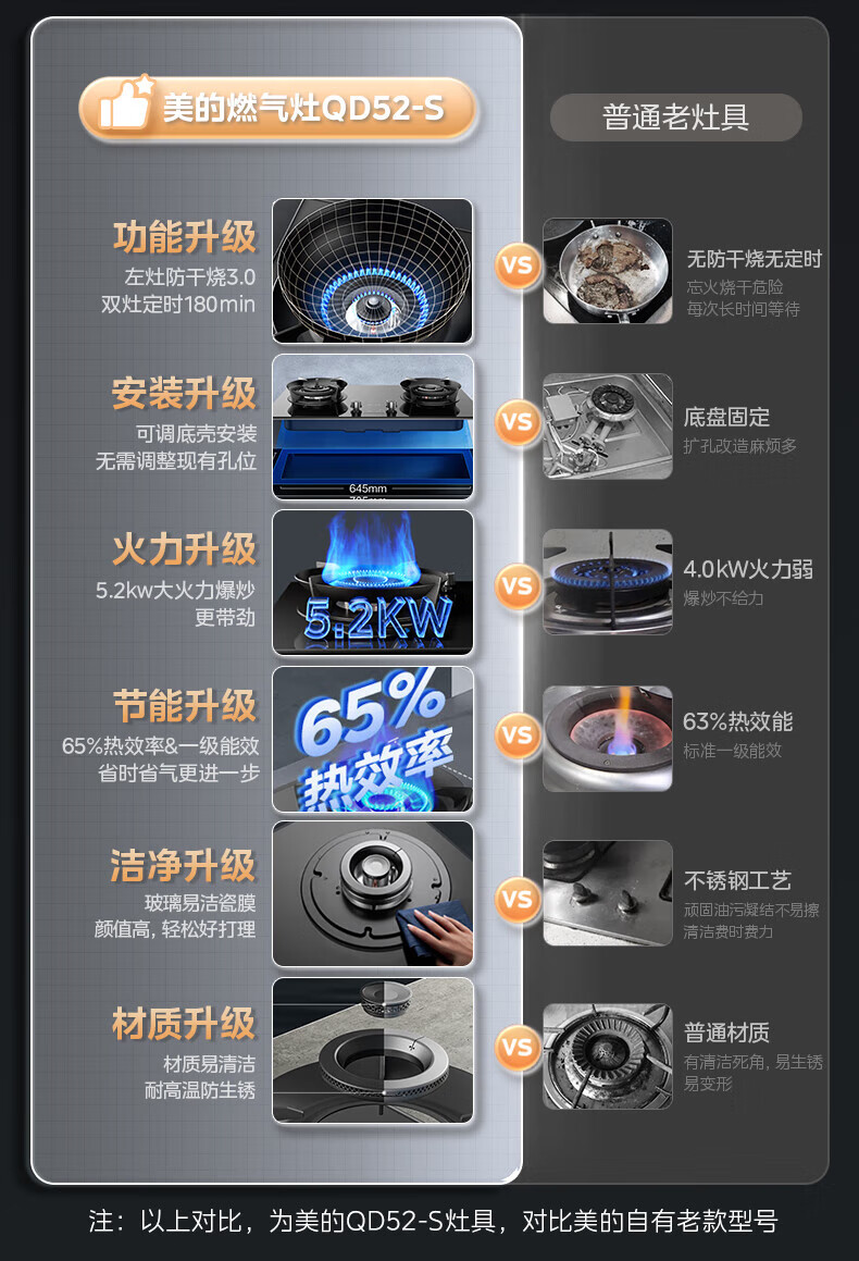 美的(Midea)【QD529 可搭配蒸汽洗系列】燃气灶 5.2kW猛火灶 双边定时 铜火盖 天然气 台嵌两用70%热效率 灶具 天然气12T 【QD529】双边定时5.2Kw大火力