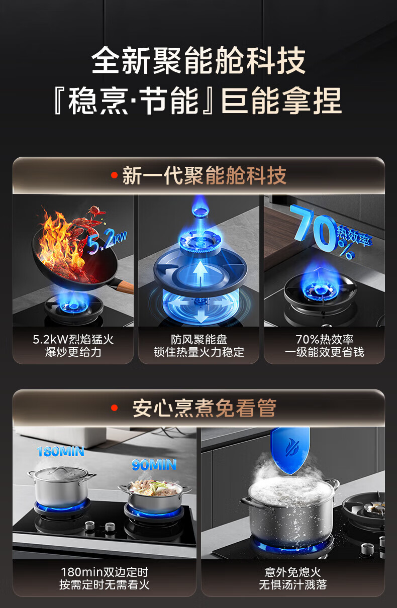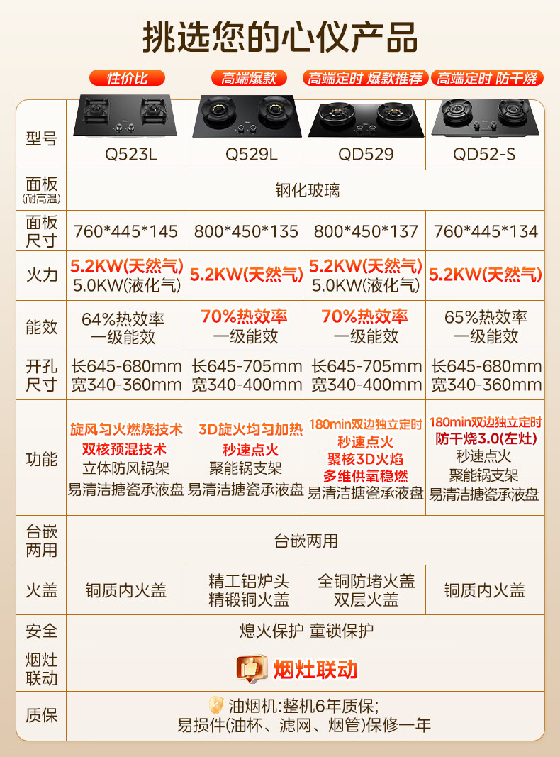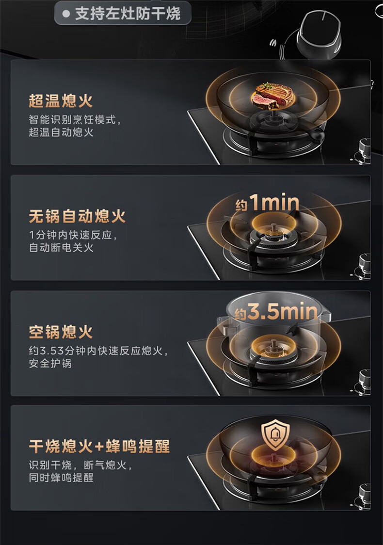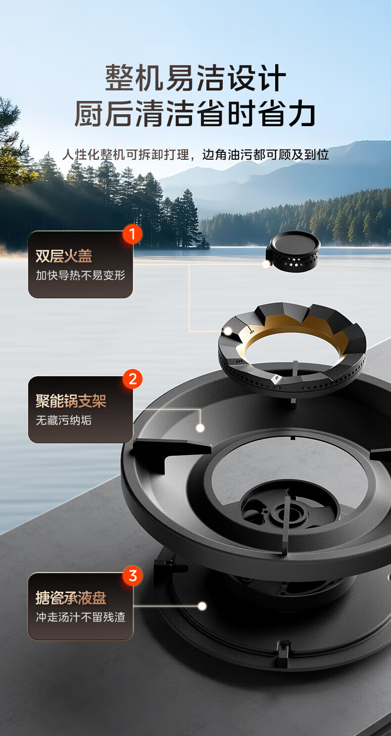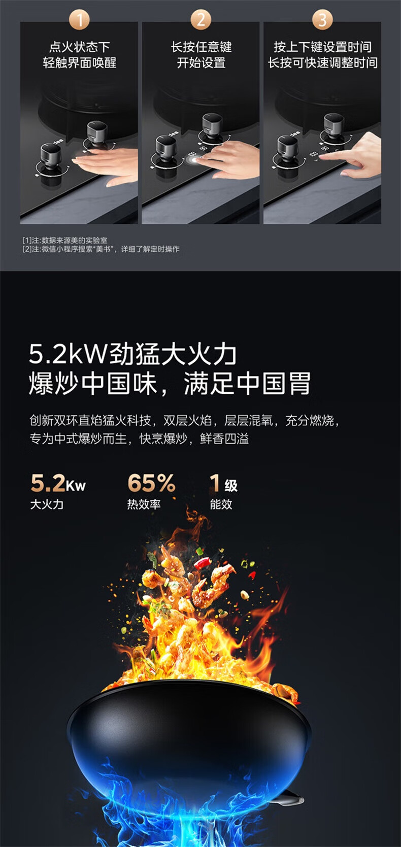 美的(Midea)【QD529 可搭配蒸汽洗系列】燃气灶 5.2kW猛火灶 双边定时 铜火盖 天然气 台嵌两用70%热效率 灶具 天然气12T 【QD529】双边定时5.2Kw大火力
