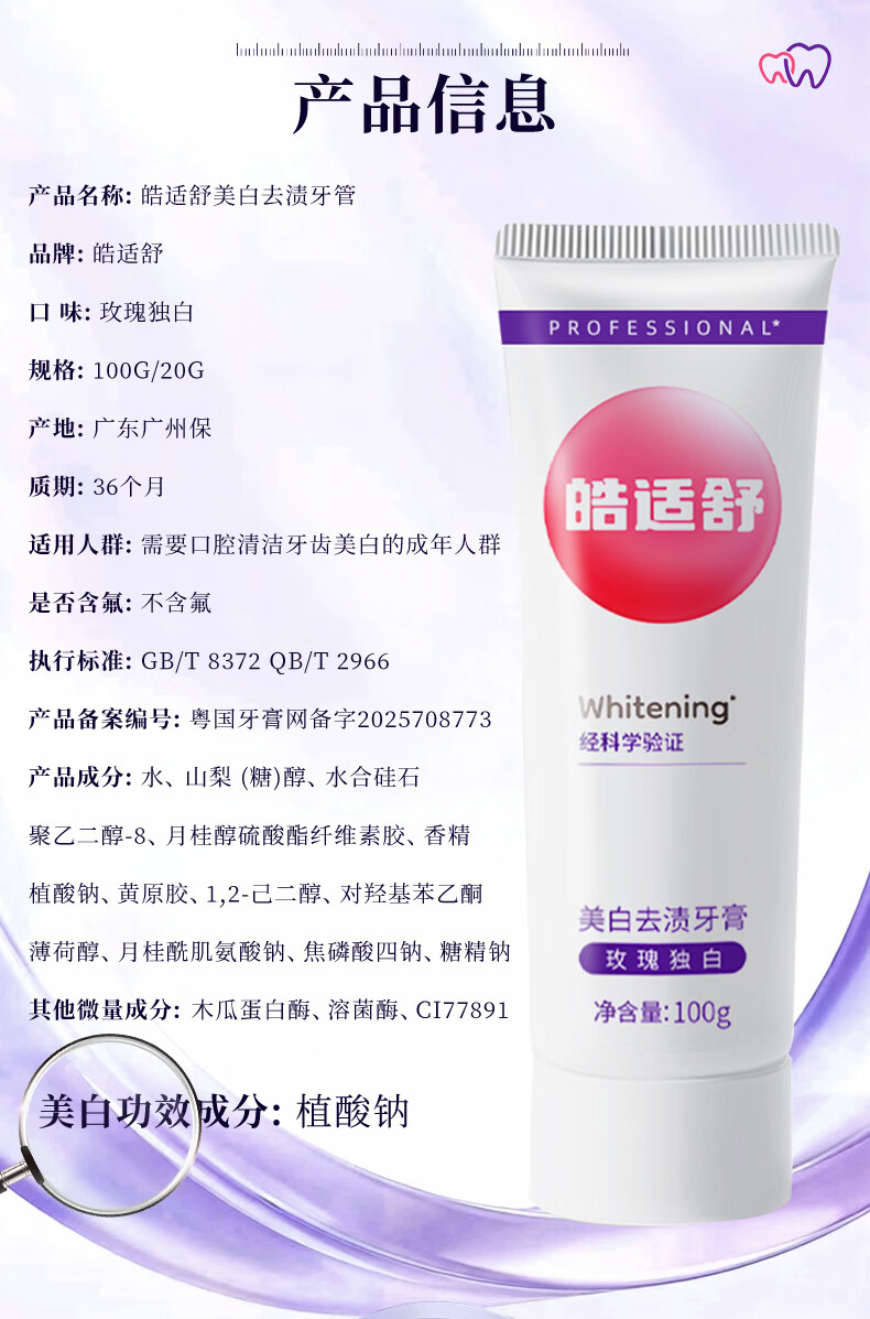 皓适舒美白牙膏去黄去渍去口臭去牙渍去烟渍牙垢官方正品牙刷 【赠电动牙刷】美白牙膏100g