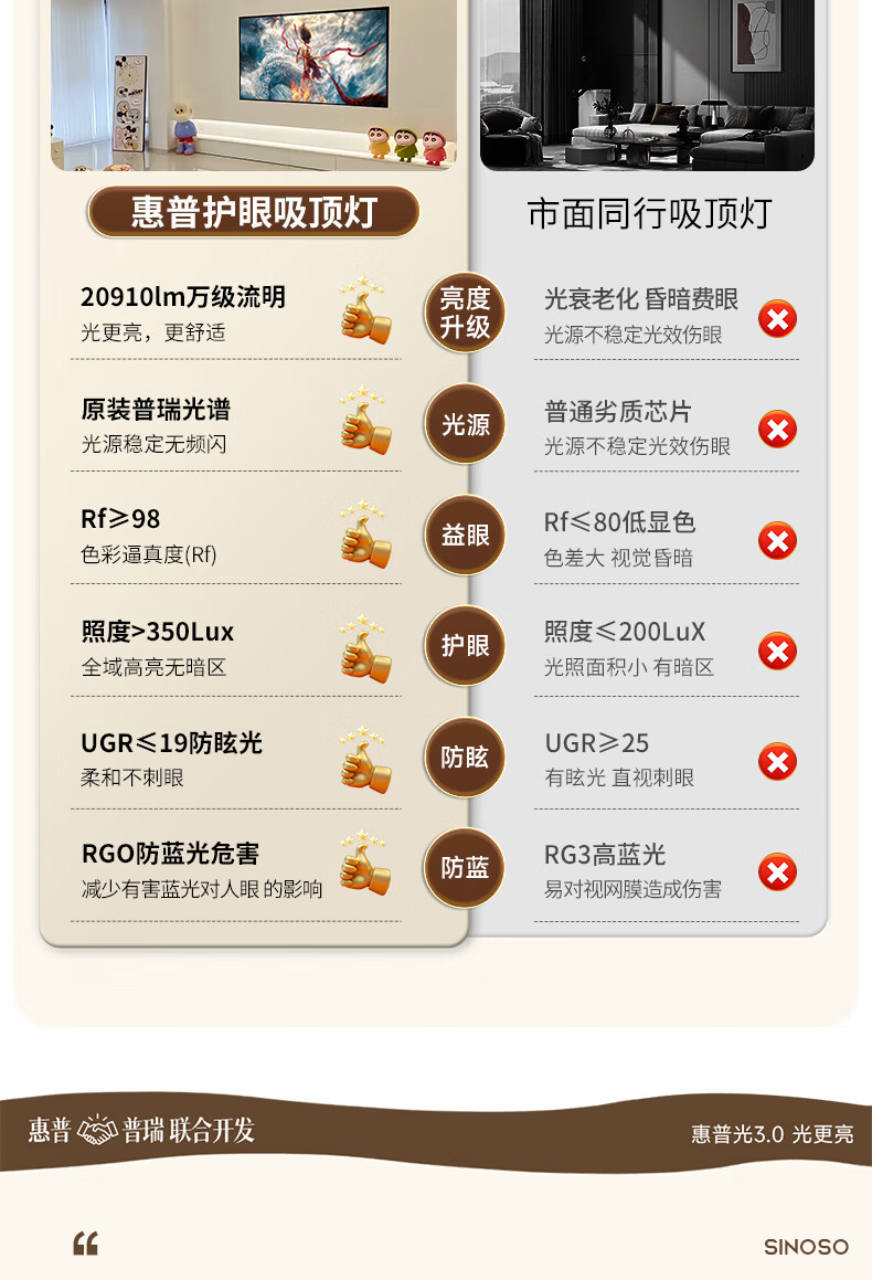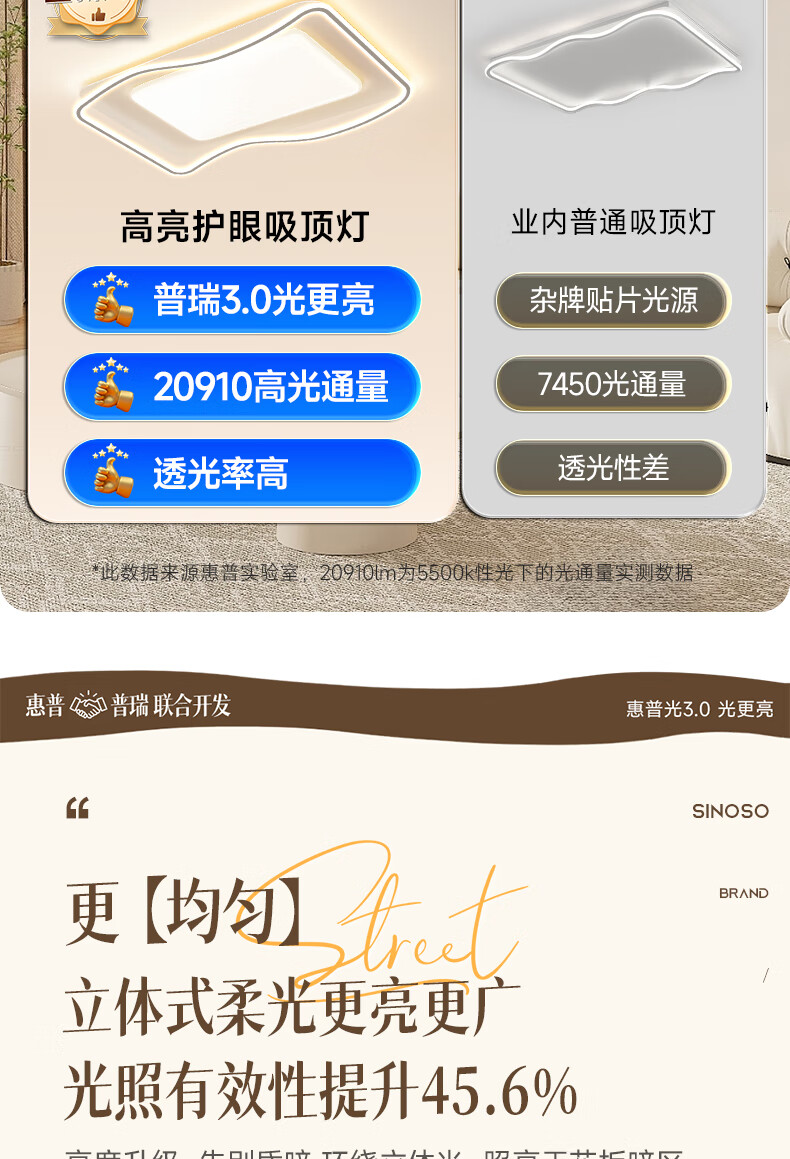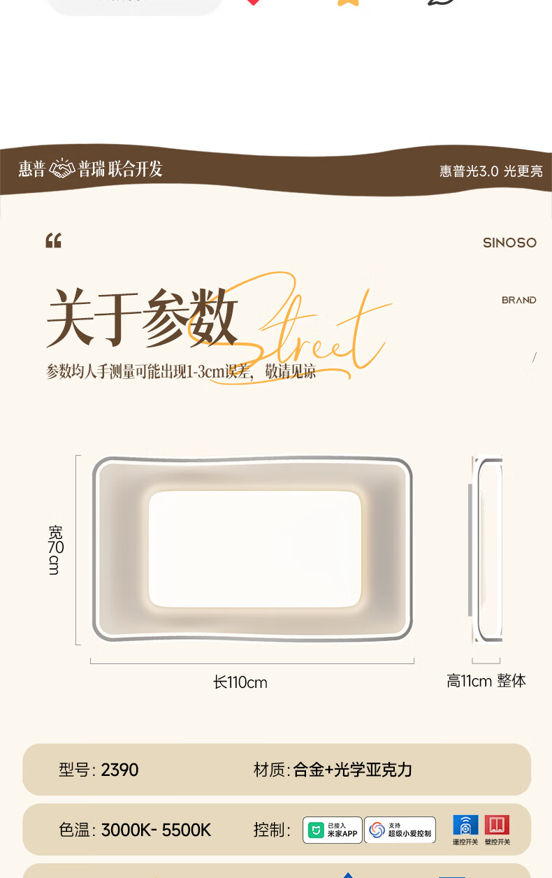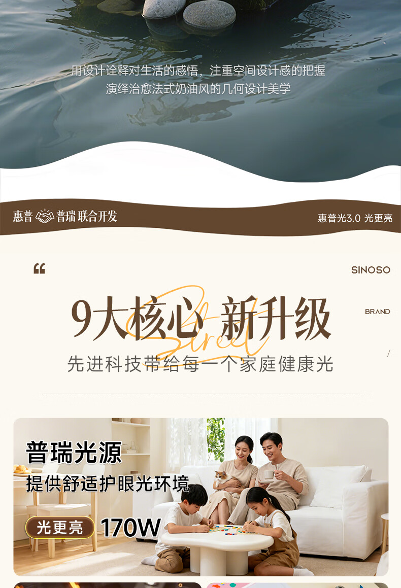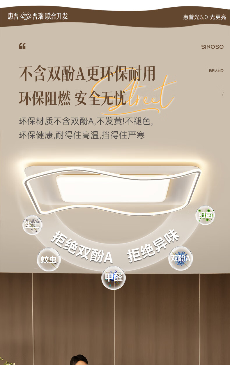 惠普吸顶灯客厅大灯主灯led智能APP北欧奶油风普瑞护眼中山灯具包安装