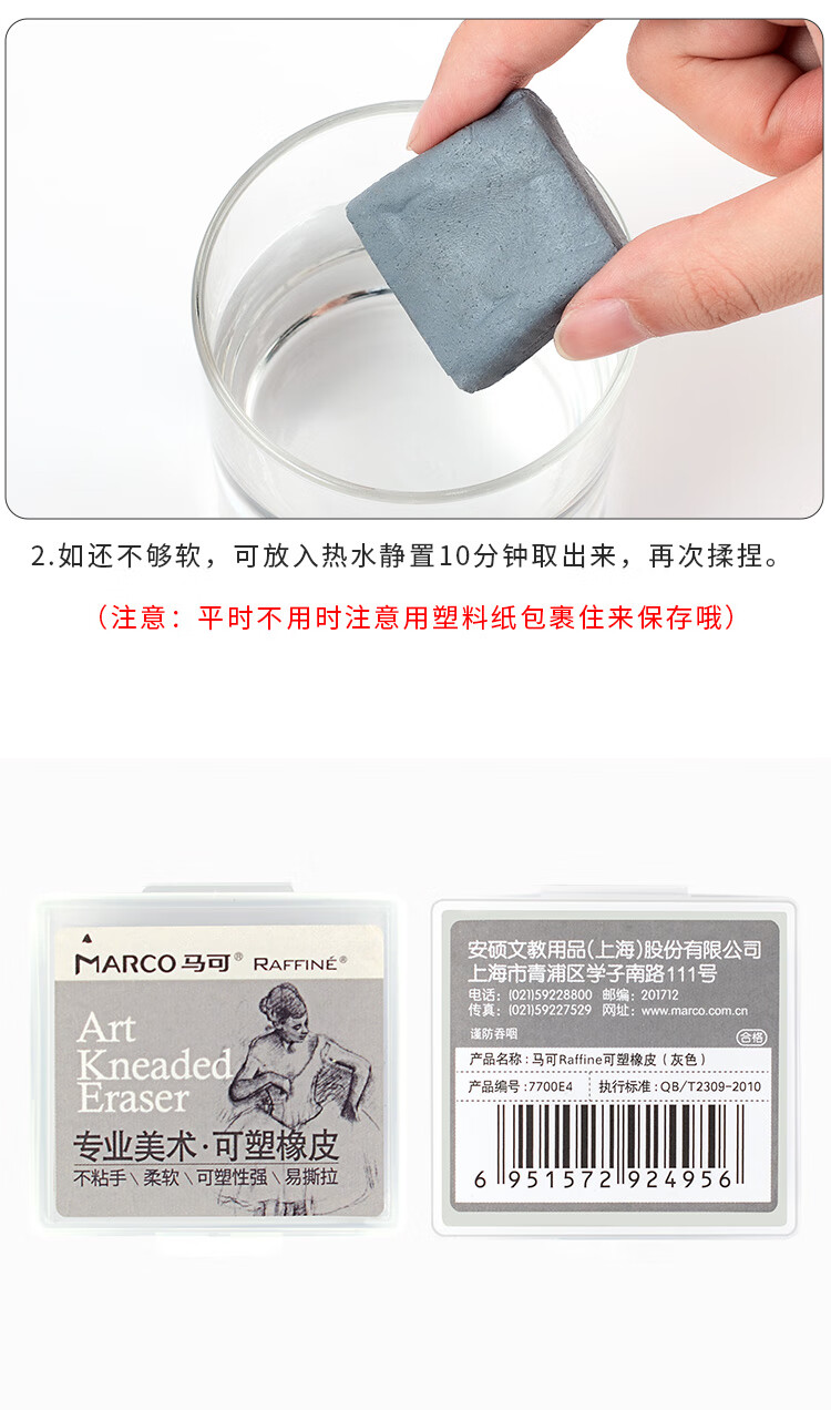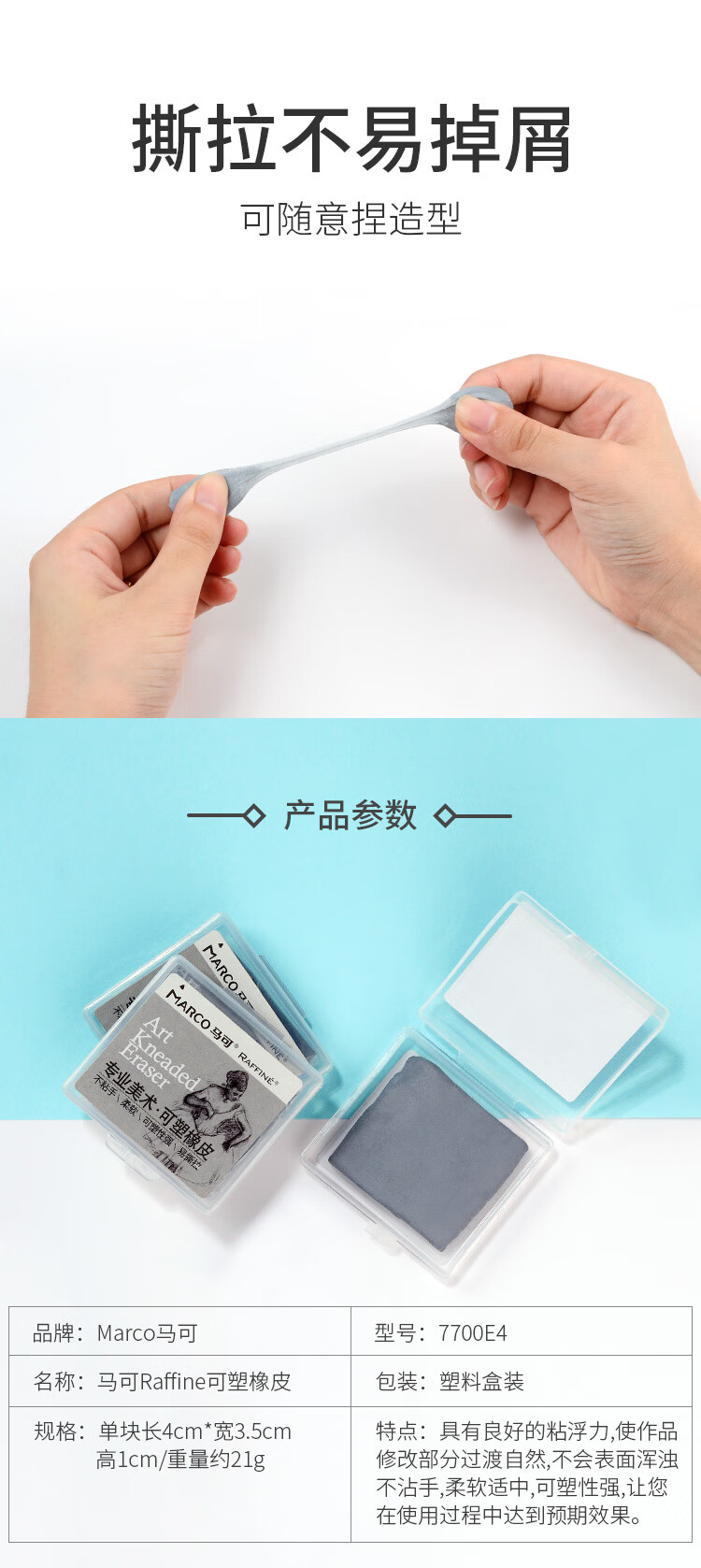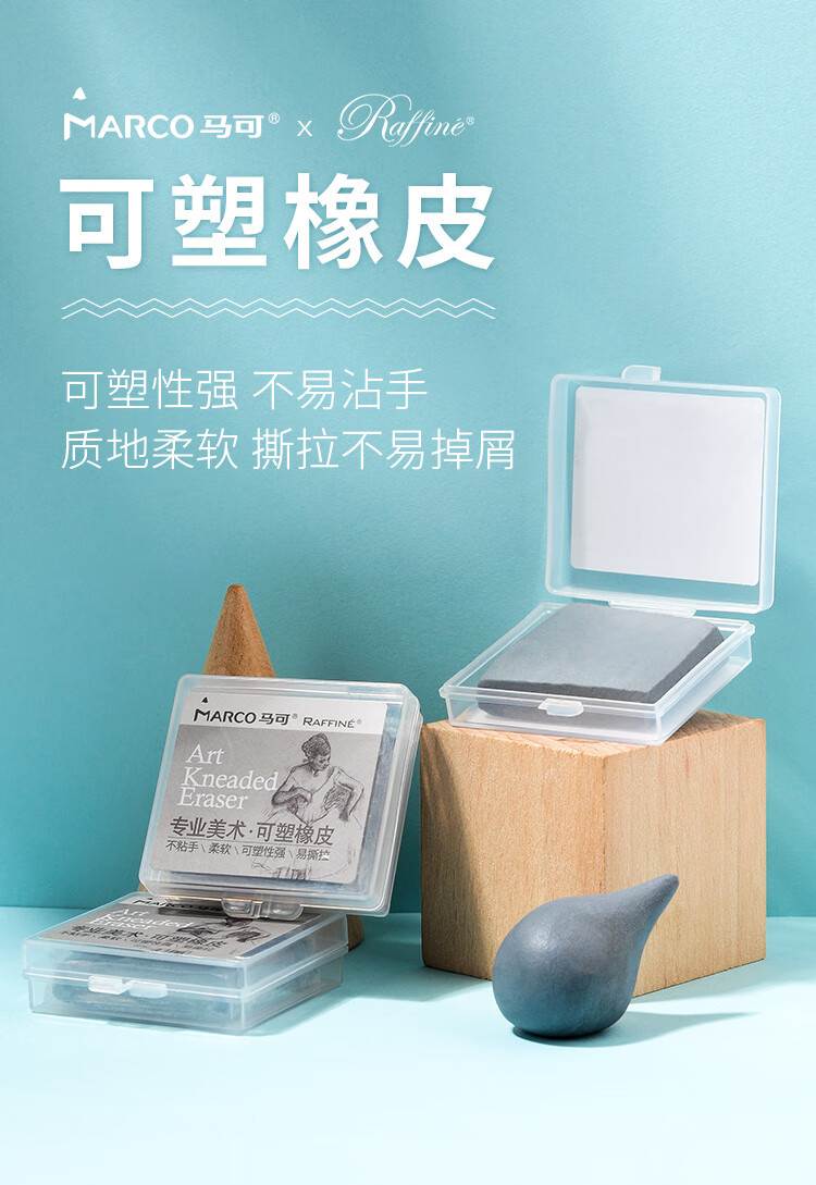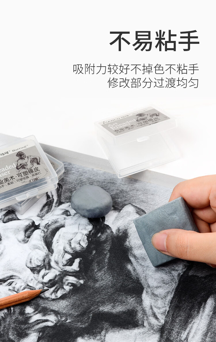 马可(MARCO)可塑橡皮素描专业学生用绘画美术粘性橡皮泥软高光素描软橡皮单块速写马克笔绘画