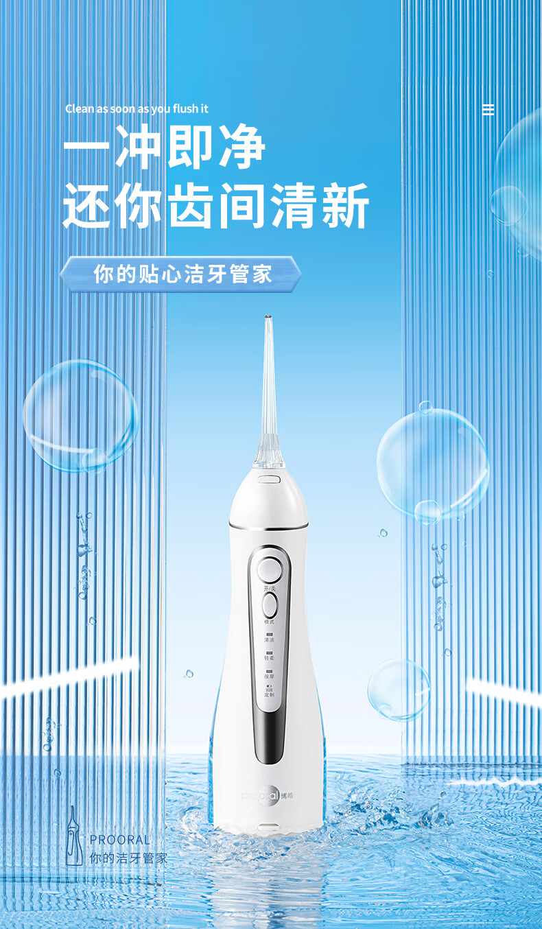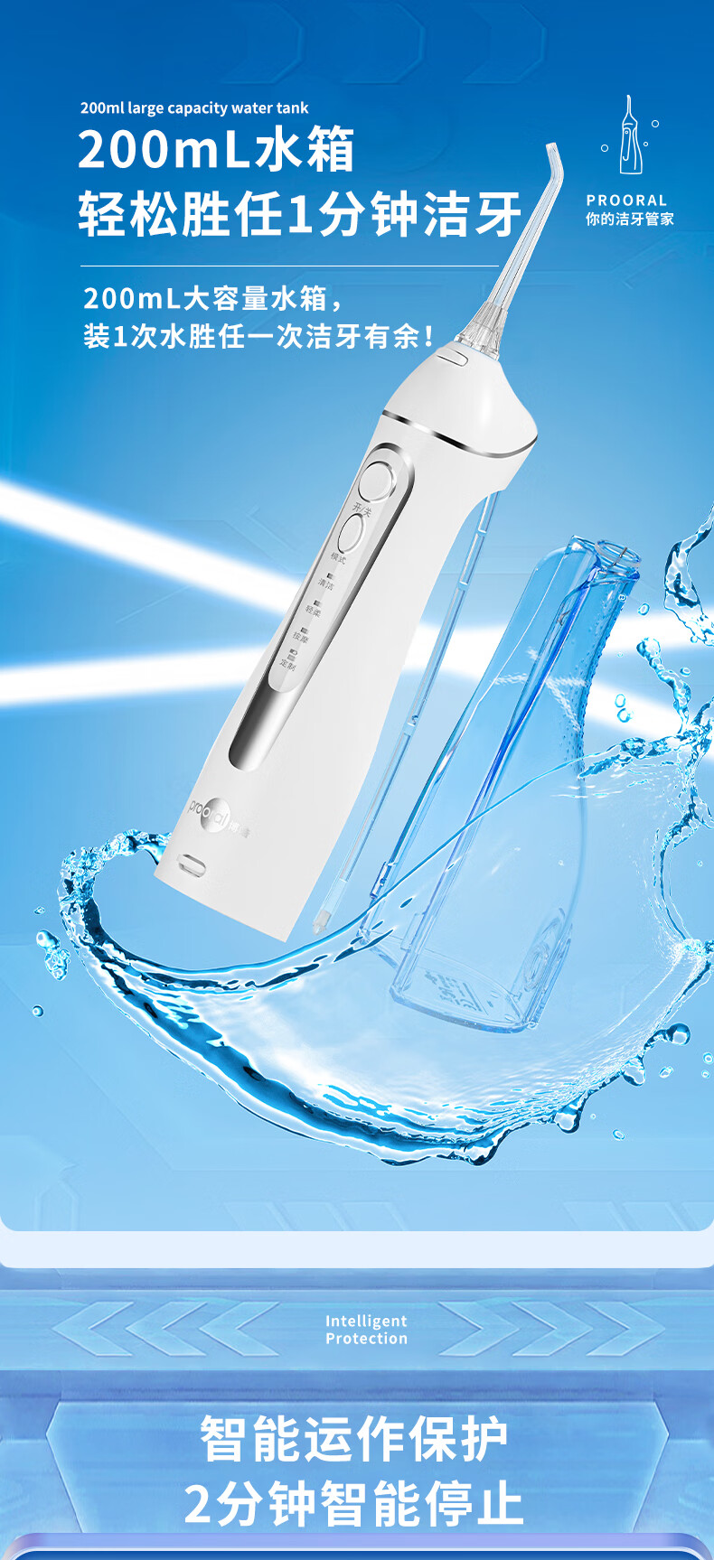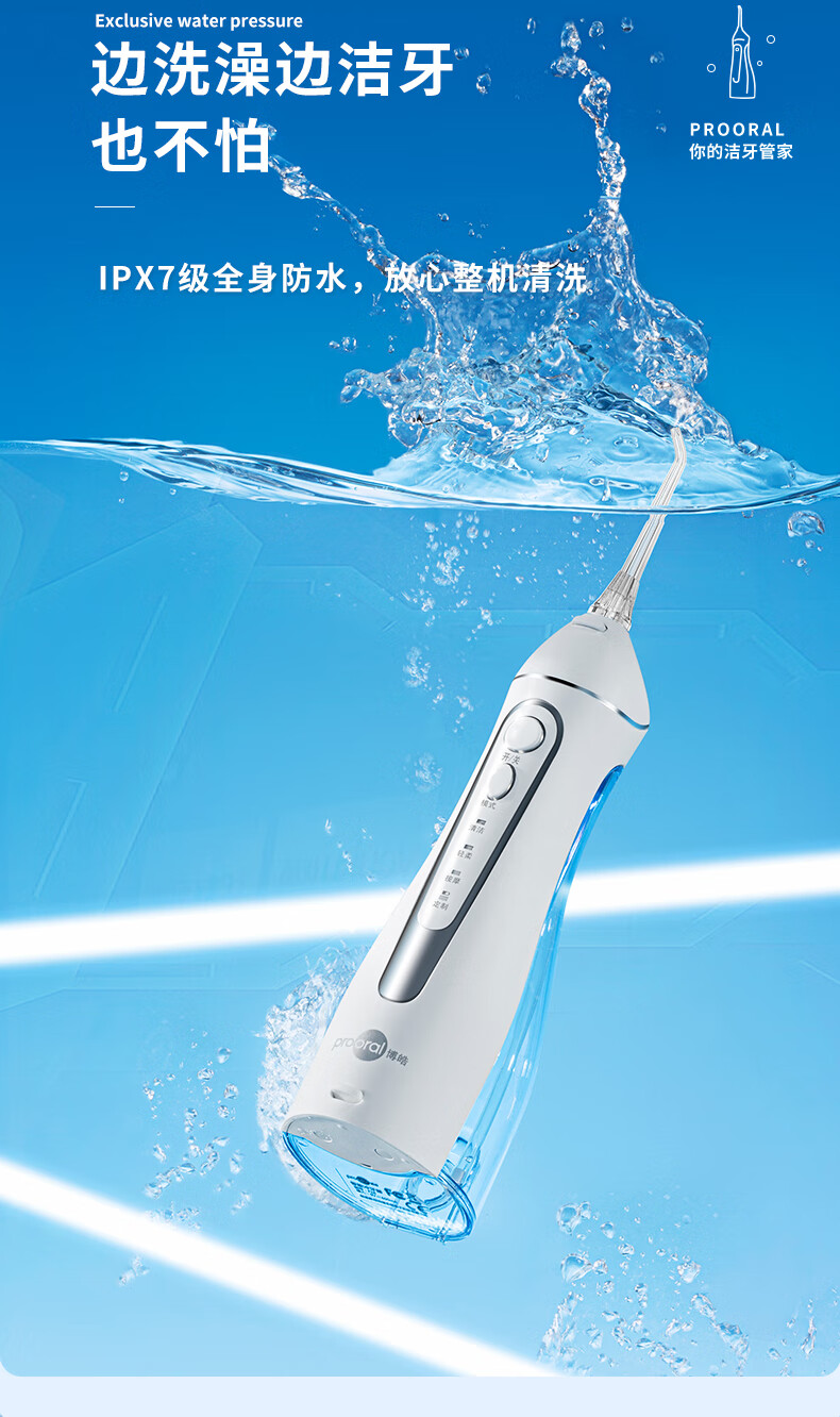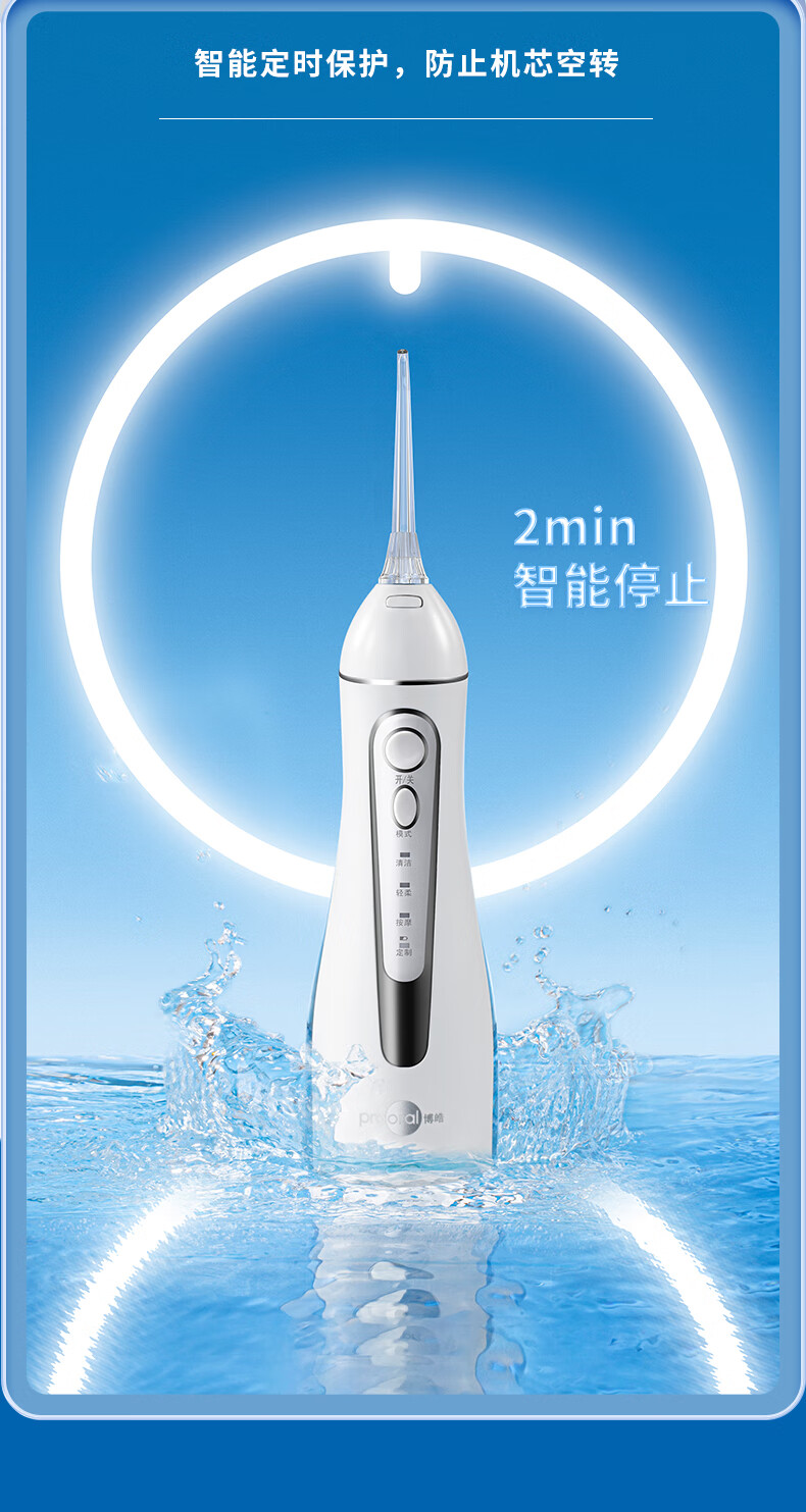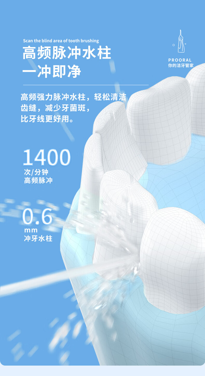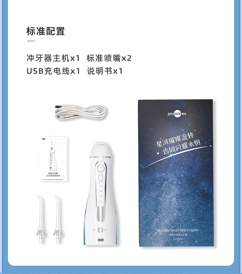 博皓(prooral)电动洗牙器冲牙器家用冲洗器牙齿清洁器水牙线口腔清洗器牙垢去除工具牙周炎喷嘴正畸呵护生日礼物 晶莹透 |6支喷嘴+便携袋
