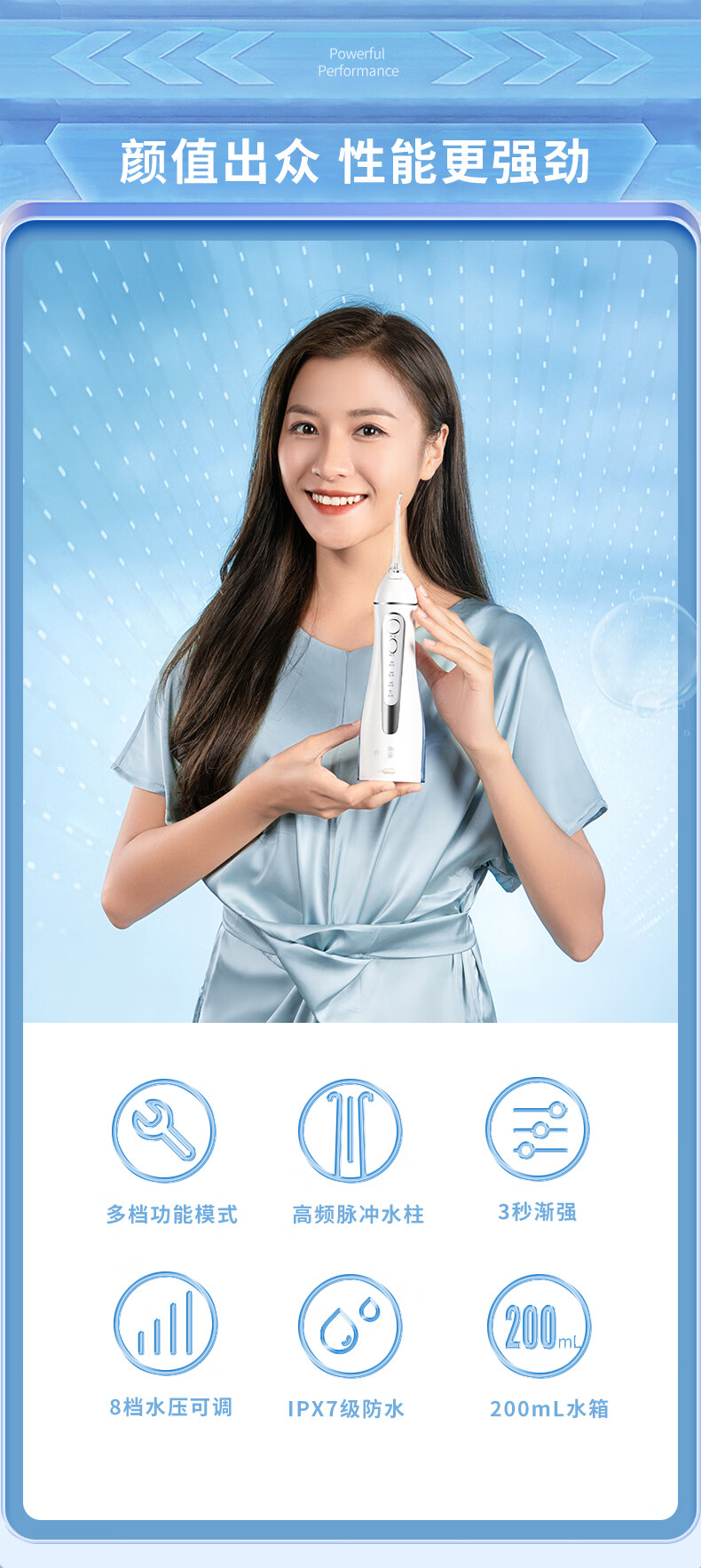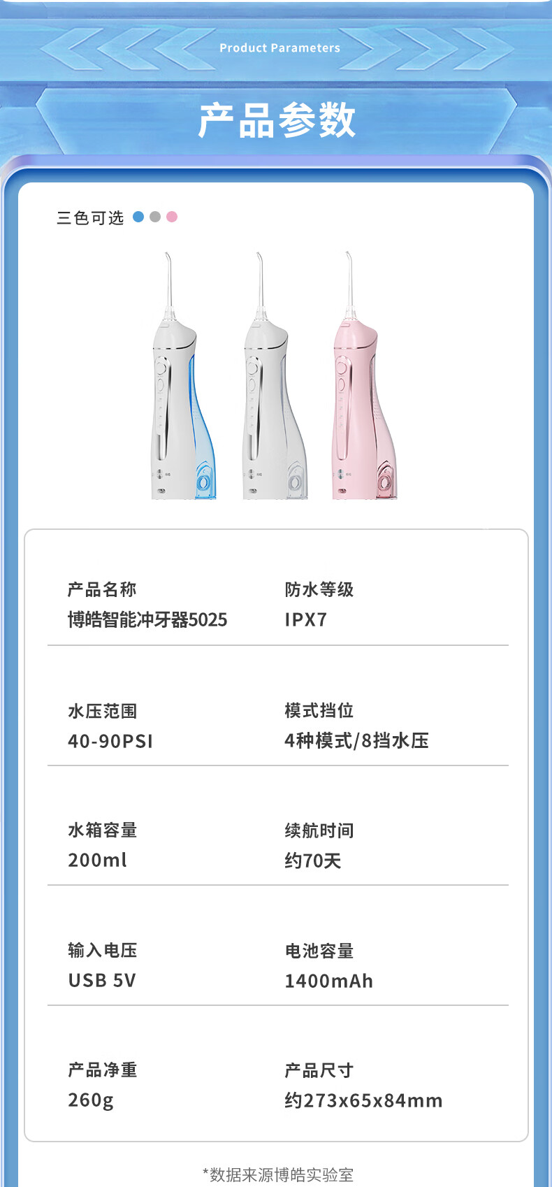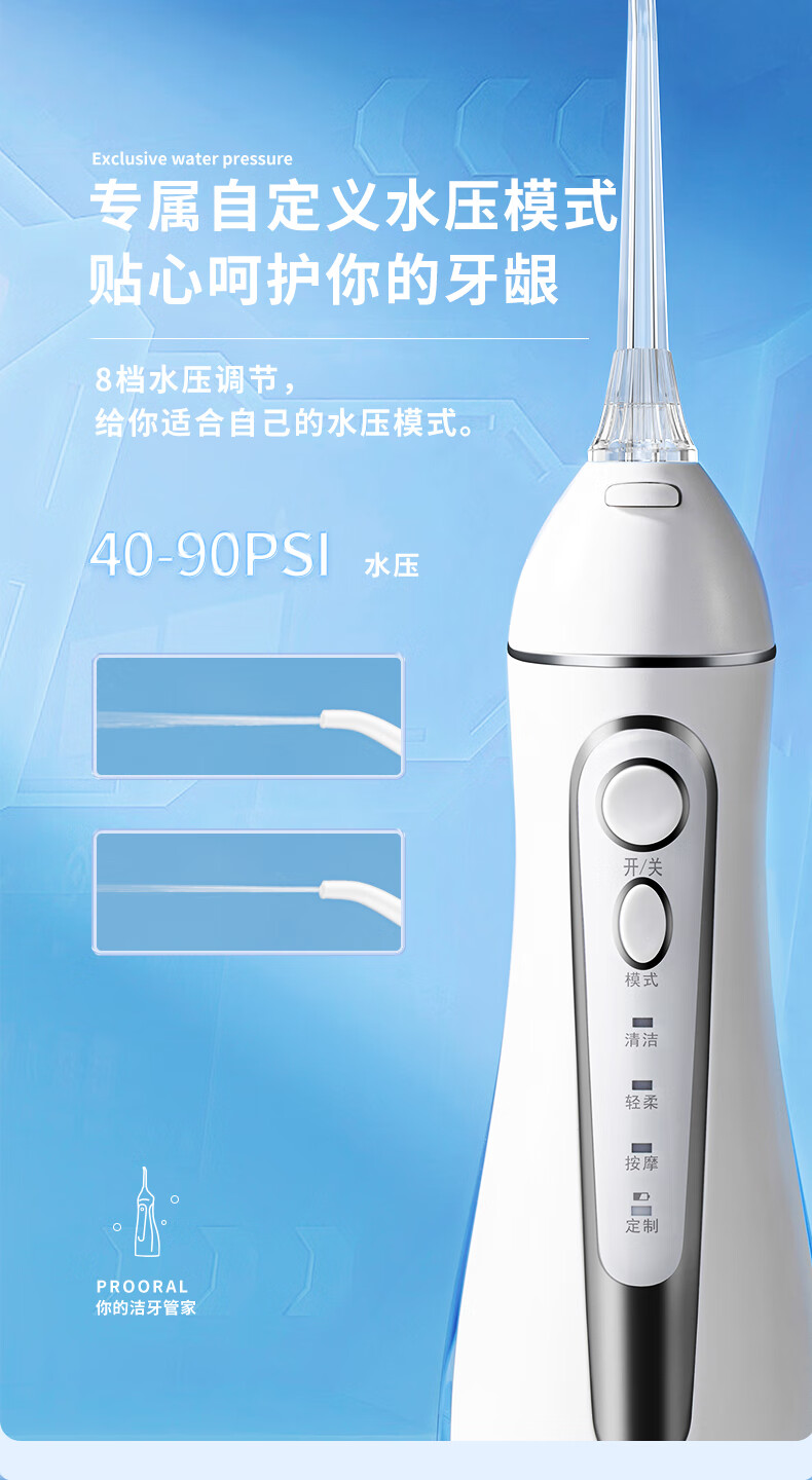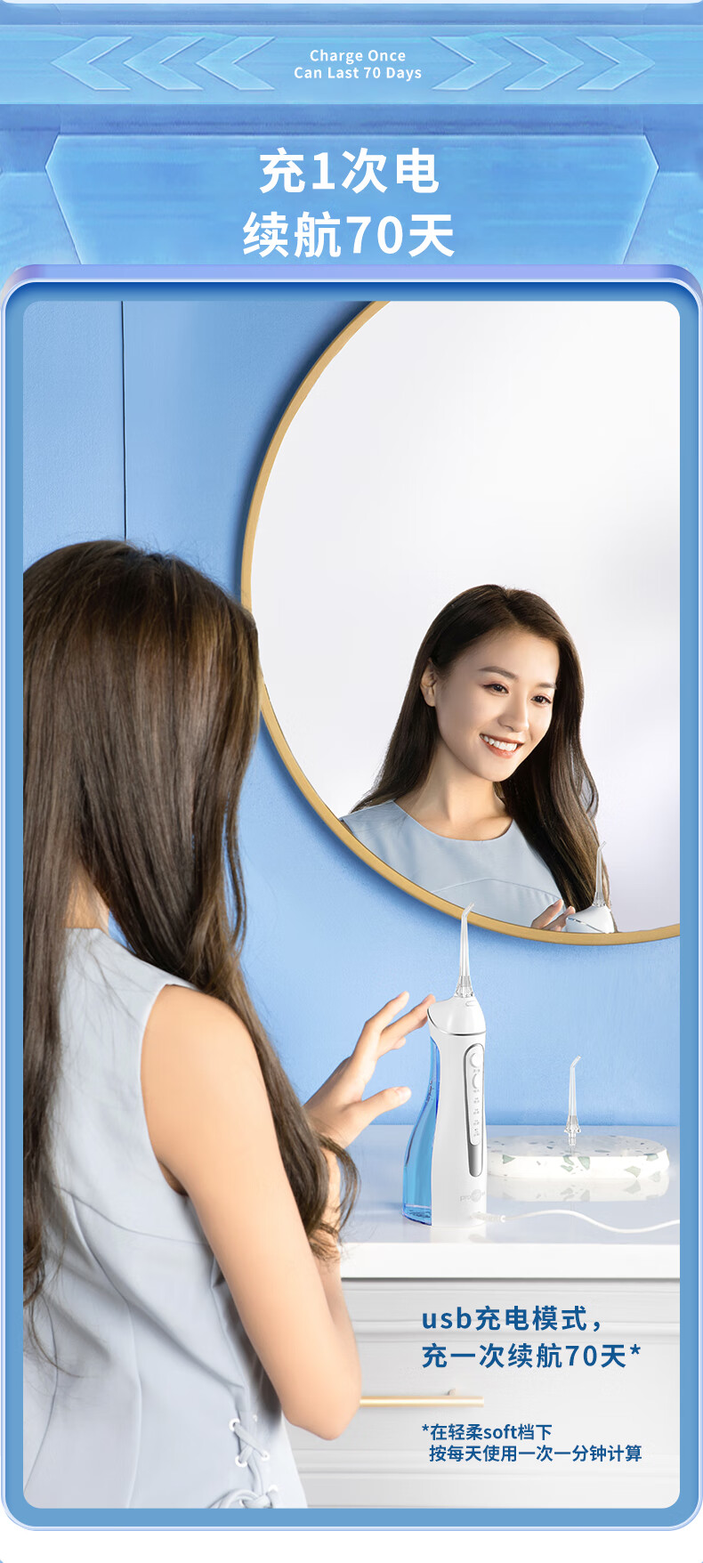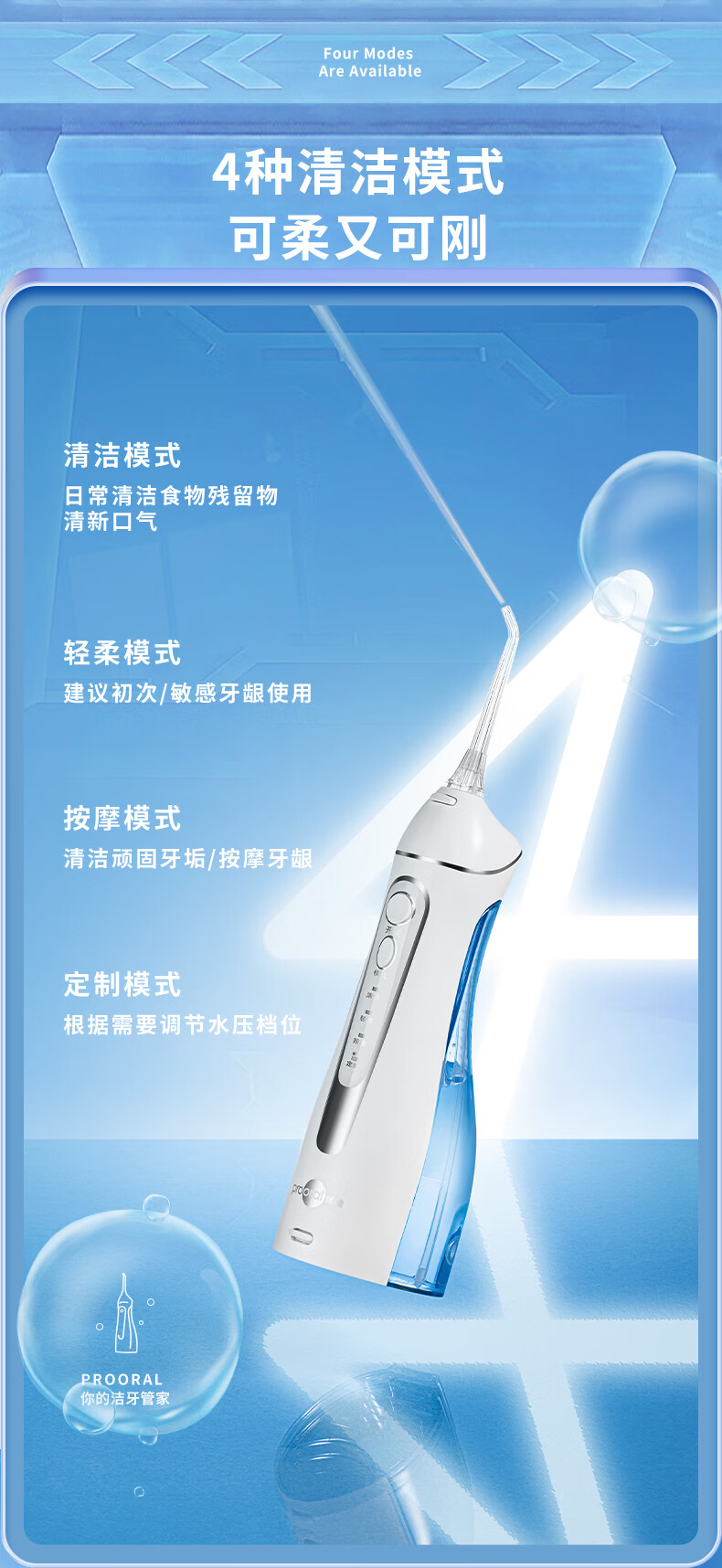 博皓(prooral)电动洗牙器冲牙器家用冲洗器牙齿清洁器水牙线口腔清洗器牙垢去除工具牙周炎喷嘴正畸呵护生日礼物 晶莹透 |6支喷嘴+便携袋