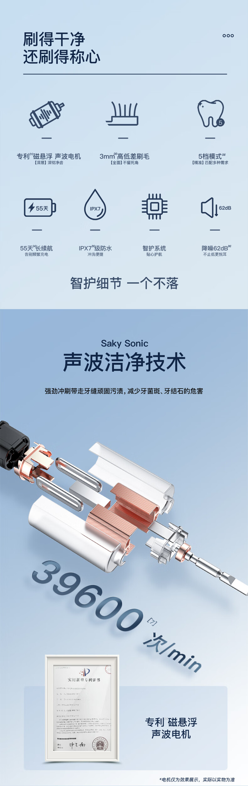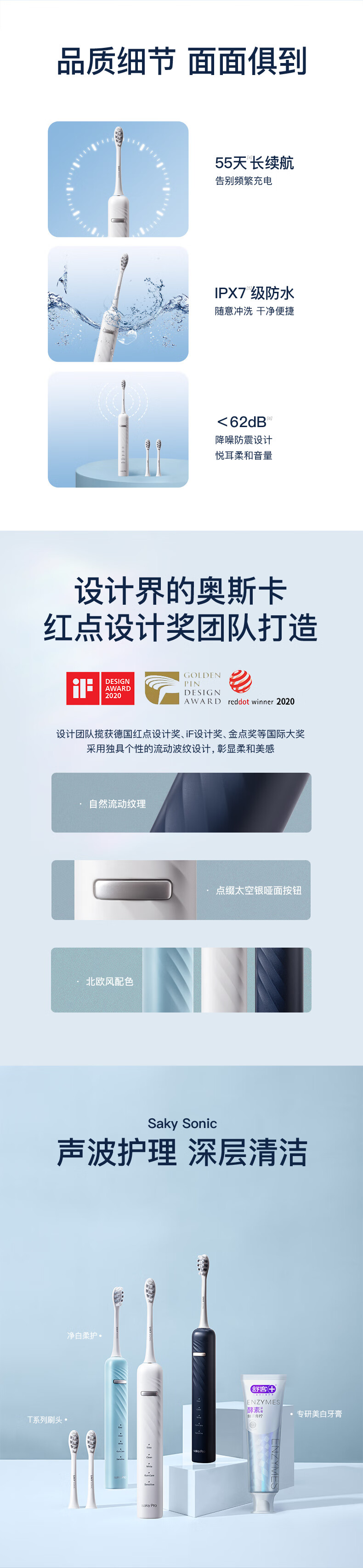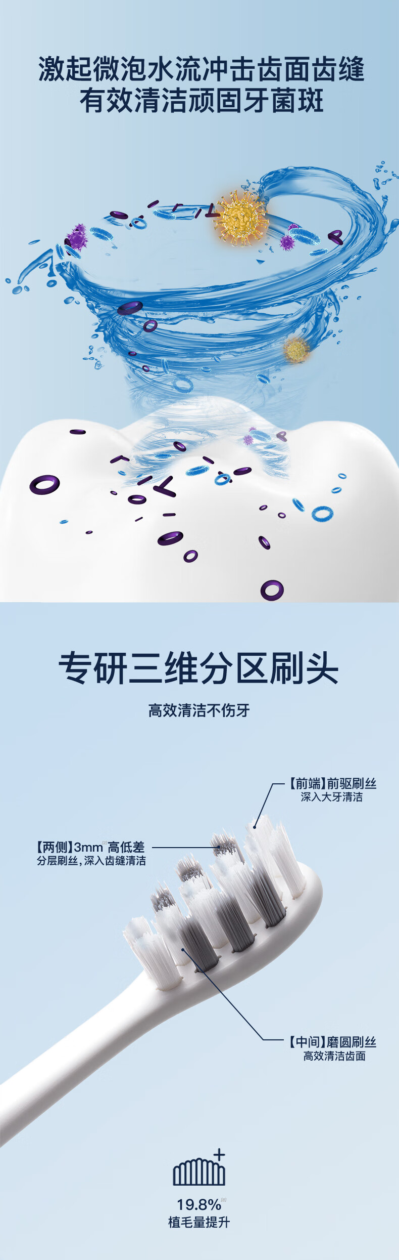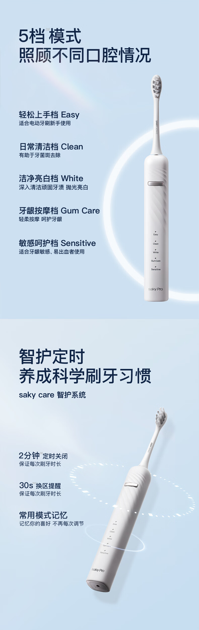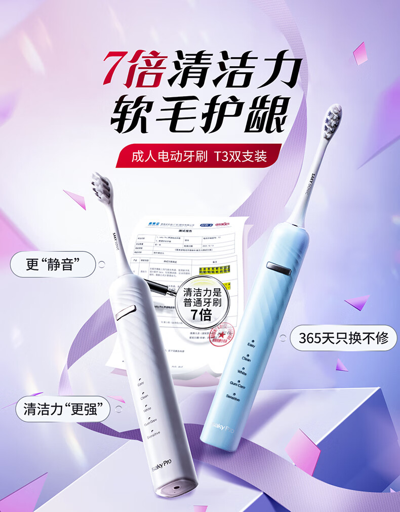 舒客电动牙刷智能清洁成人/情人节送男友/女友声波5档T3冰岛白+挪威蓝 情人节生日礼物中秋礼盒