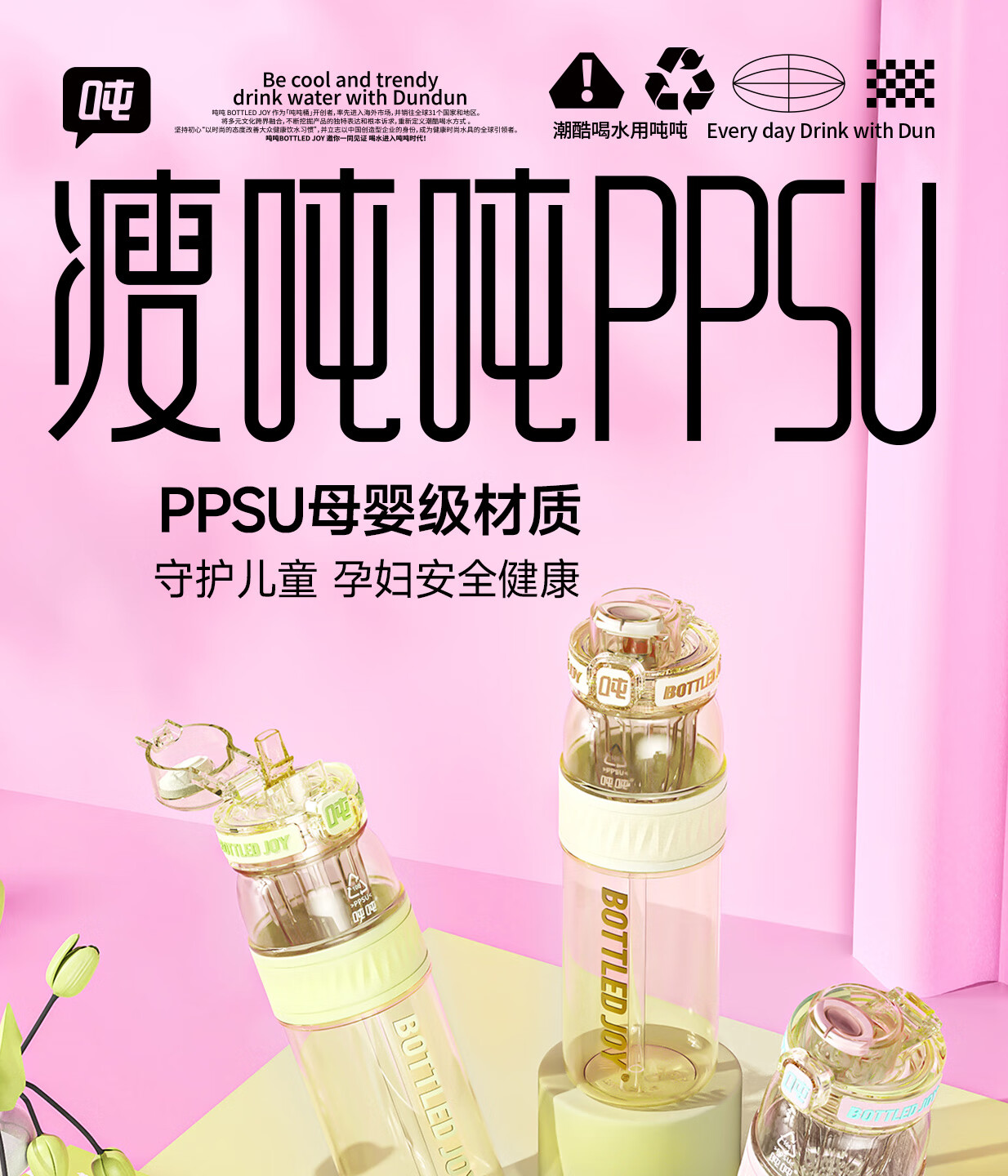 吨吨ppsu106吨吨桶不性早熟王一博奶瓶级耐高温学生书包可车载水杯子