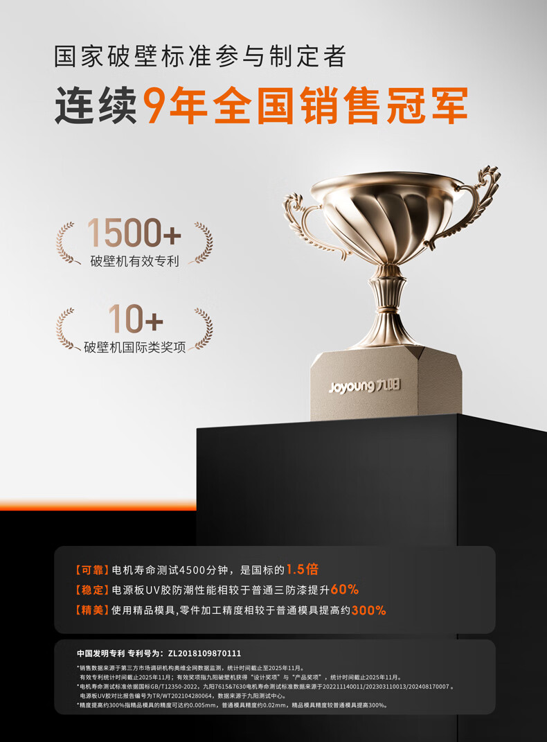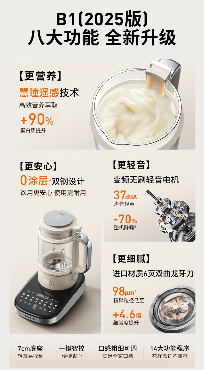 九阳破壁机家用全自动榨汁豆浆机料理机1.75L五谷杂粮3-5人口感可调变频轻音触控彩屏B1(2025)国家补贴