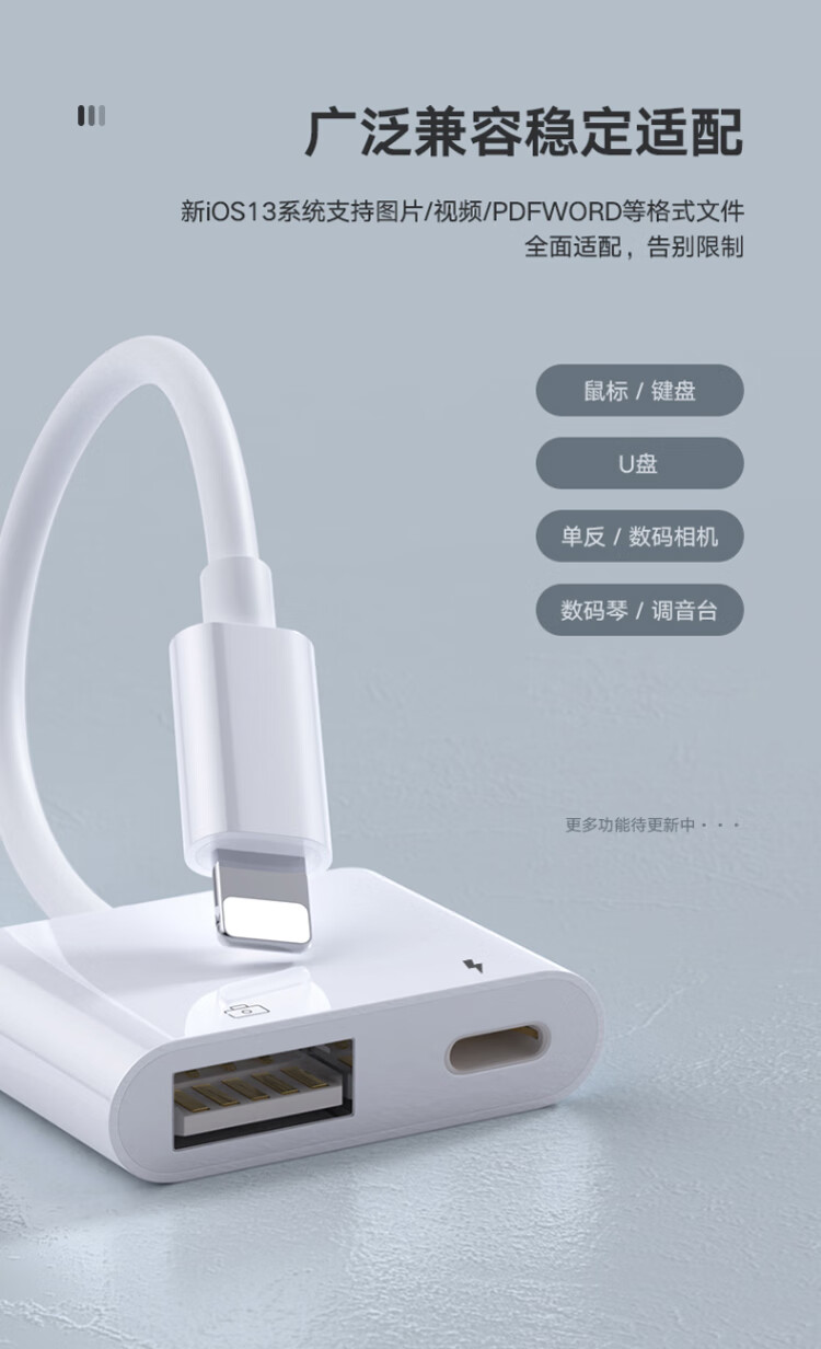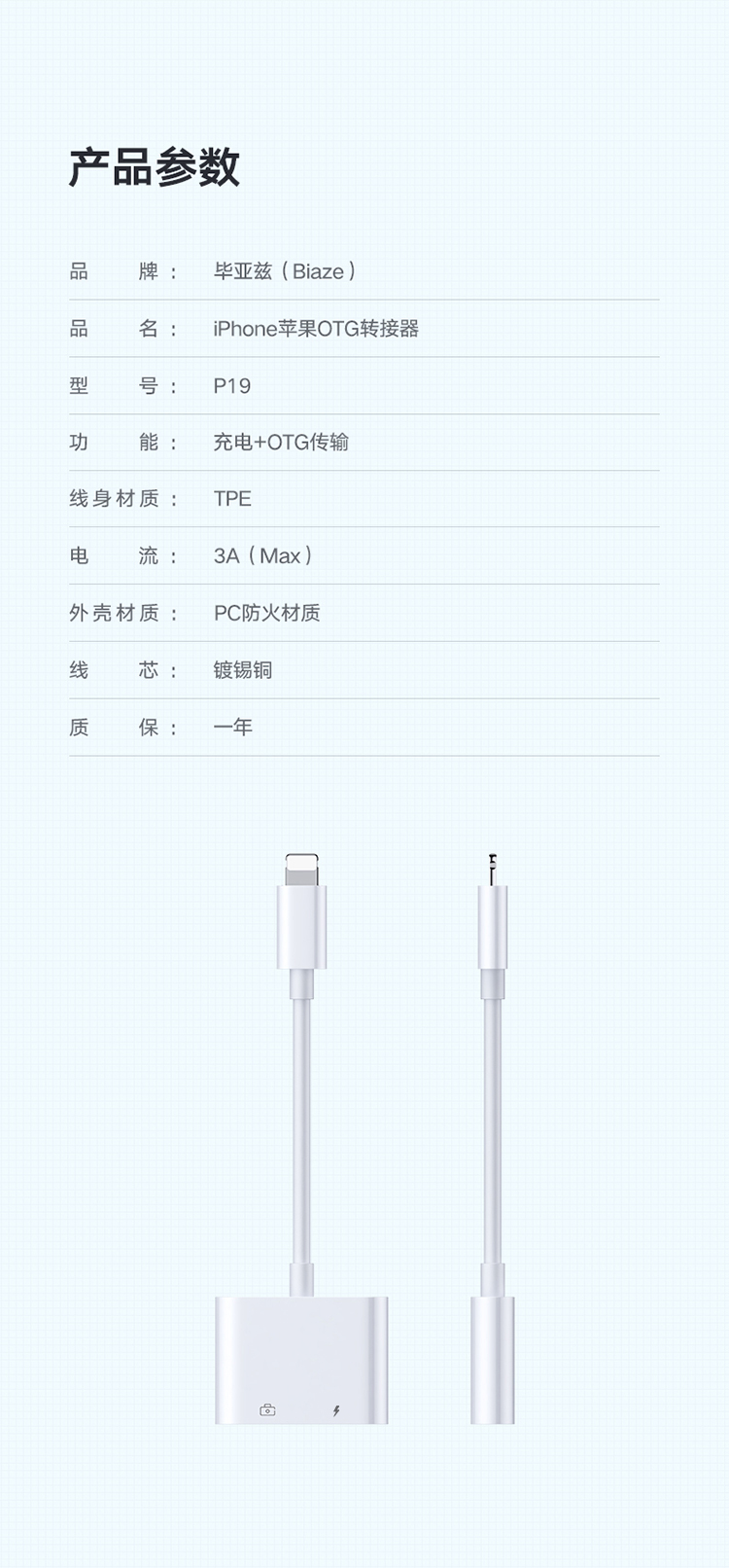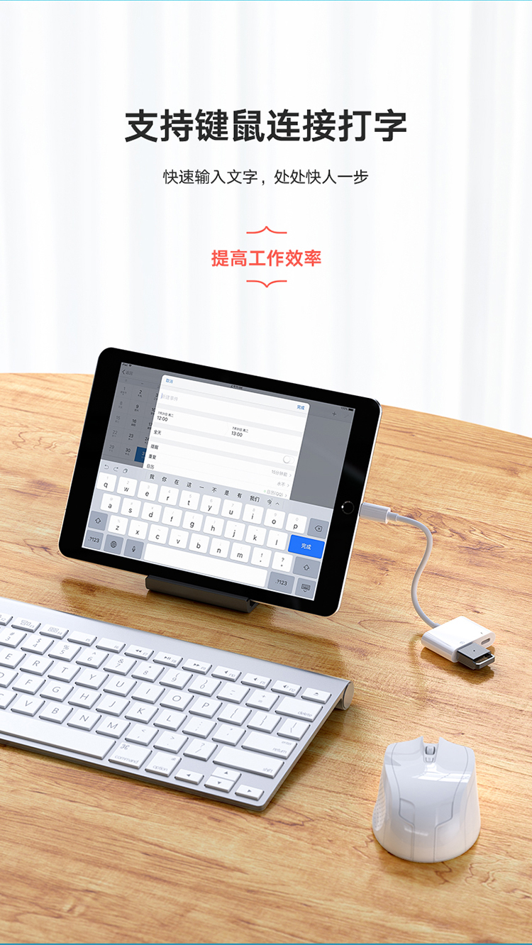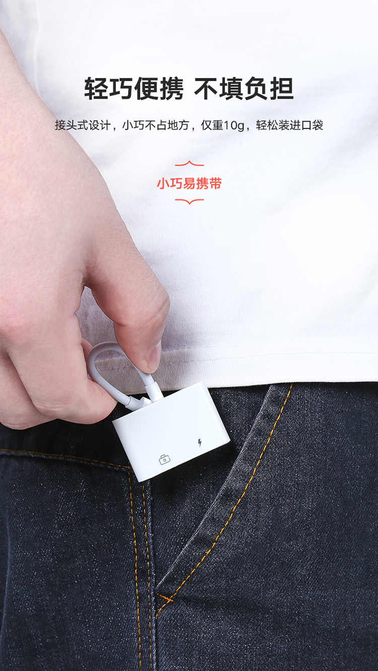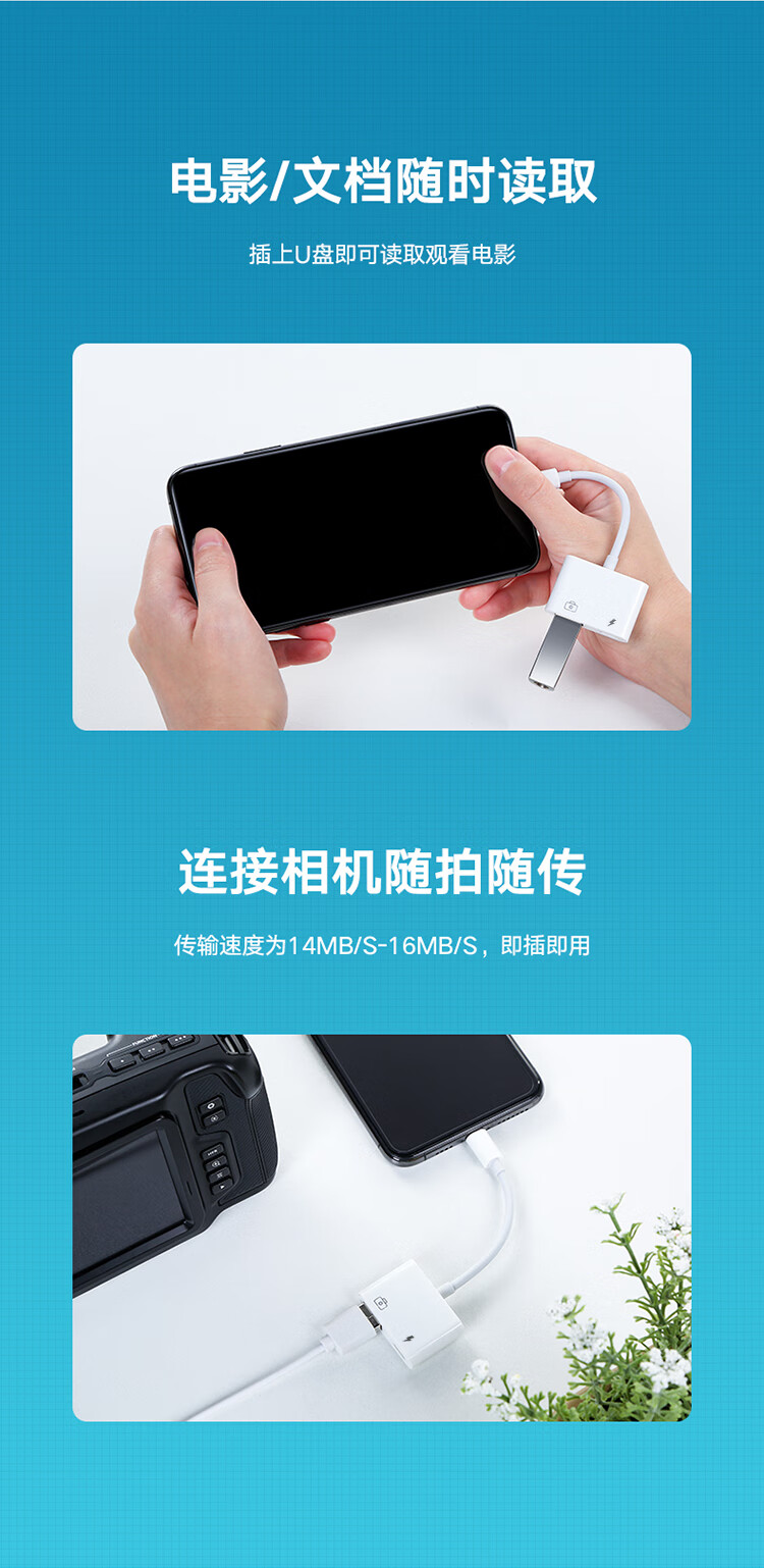 毕亚兹 Lightning转OTG转接头 数据线转USB转换器 苹果手机外接U盘键盘鼠标 适用iPhone14/13/12Pro P19