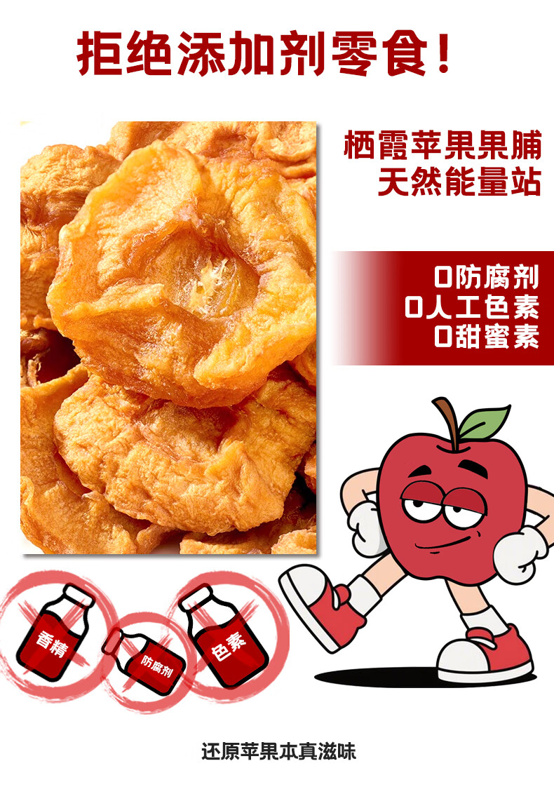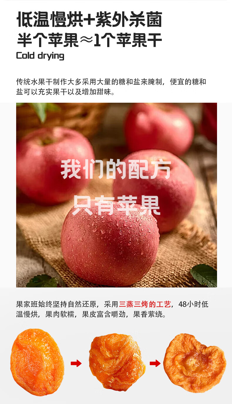 果家班苹果干三蒸三晒无添加独立小包装配料只有苹果低脂高纤维休闲零食 【独立包装 高品质无添加】2袋