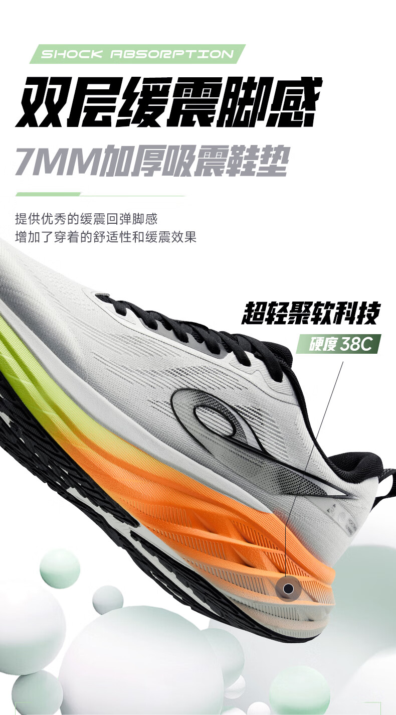 鸿星尔克揽跃2男跑鞋2025秋冬季轻便鞋子男款回弹运动鞋软底减震跑步鞋 苍野灰/战地女神 42