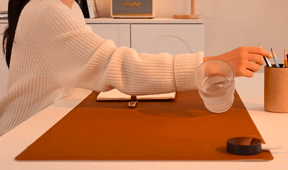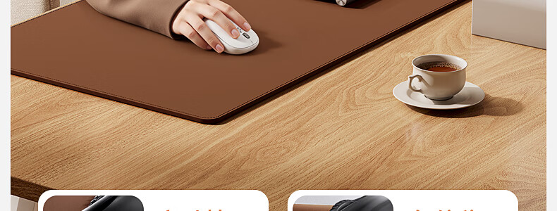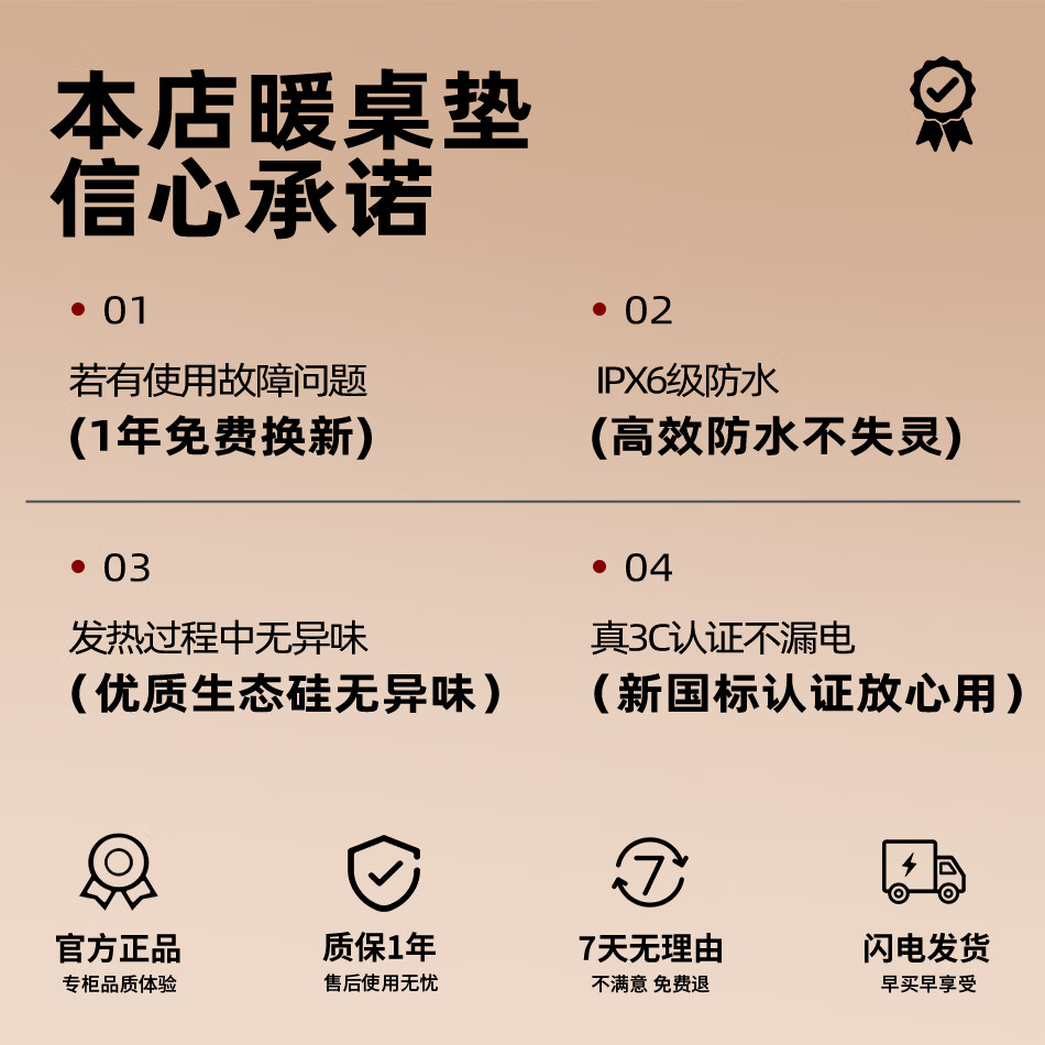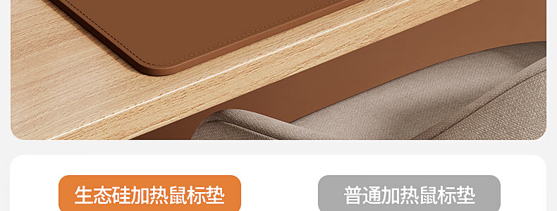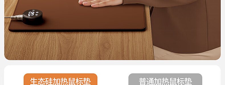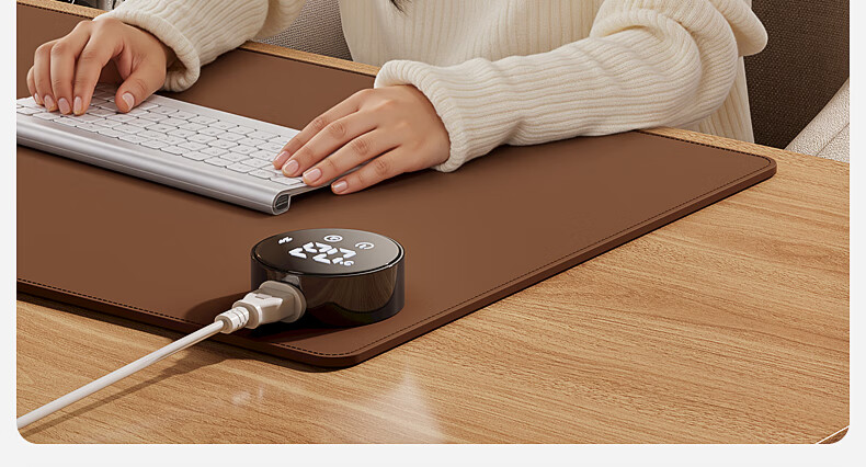 朗格【母婴级生态硅】3C认证防水加热桌垫加热鼠标垫办公室桌上加热垫 摩卡棕【右开关】 100X43cm【AI智能触屏款】
