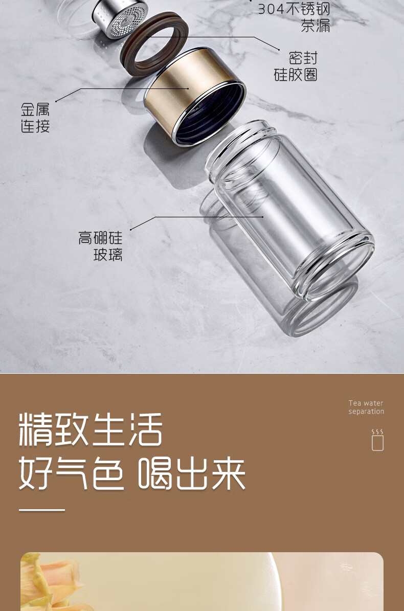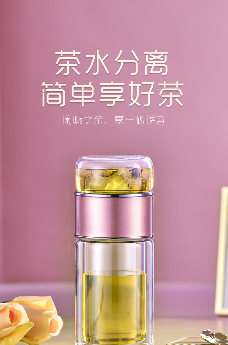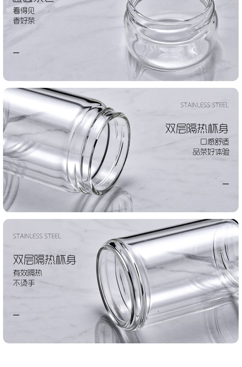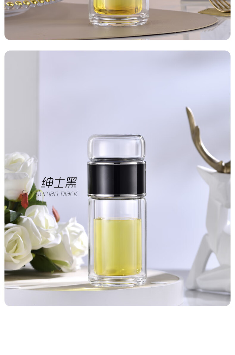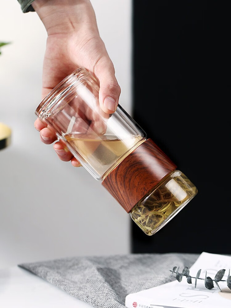 双层隔热茶水分离杯男女泡茶杯高颜值花茶玻璃杯小 琉璃黑 1只 350ml
