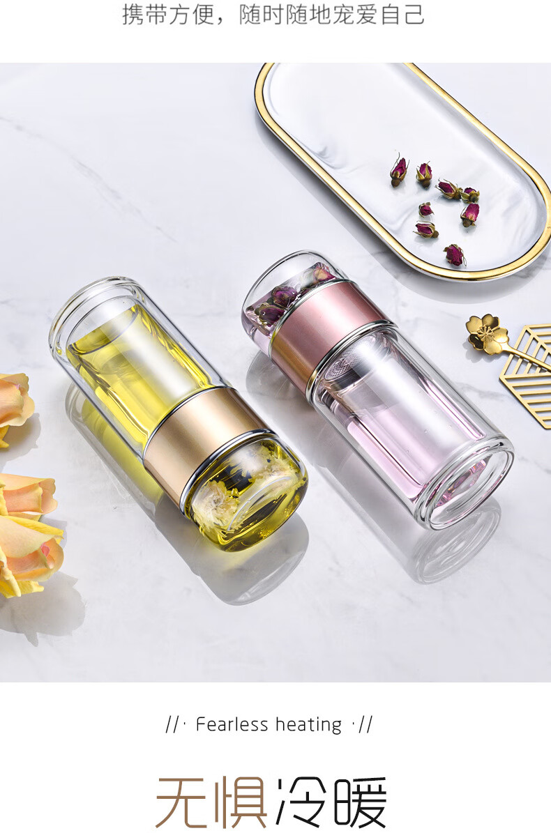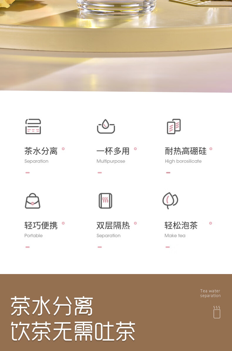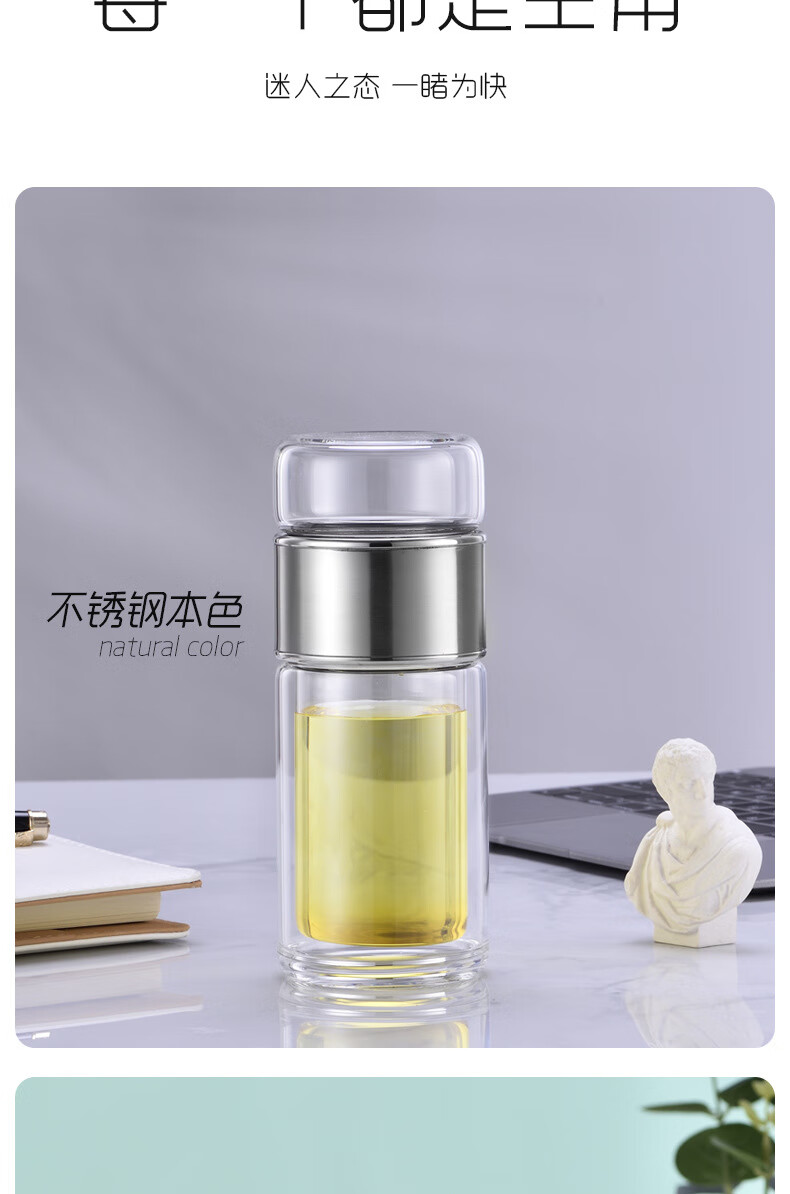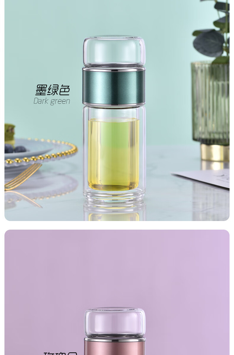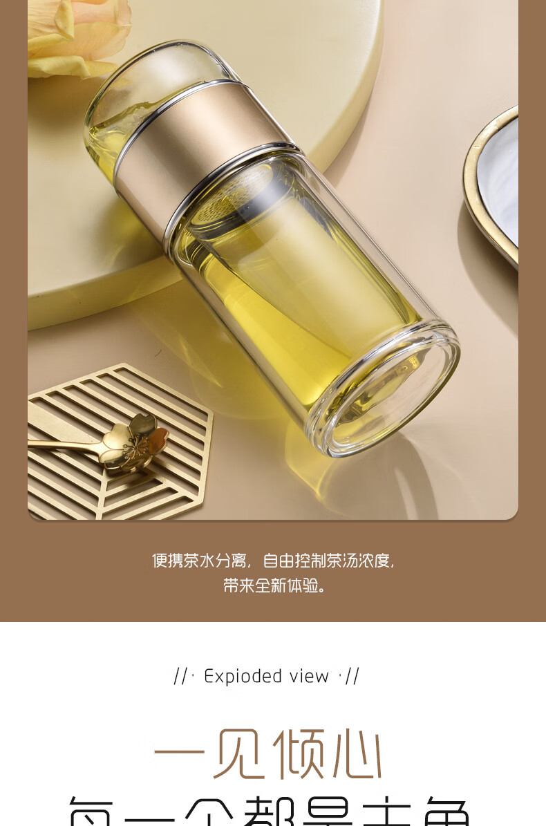 双层隔热茶水分离杯男女泡茶杯高颜值花茶玻璃杯小 琉璃黑 1只 350ml