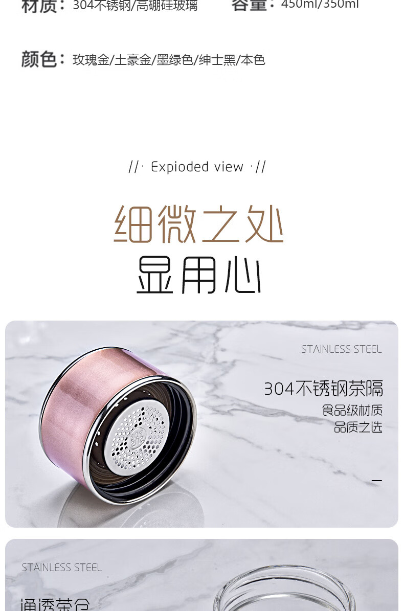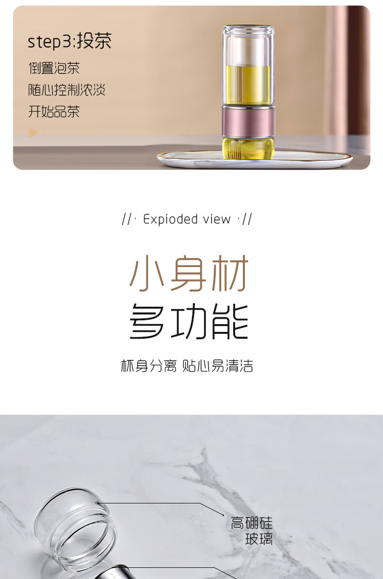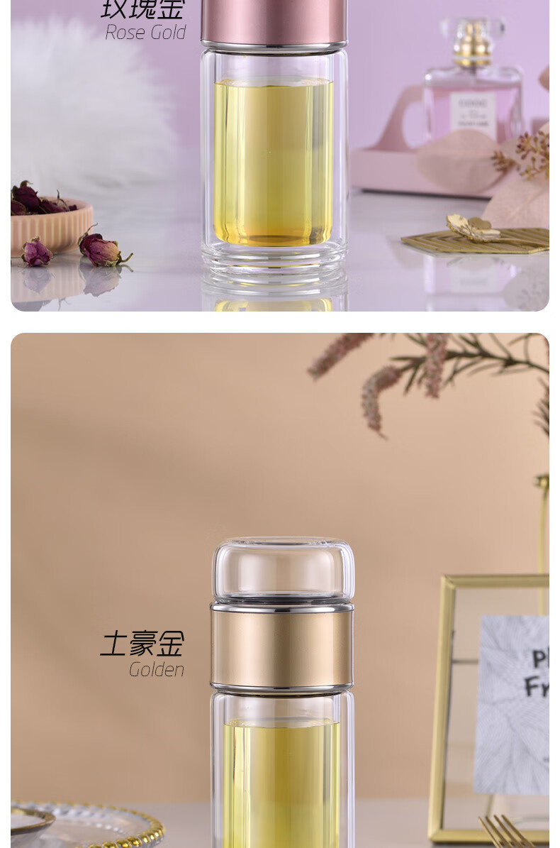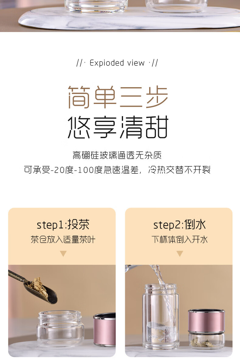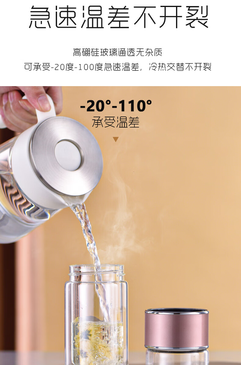 双层隔热茶水分离杯男女泡茶杯高颜值花茶玻璃杯小 琉璃黑 1只 350ml