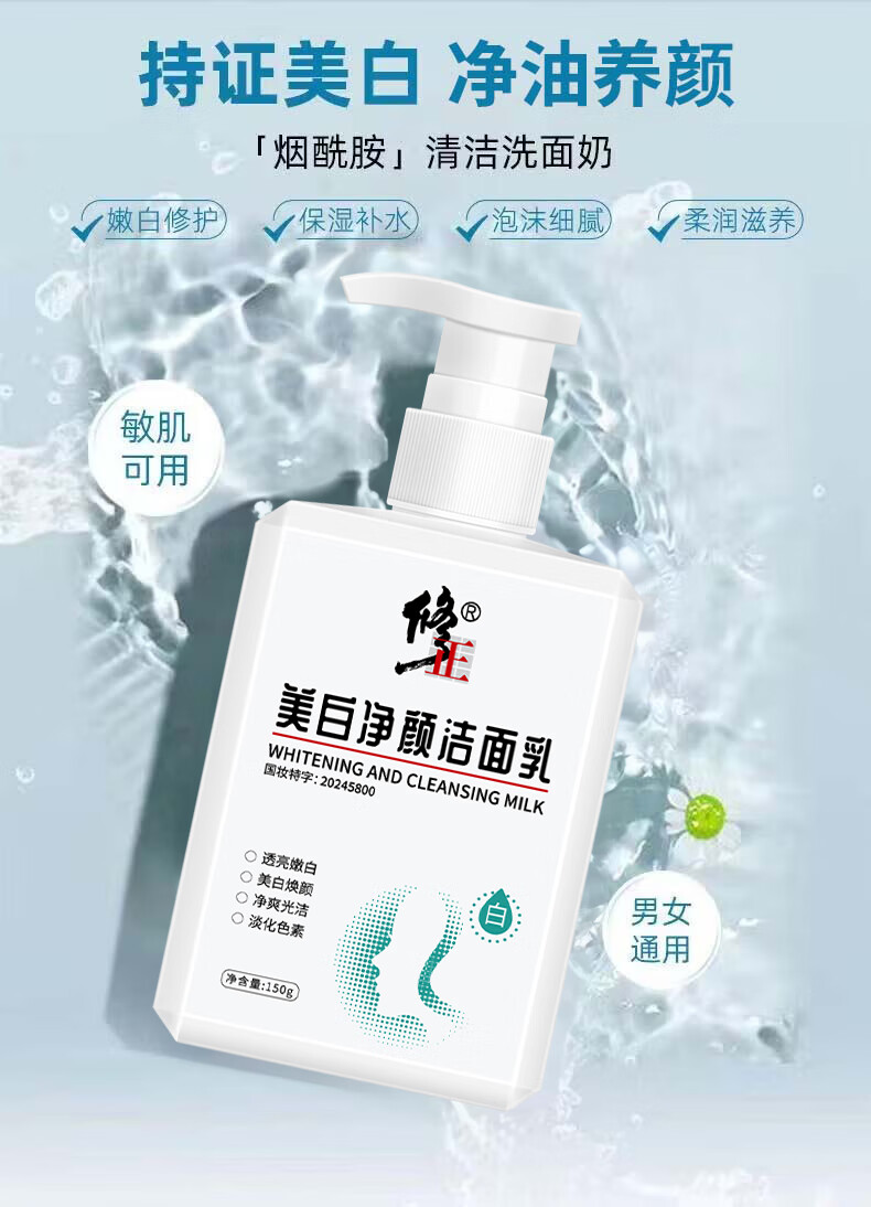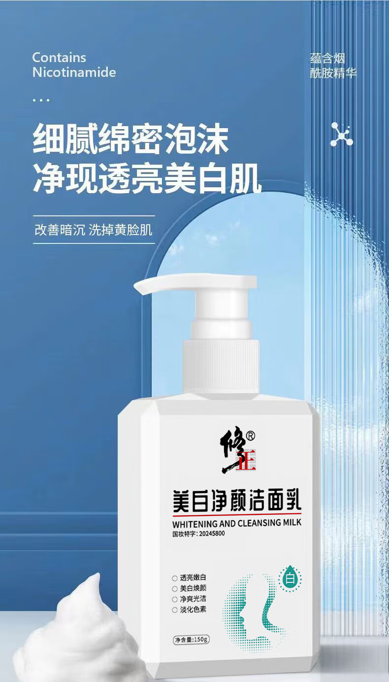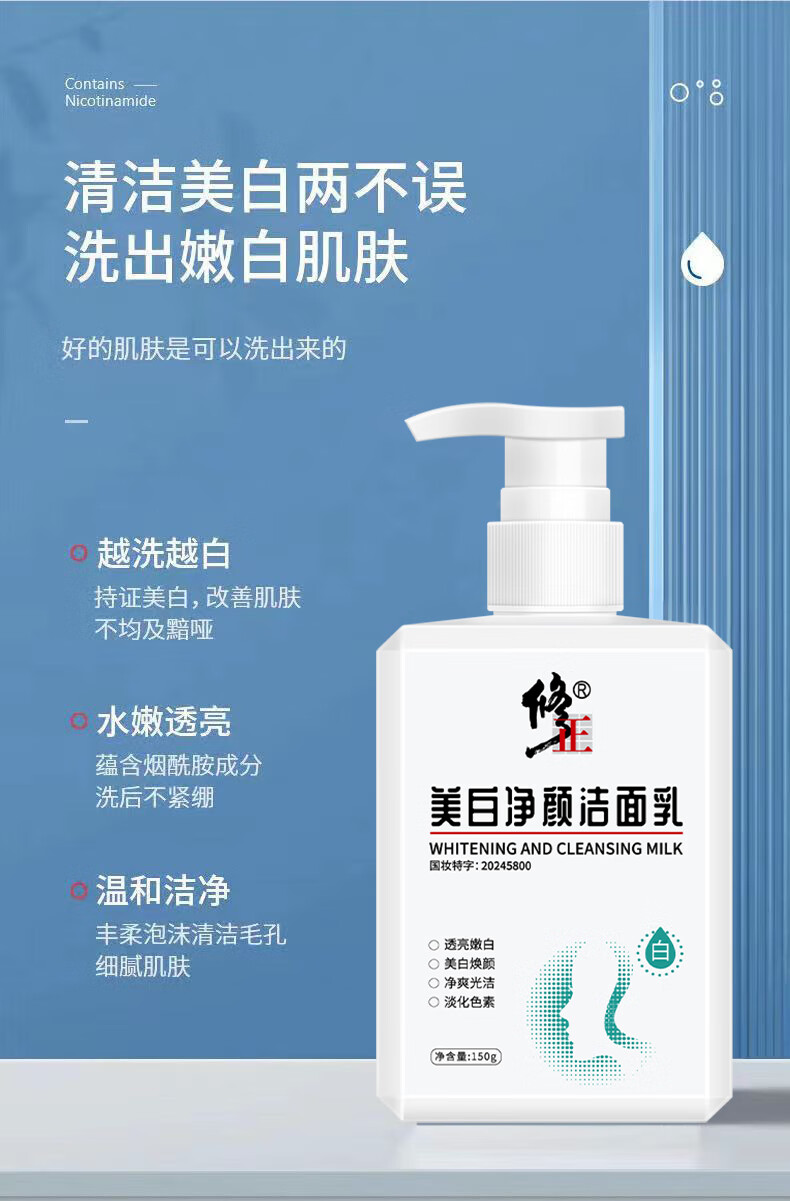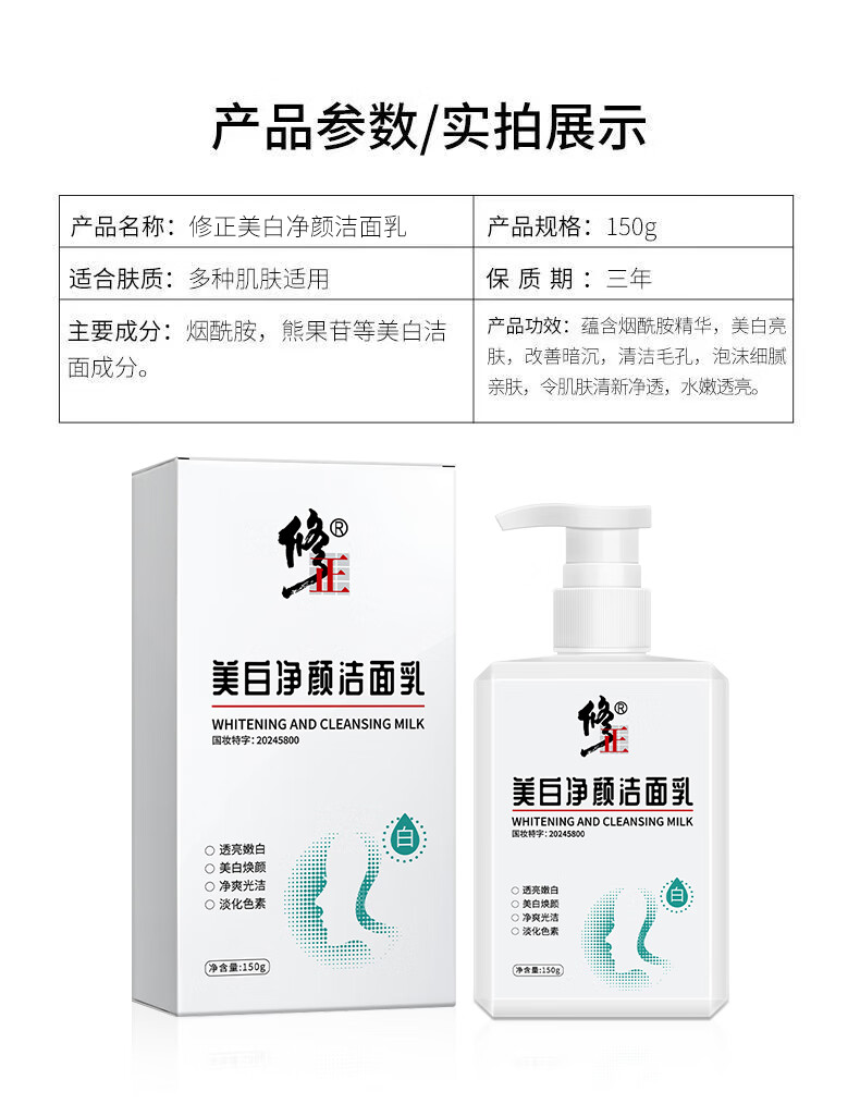 修正美白净颜洁面乳 黄暗沉斑点色斑提亮肤色温和清洁不假滑白皙肌肤 1瓶【美白净颜洁面乳】 150克/瓶