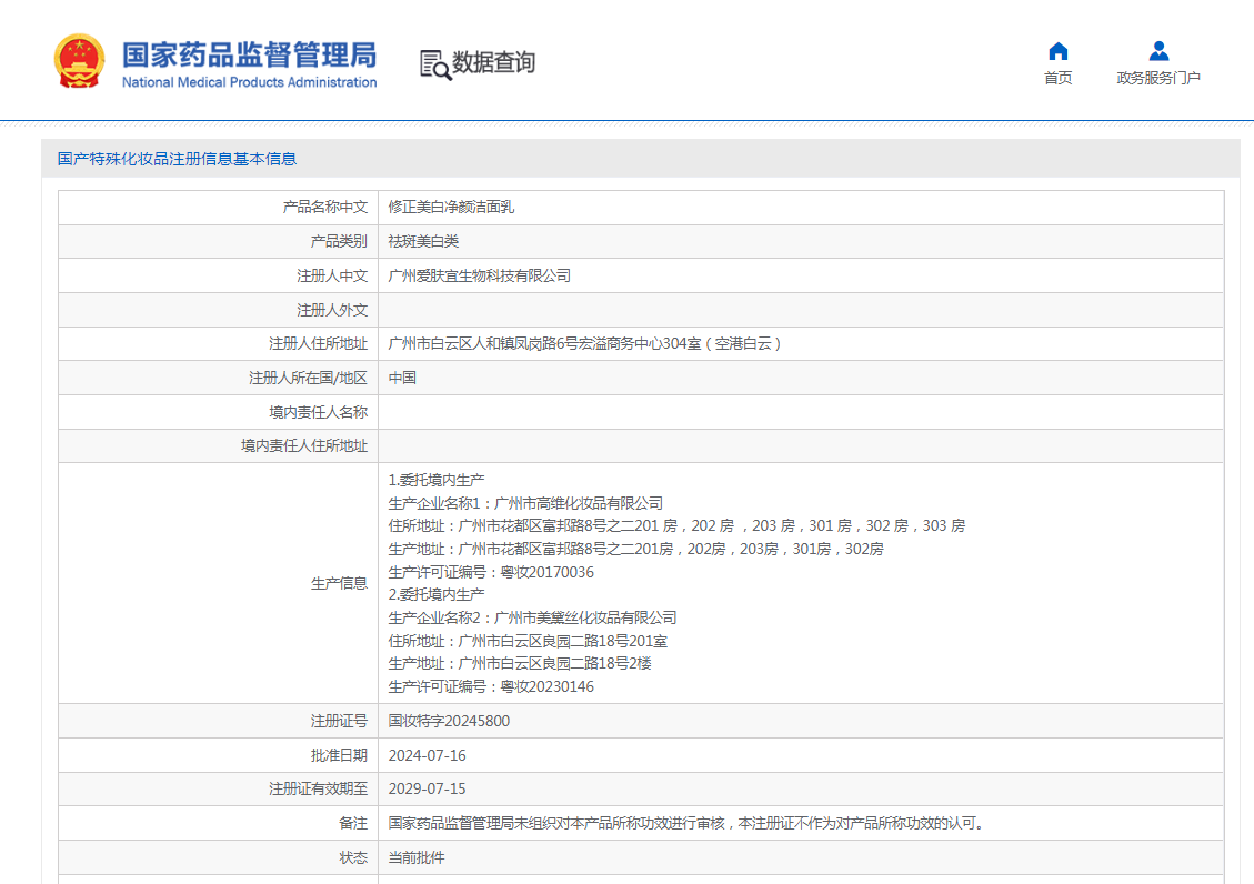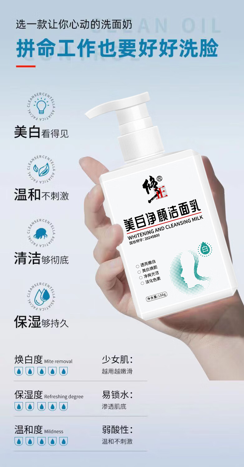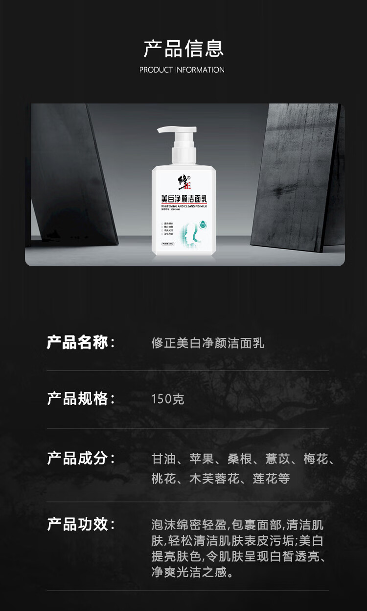 修正美白净颜洁面乳 黄暗沉斑点色斑提亮肤色温和清洁不假滑白皙肌肤 1瓶【美白净颜洁面乳】 150克/瓶