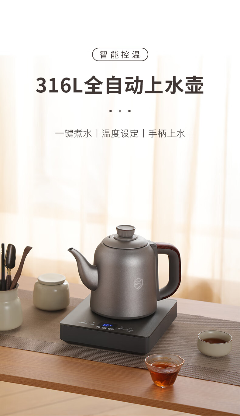 鲸可全自动烧水壶电热水壶煮茶器电茶壶台泡茶壶台嵌式电饮水机一体上水壶养生壶恒温壶 1.2L 手柄上水316不锈钢单壶【RXDC112】