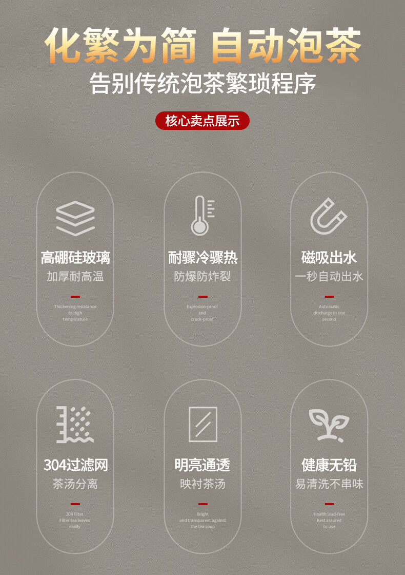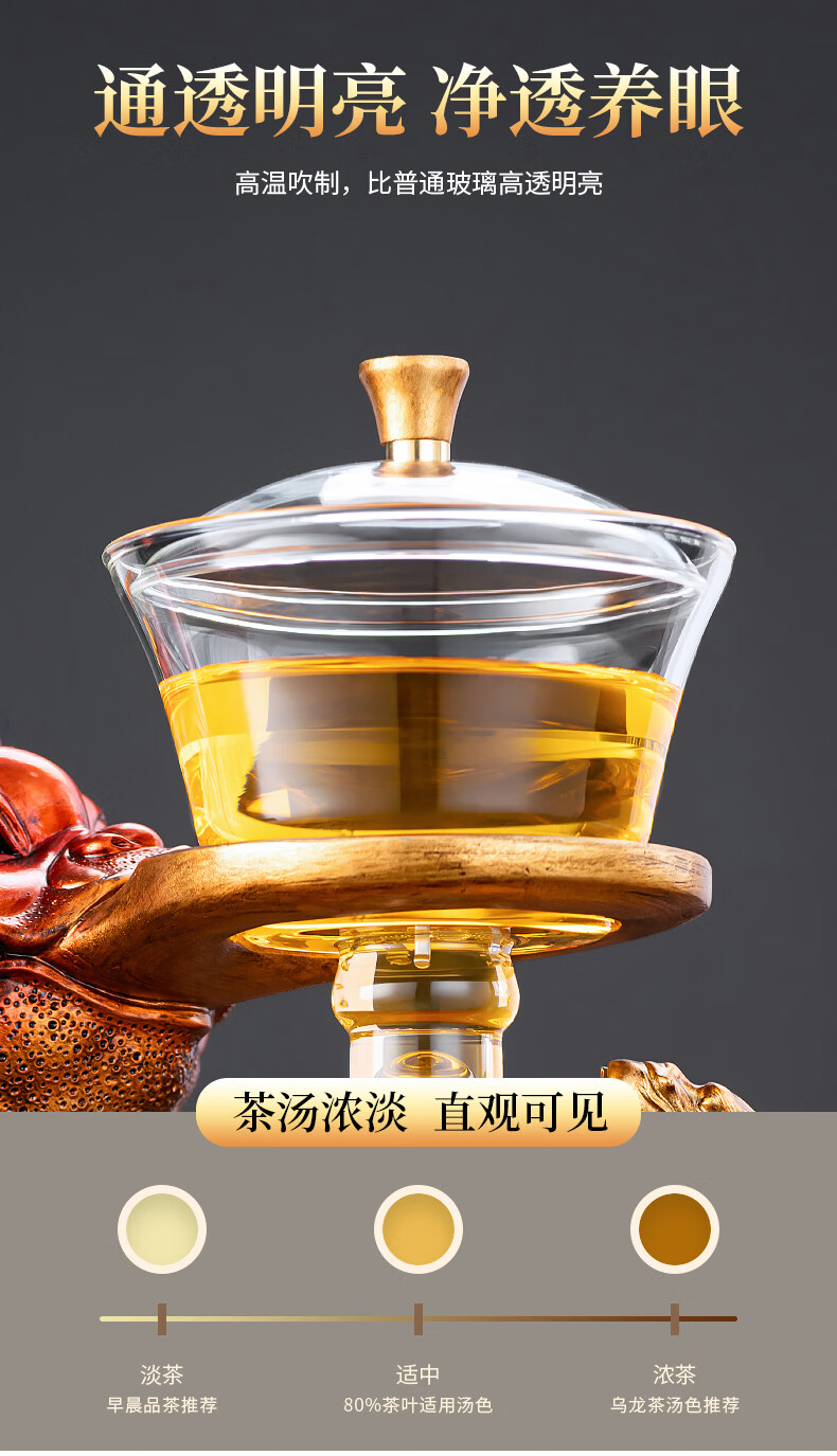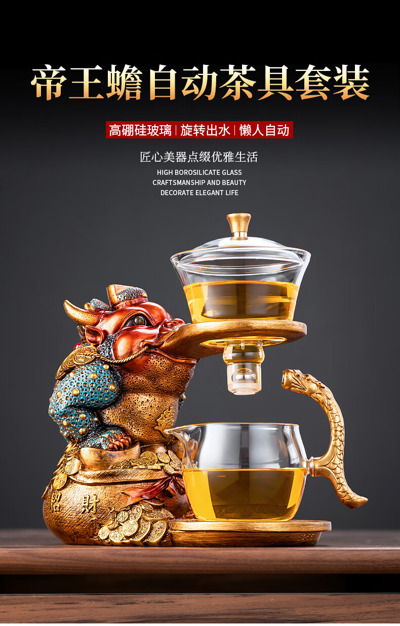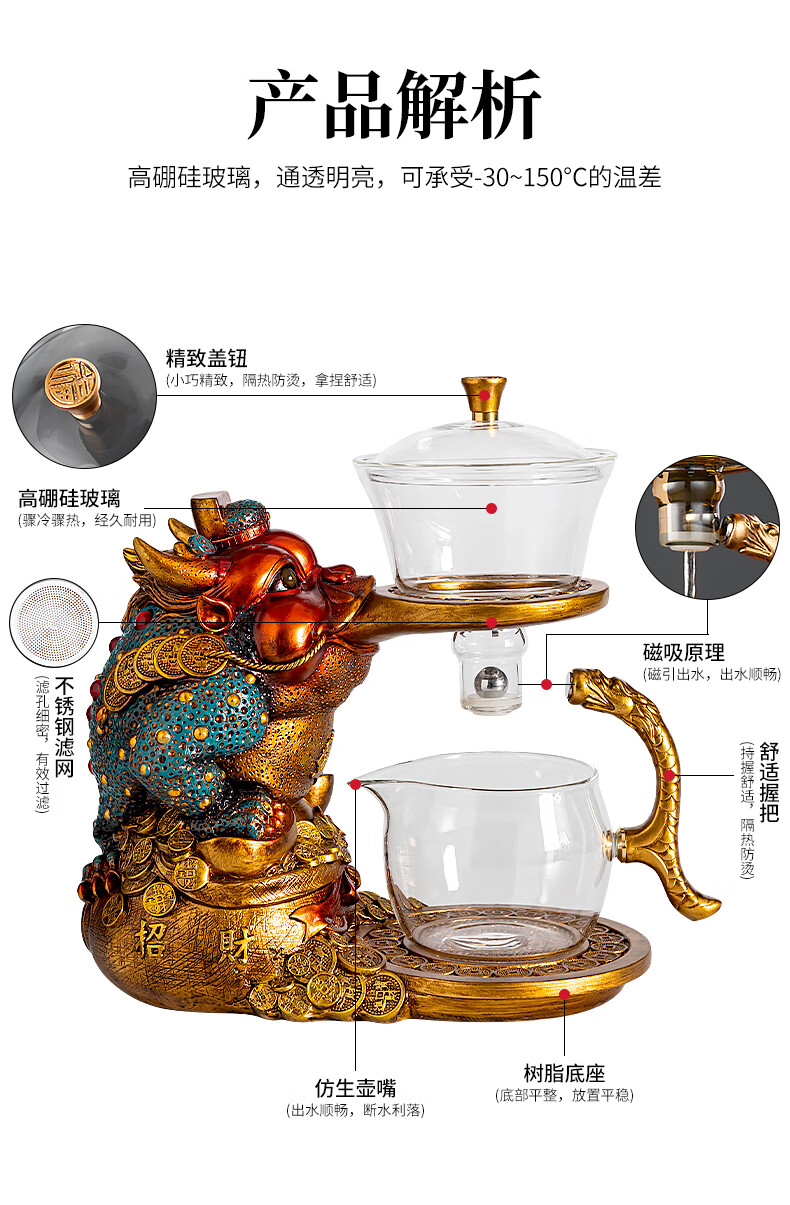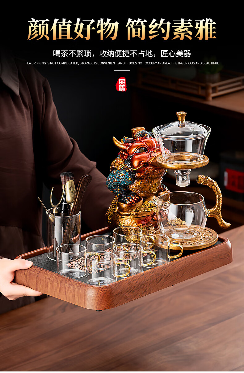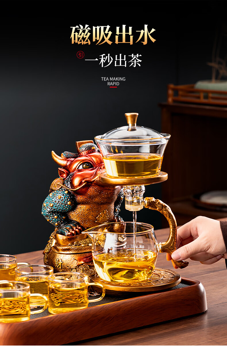 正扬玻璃自动茶具套装懒人泡茶器全套家用高档整套磁吸防烫透明商务礼 自动(招财金蟾)主机+六色把杯