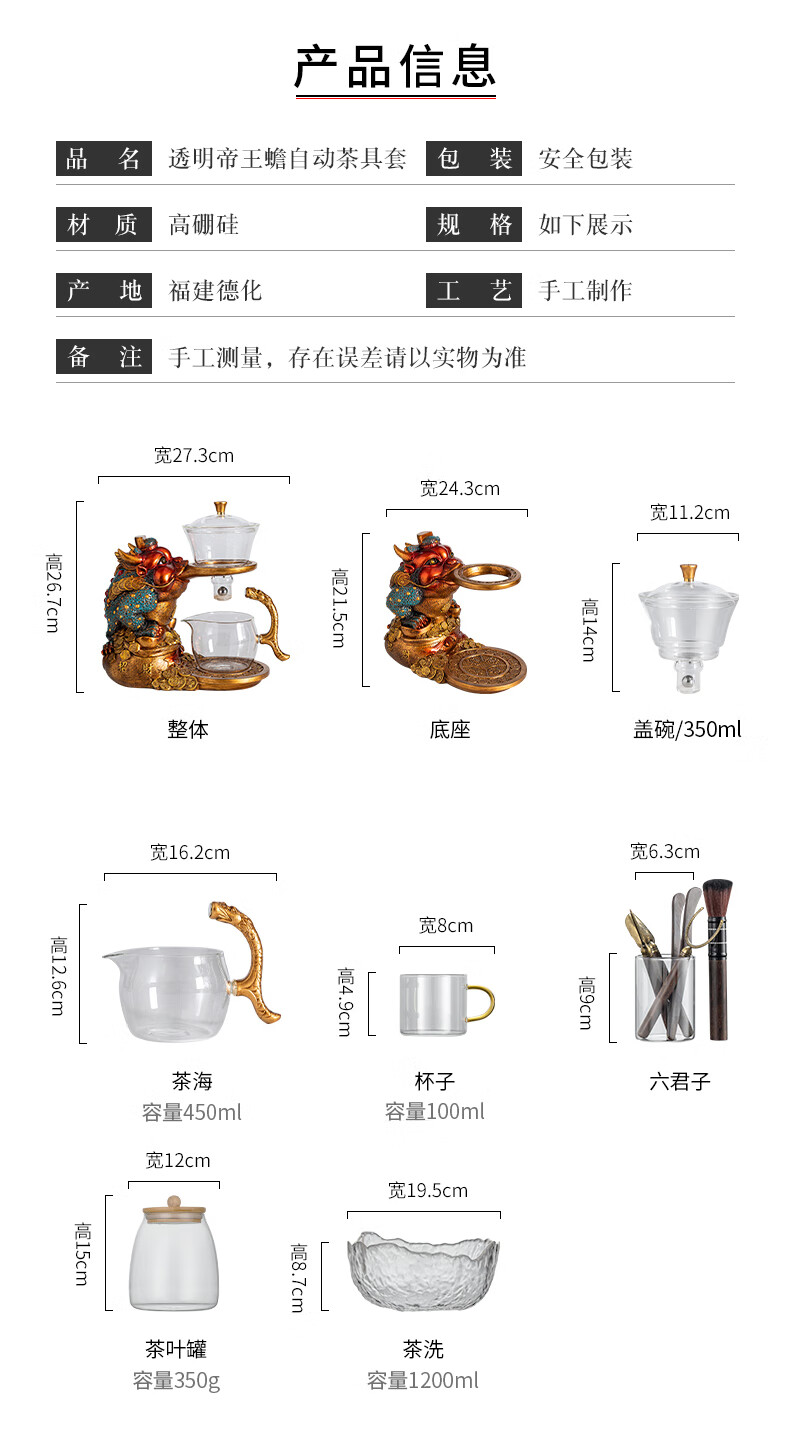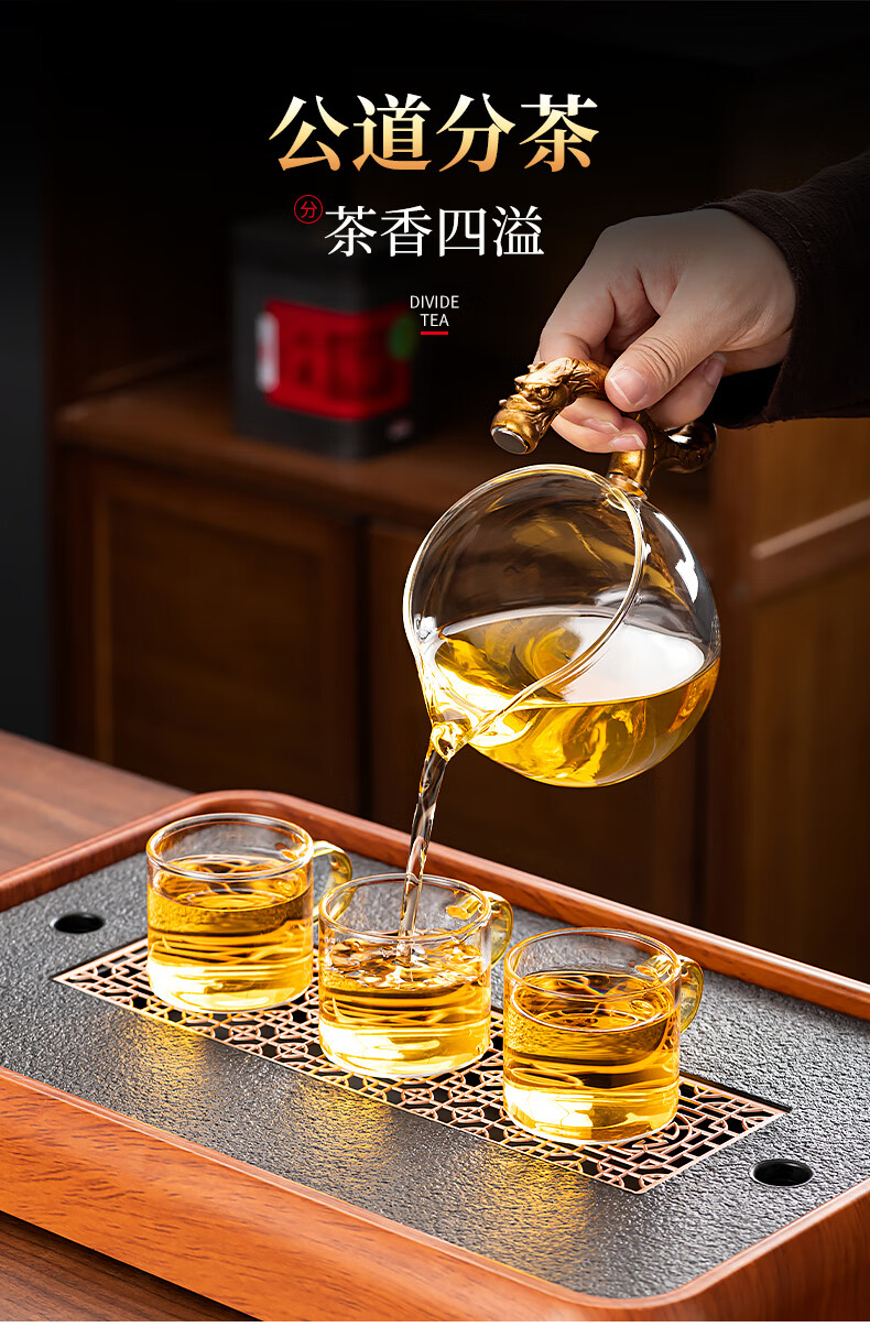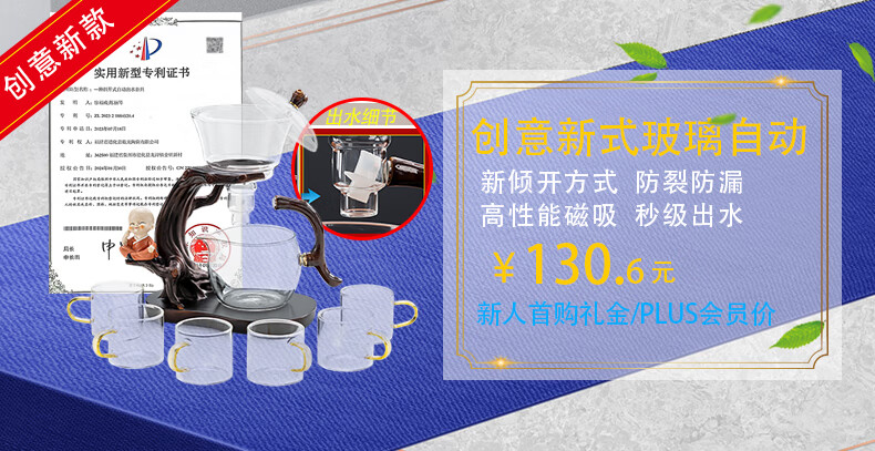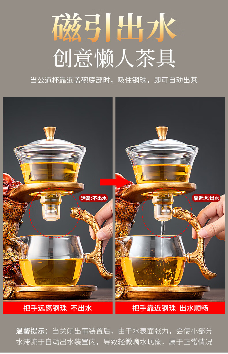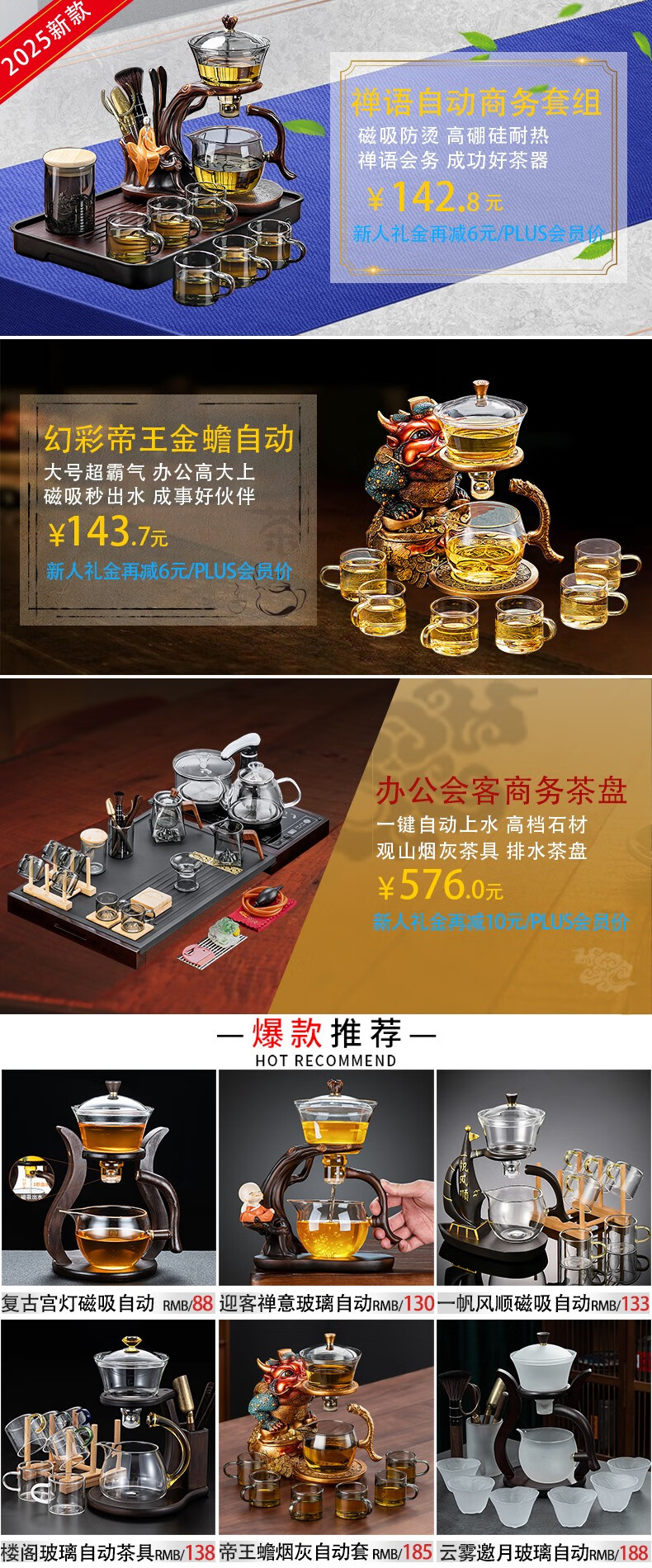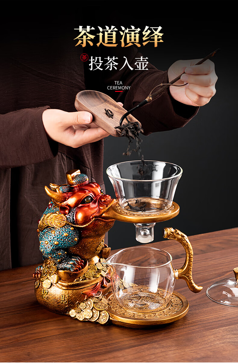 正扬玻璃自动茶具套装懒人泡茶器全套家用高档整套磁吸防烫透明商务礼 自动(招财金蟾)主机+六色把杯