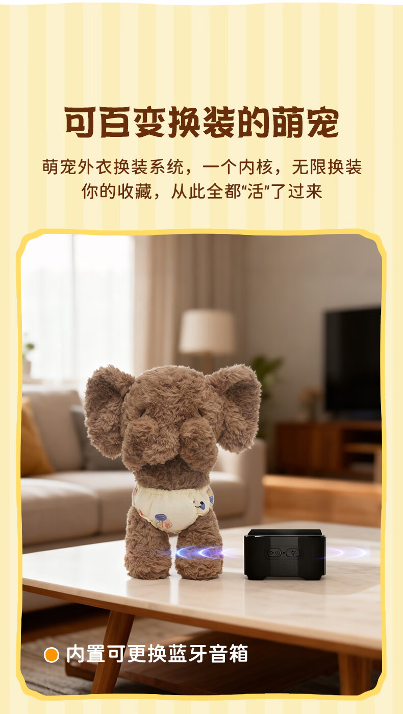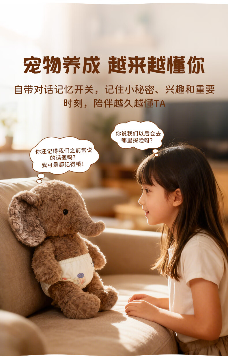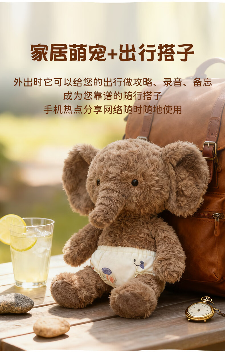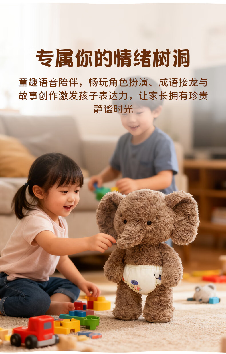橙荃萌响星球害羞小象AI智能机器人 男孩女孩电子宠物毛绒玩具陪伴玩偶 可换装智能对话机器人礼物 无线蓝牙音响内核版