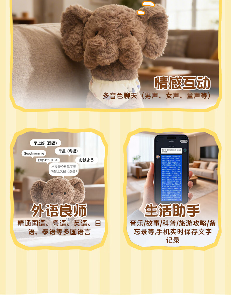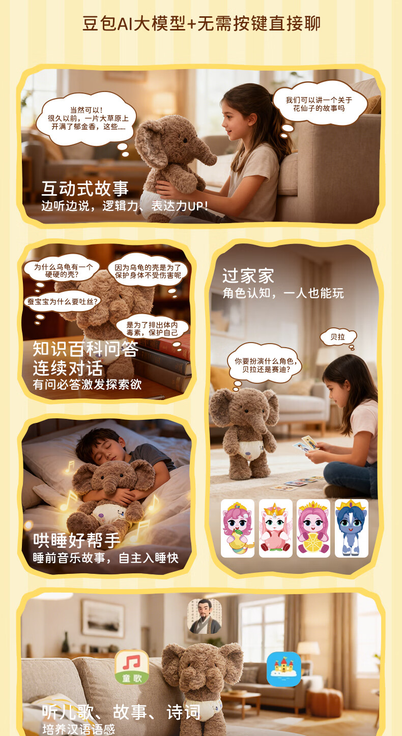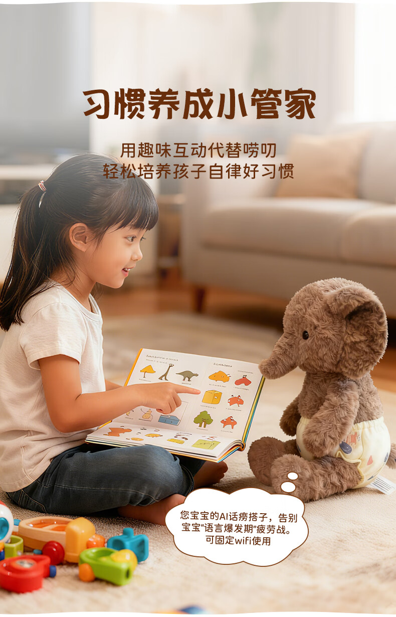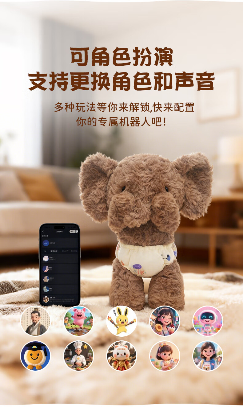 橙荃萌响星球害羞小象AI智能机器人 男孩女孩电子宠物毛绒玩具陪伴玩偶 可换装智能对话机器人礼物 无线蓝牙音响内核版