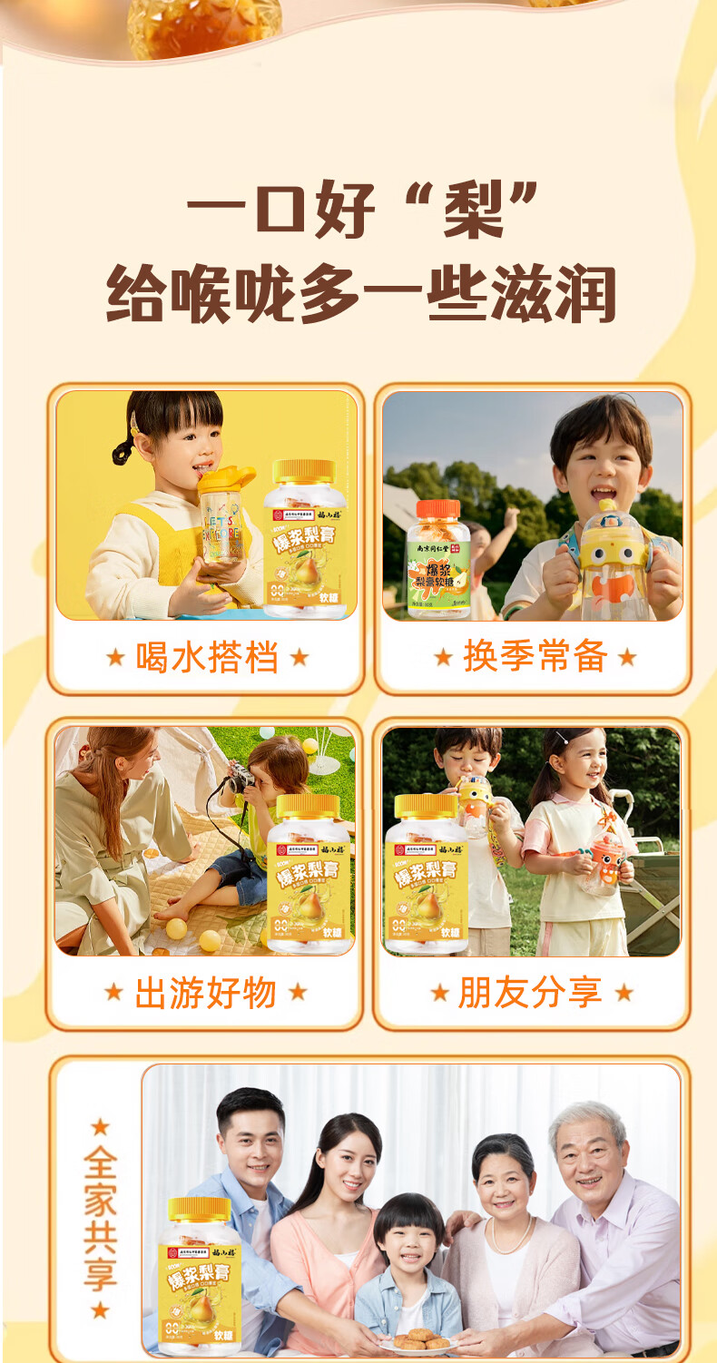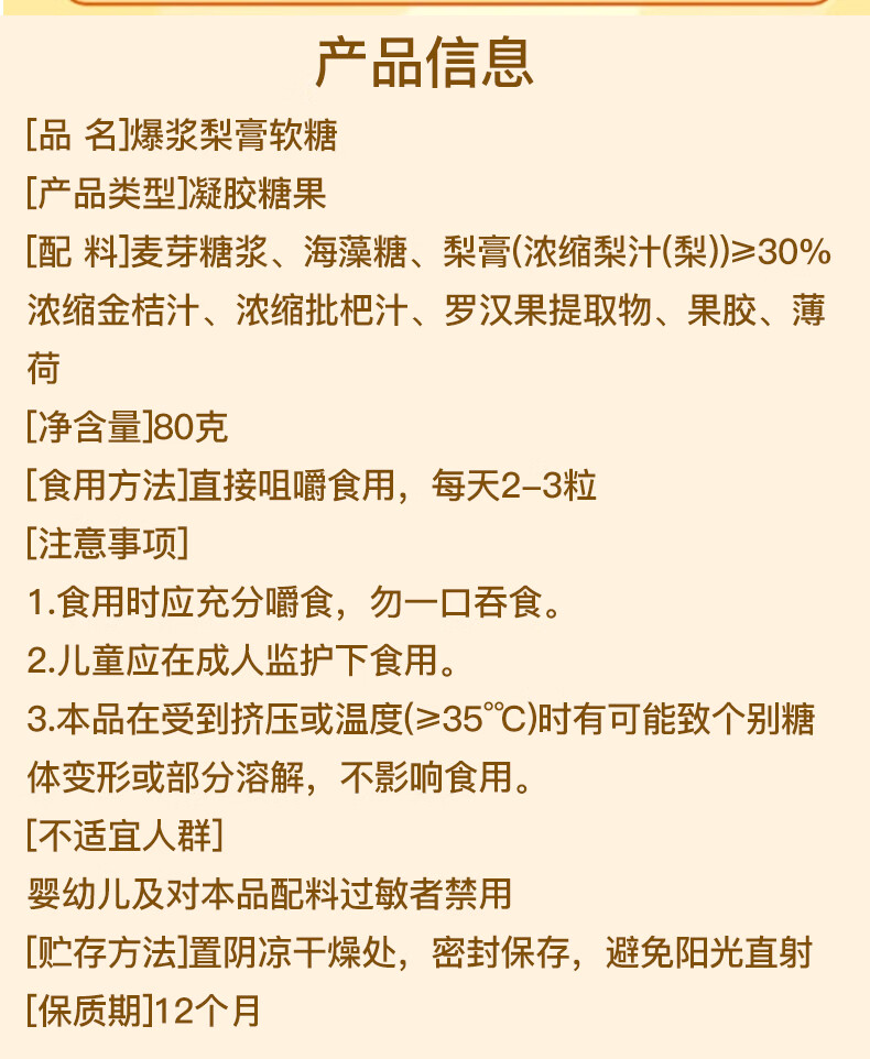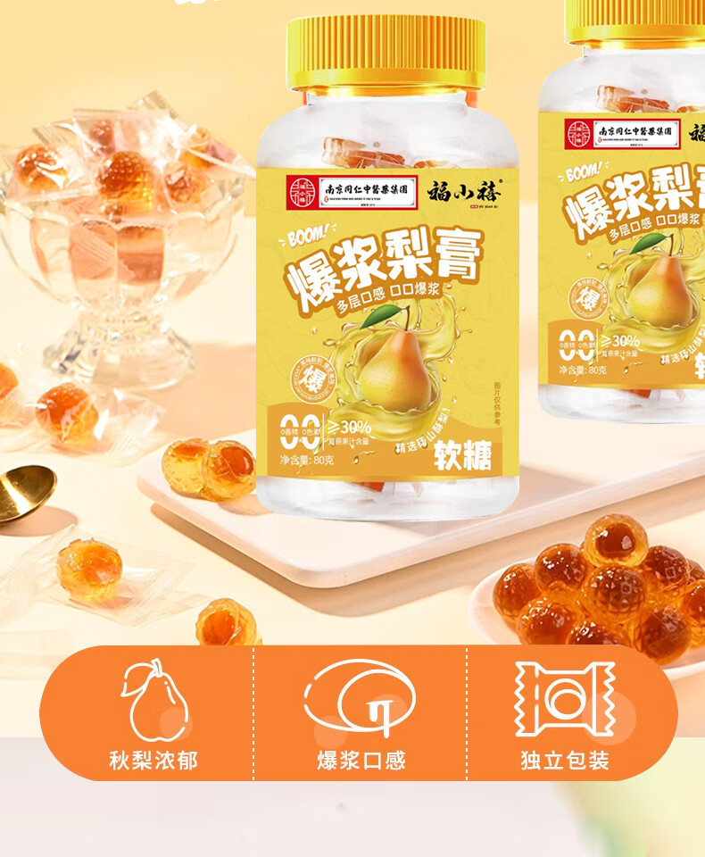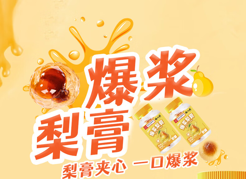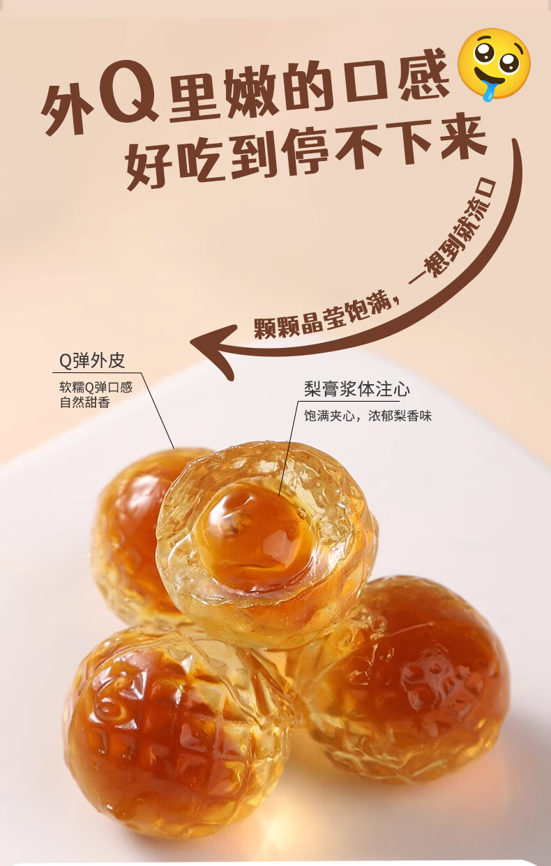 爆浆梨膏软糖零食清润梨香软Q爆浆满嘴清甜梨香大人小孩都爱吃 爆浆梨膏糖1瓶80g