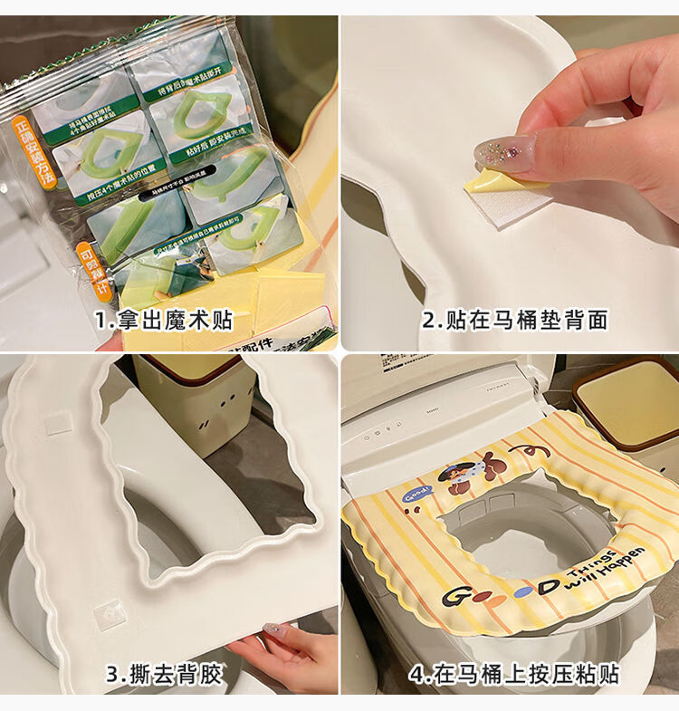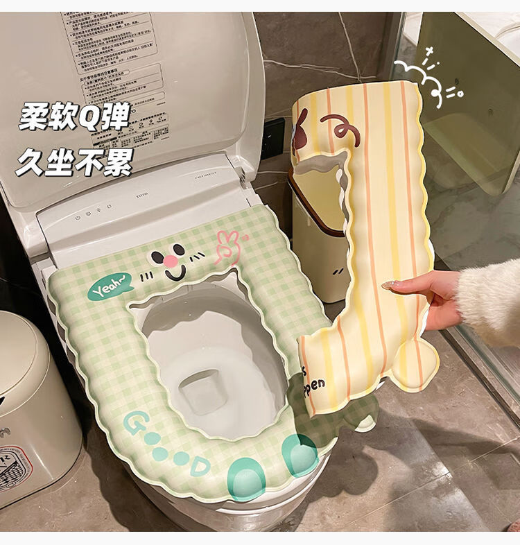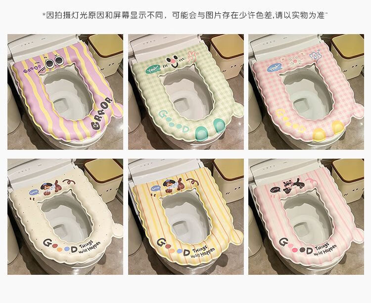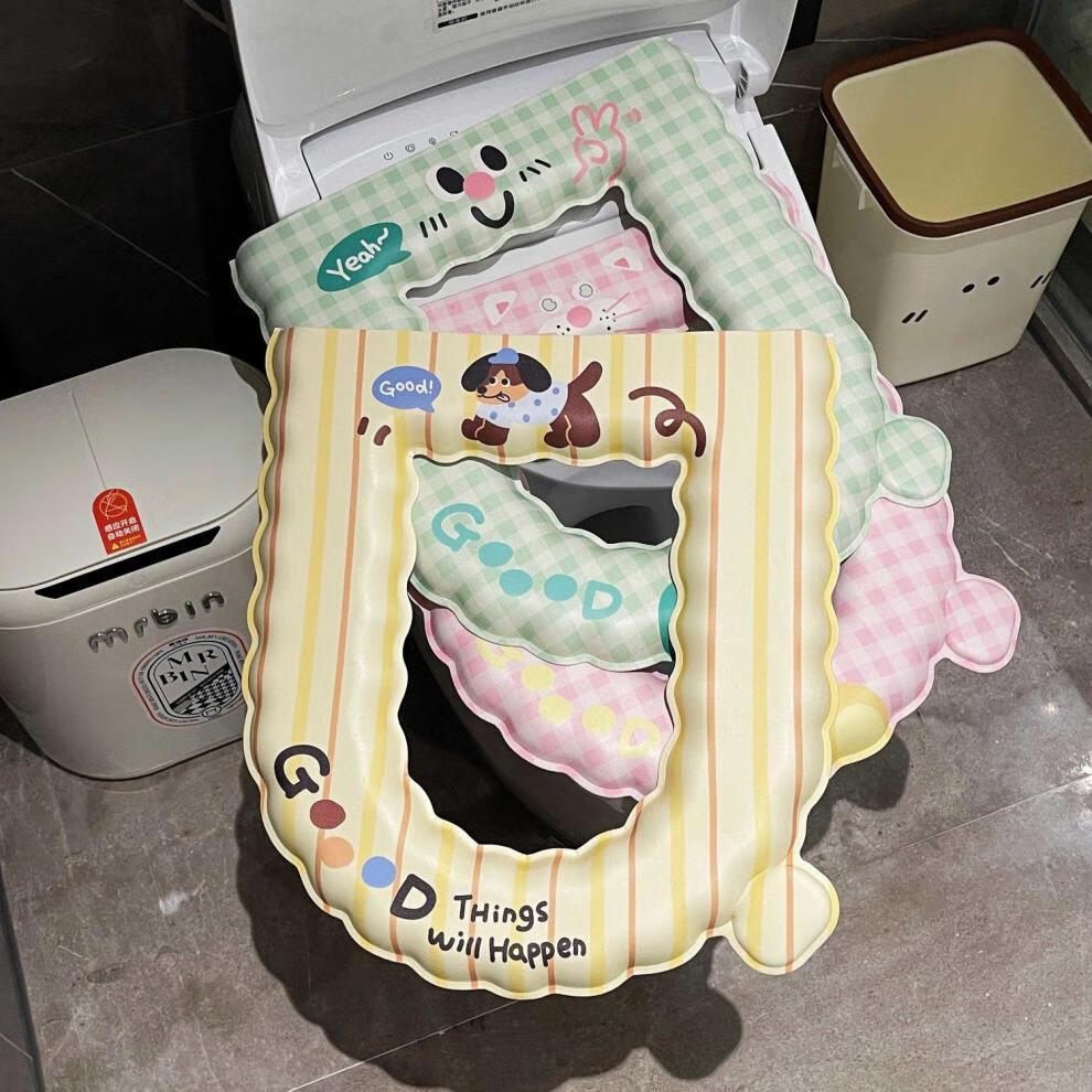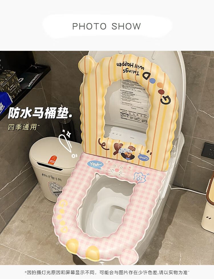 可爱卡通马桶垫春夏可擦洗马桶圈家用卫生间坐便器垫子四季马桶套 帽子狗波点