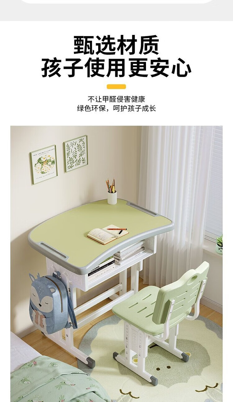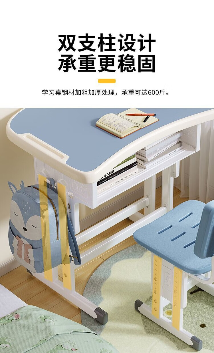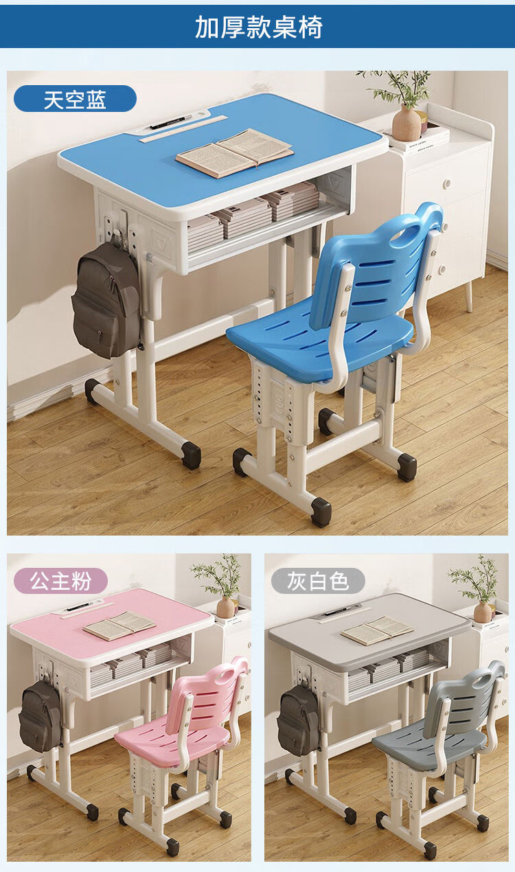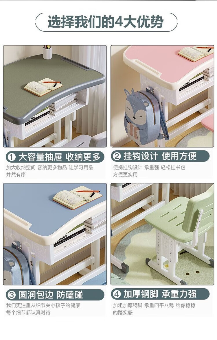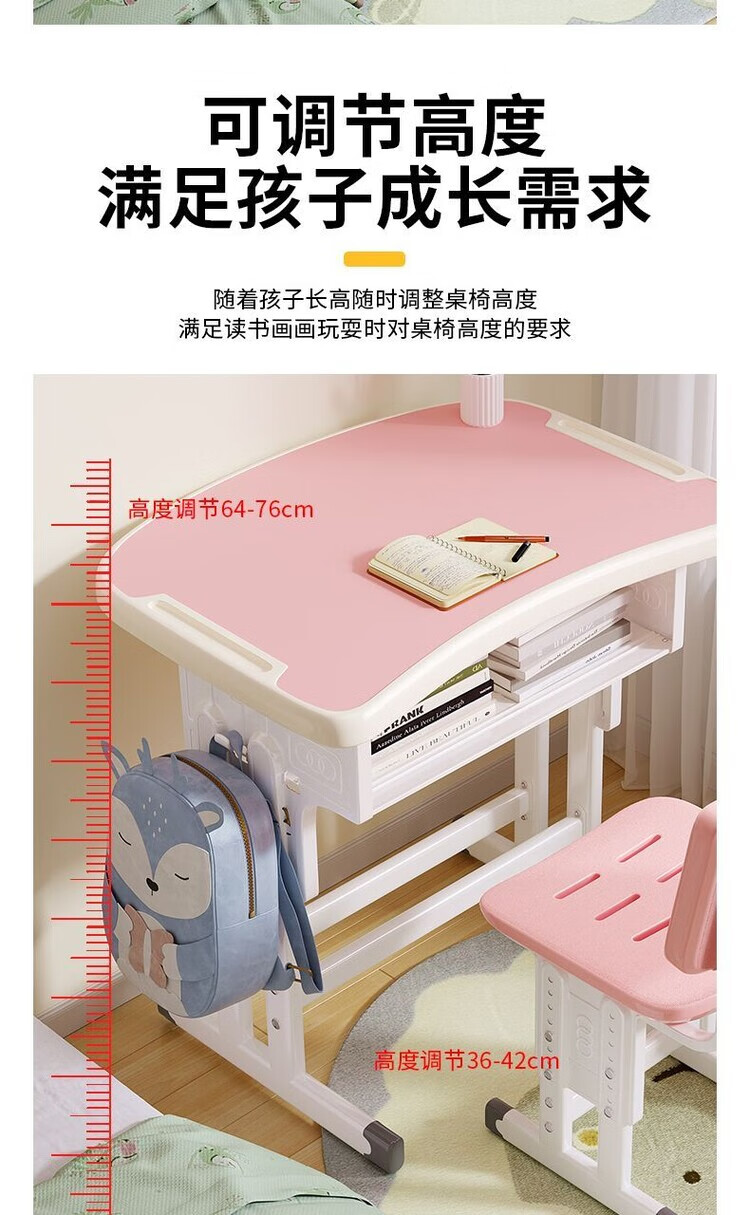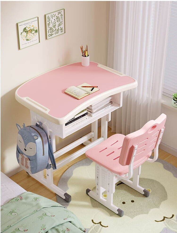 海诗圣堡儿童书桌写字桌家用小学生儿童学习桌椅男孩女孩可升降作业桌套装 学校同款 60*40桌面+粉色+桌椅