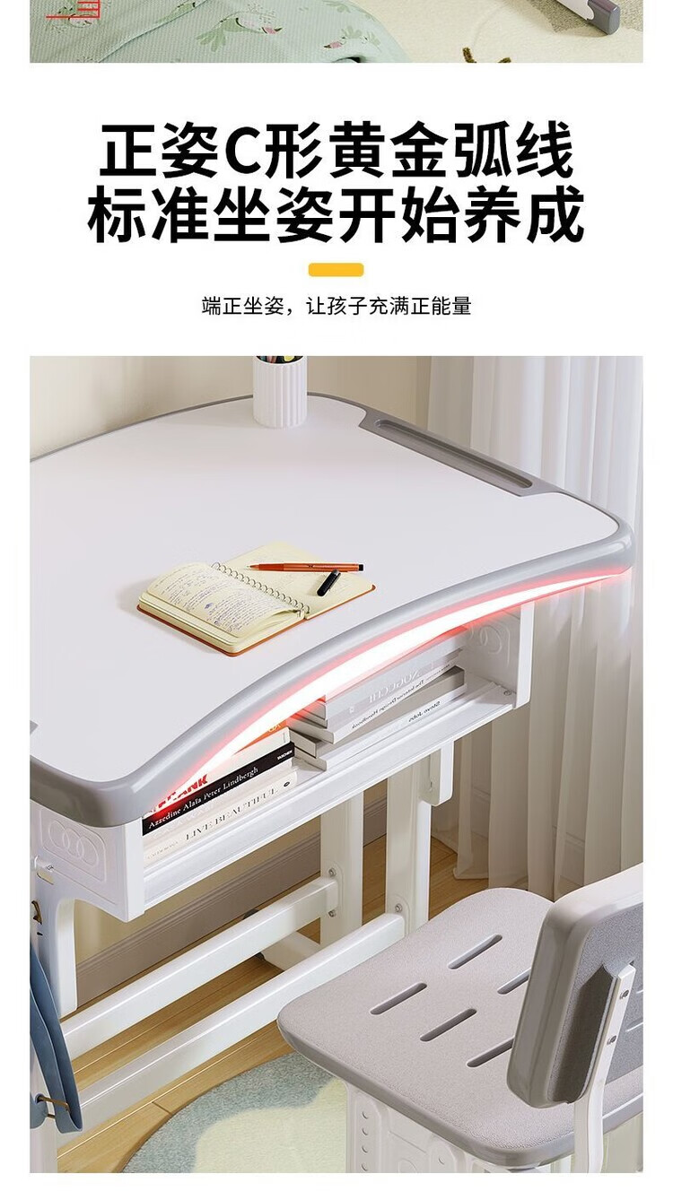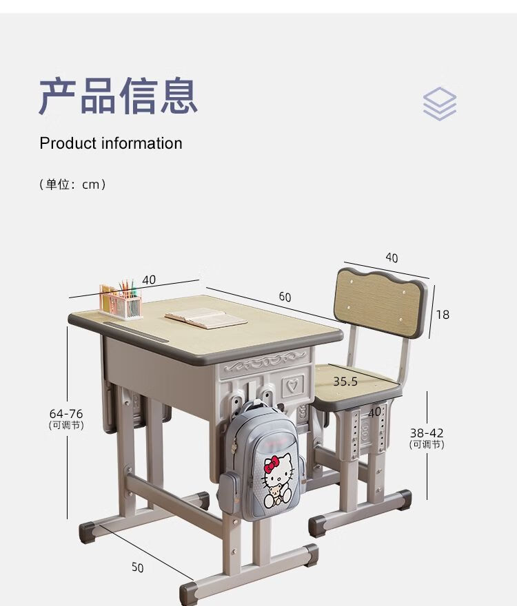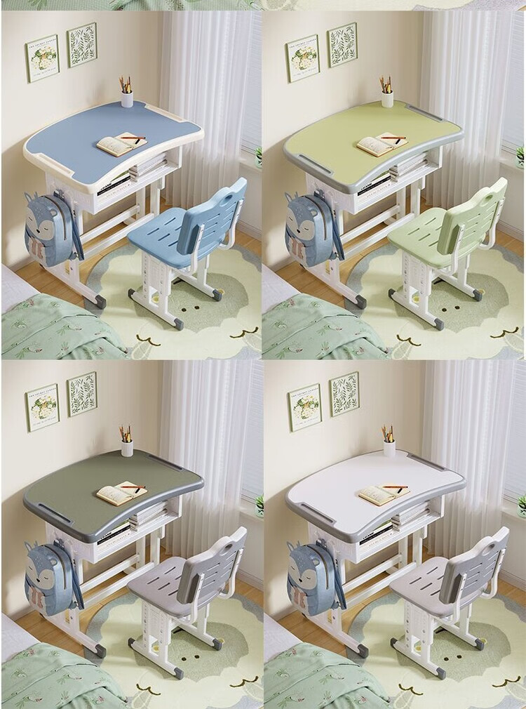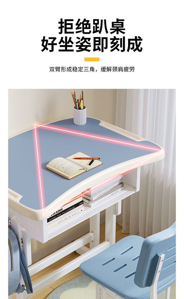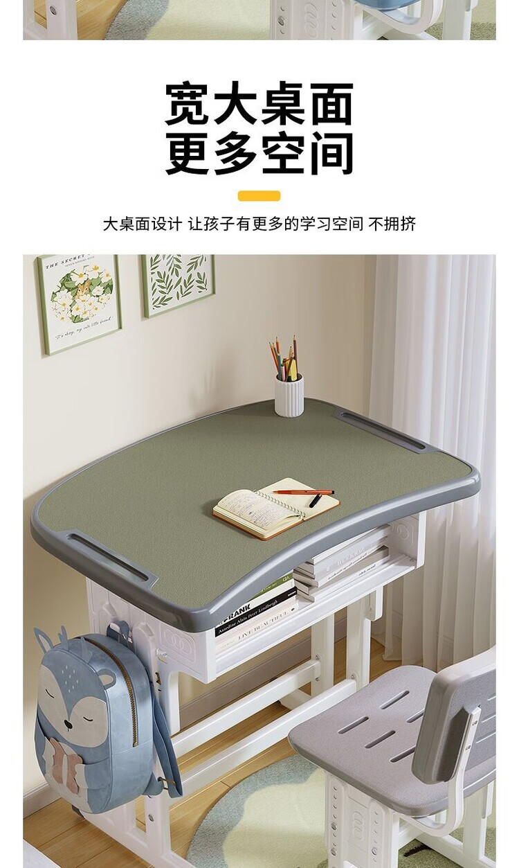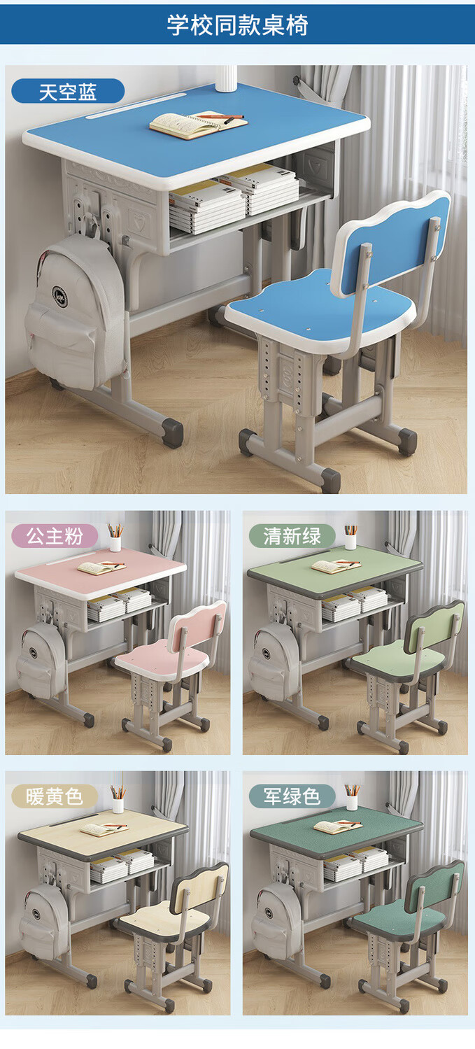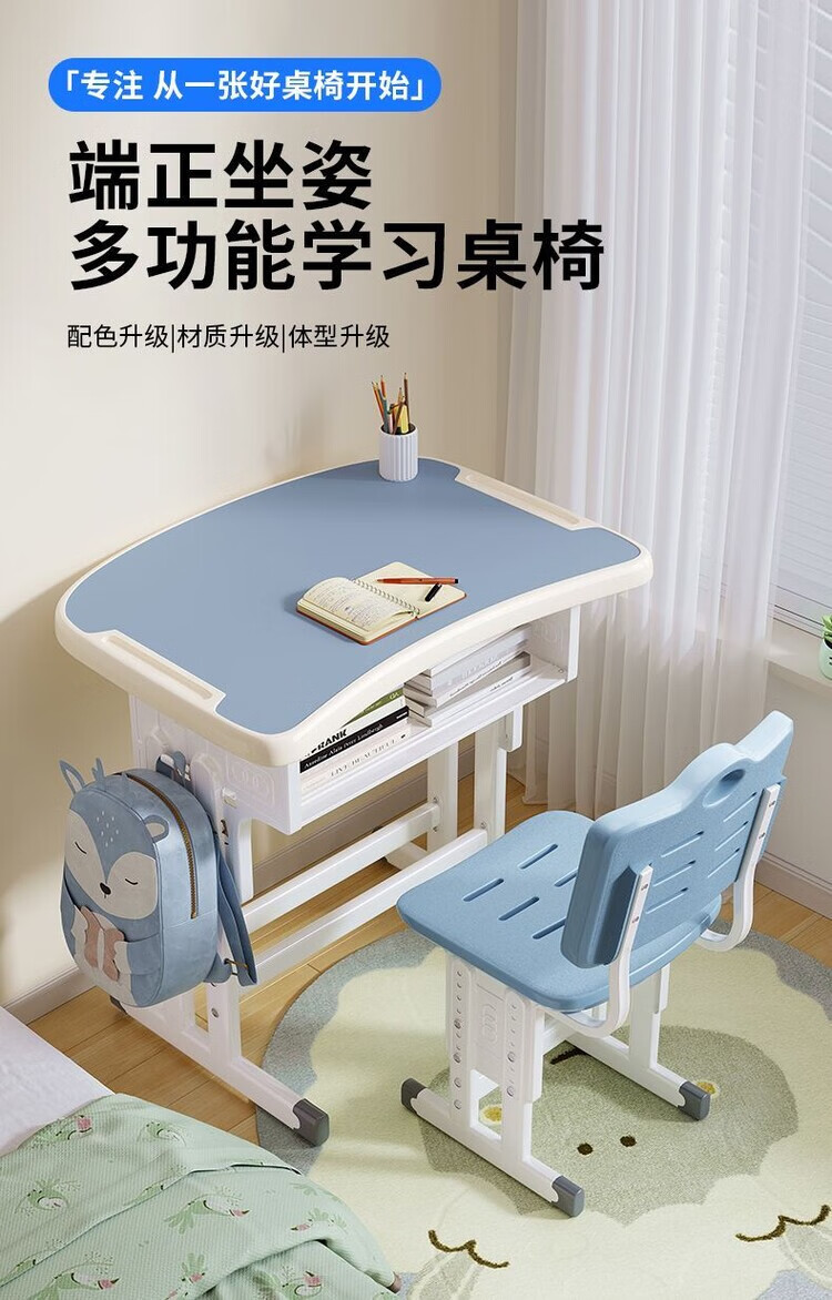 海诗圣堡儿童书桌写字桌家用小学生儿童学习桌椅男孩女孩可升降作业桌套装 学校同款 60*40桌面+粉色+桌椅