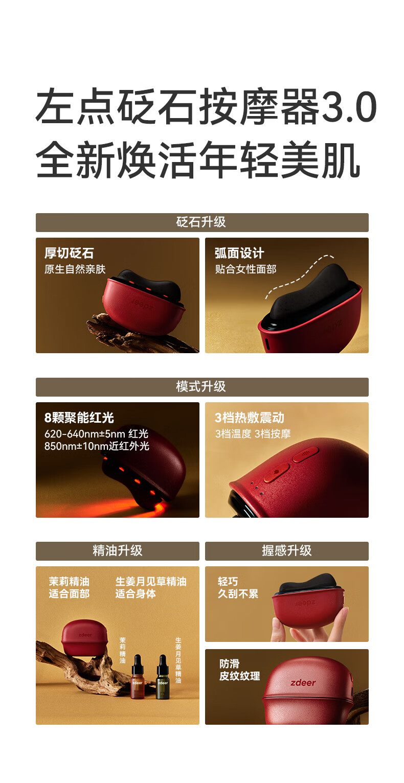 左点zdeer黑砭石按摩器面部刮脸仪器恒温智能电动刮痧板生日礼物
