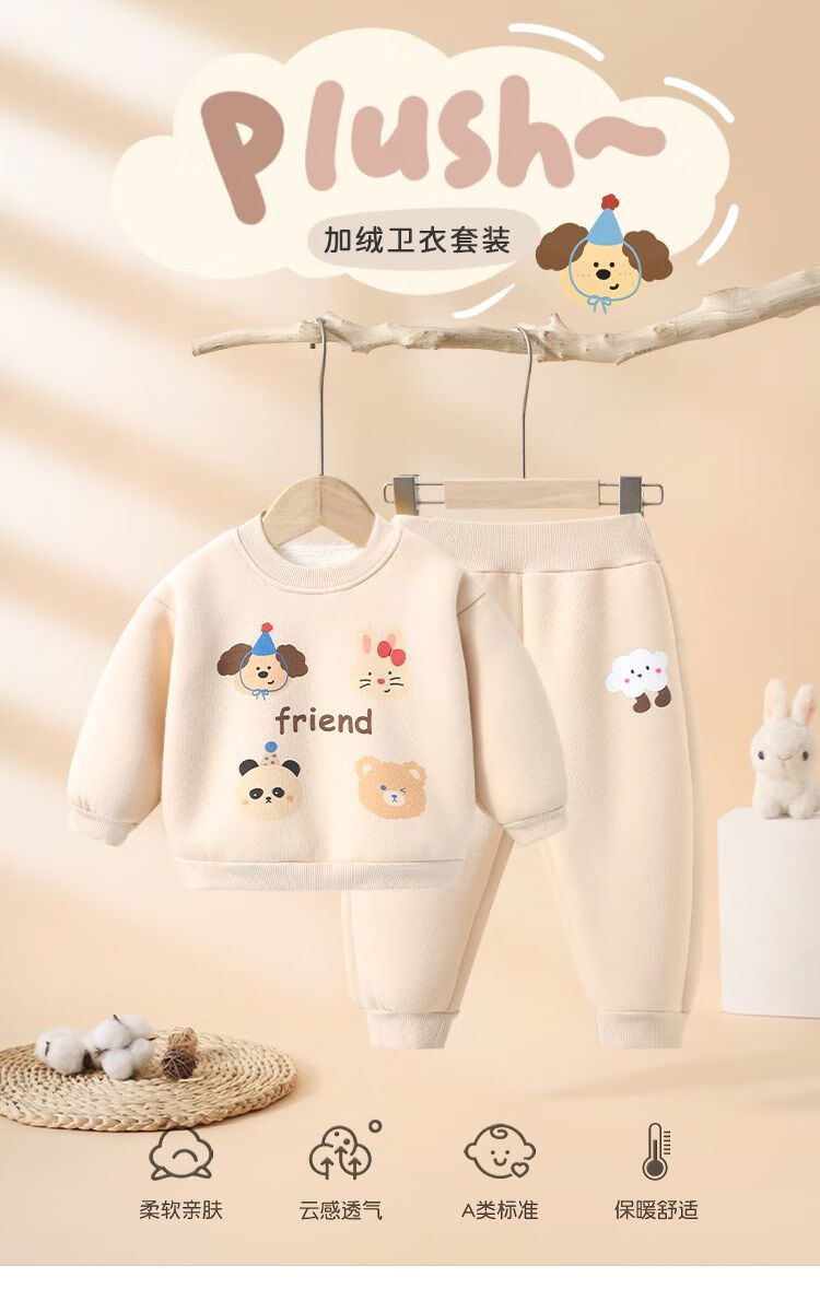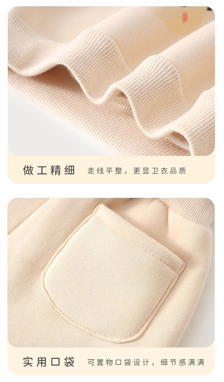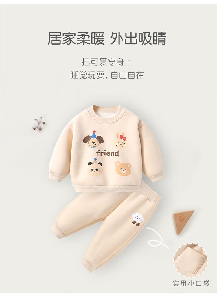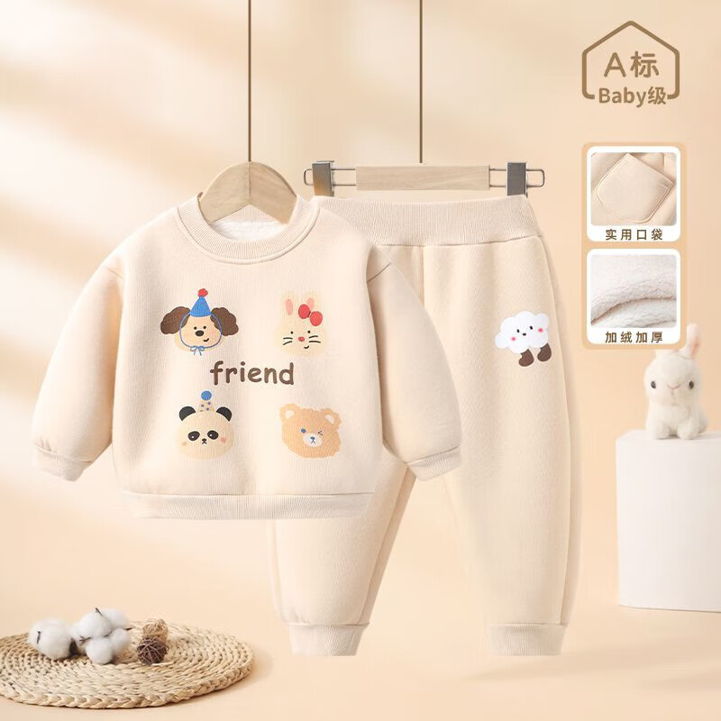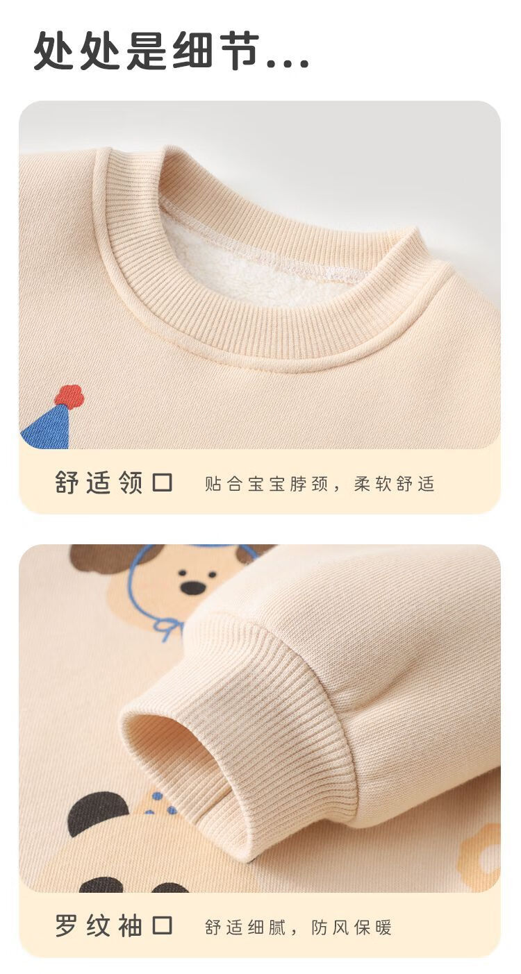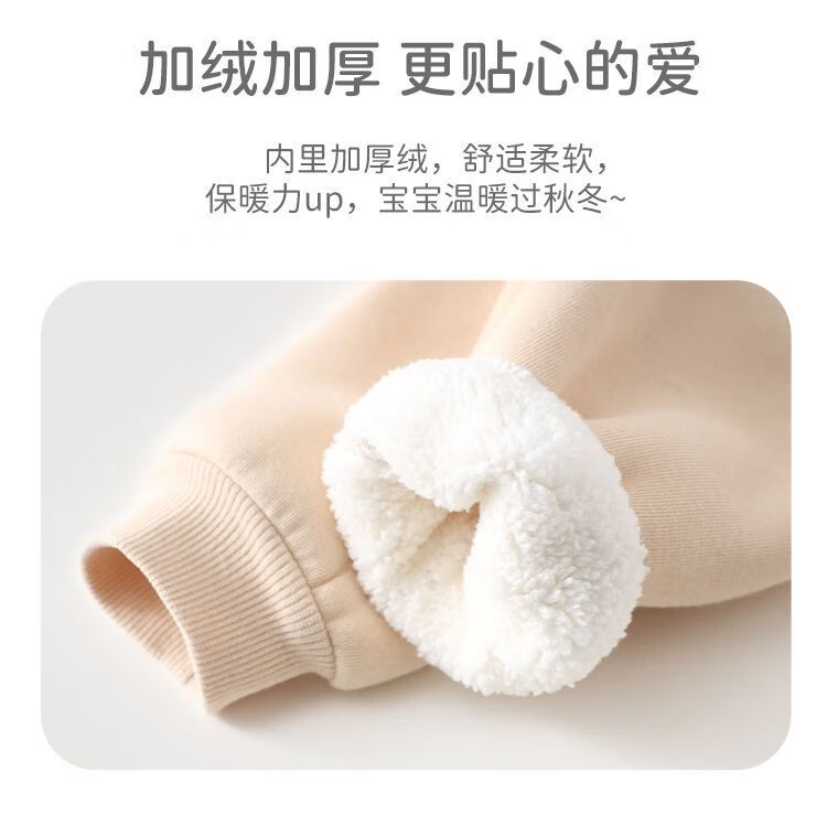 G.duck小黄鸭儿童卫衣套装秋冬加绒加厚宝宝卫衣裤子外穿婴儿保暖两件套 【加绒 】A类/卡其 加厚 100 身高88-98CM