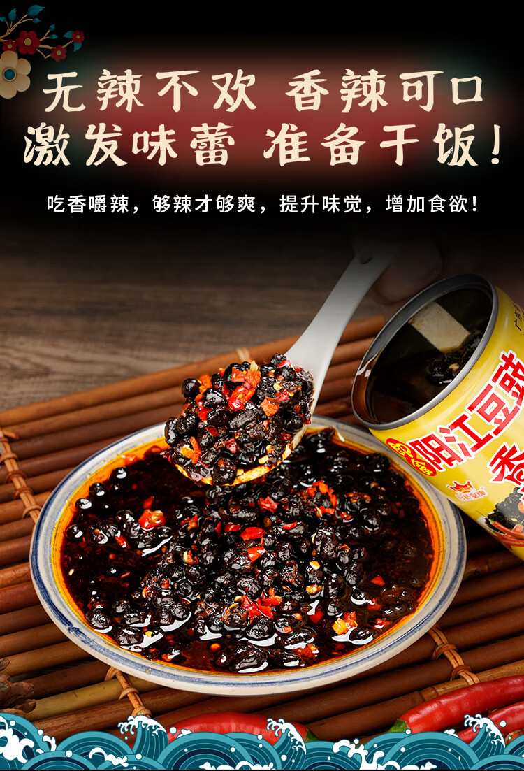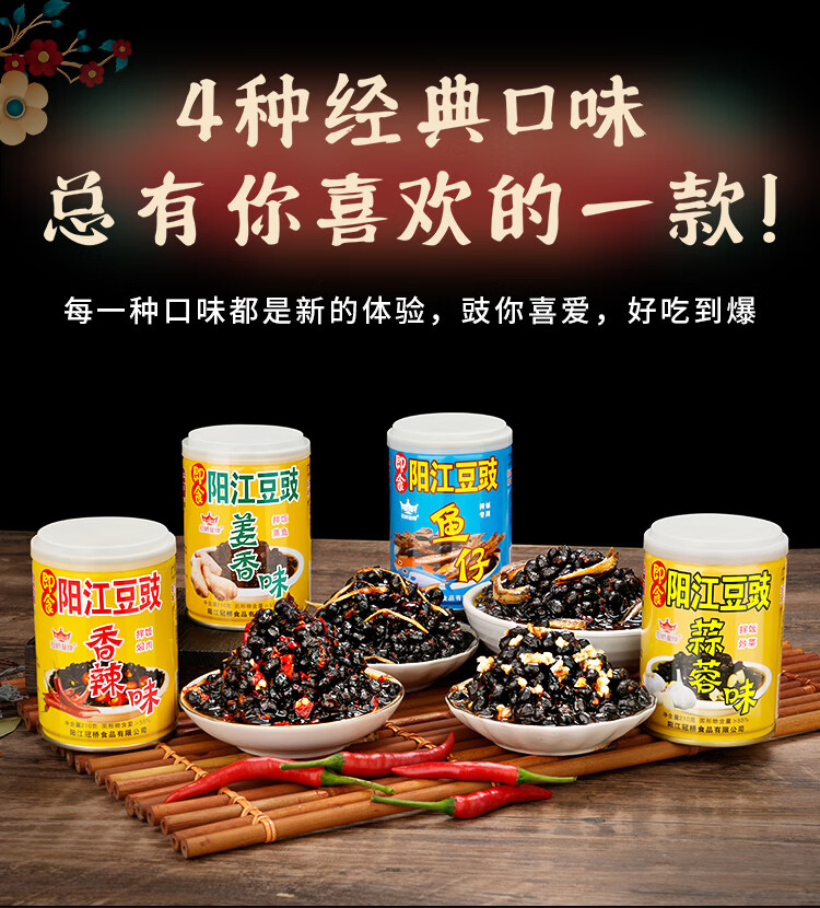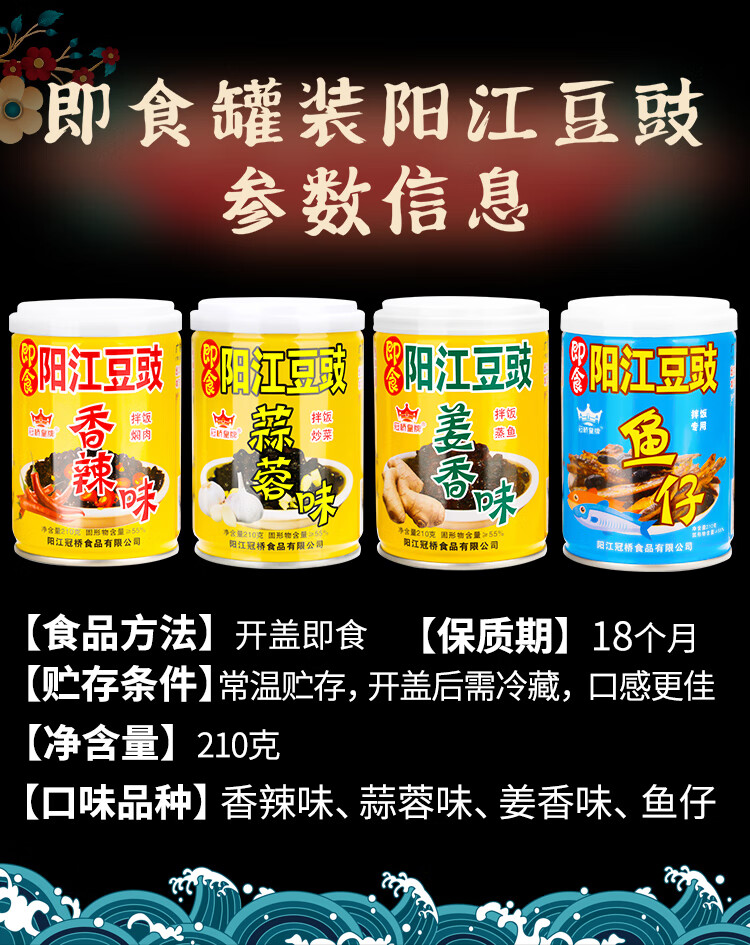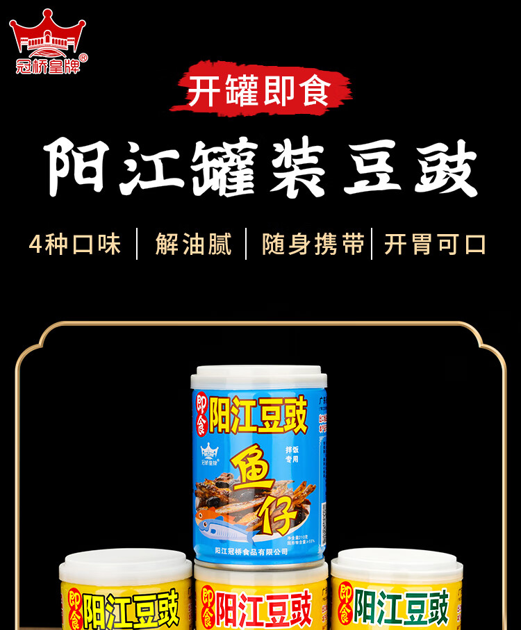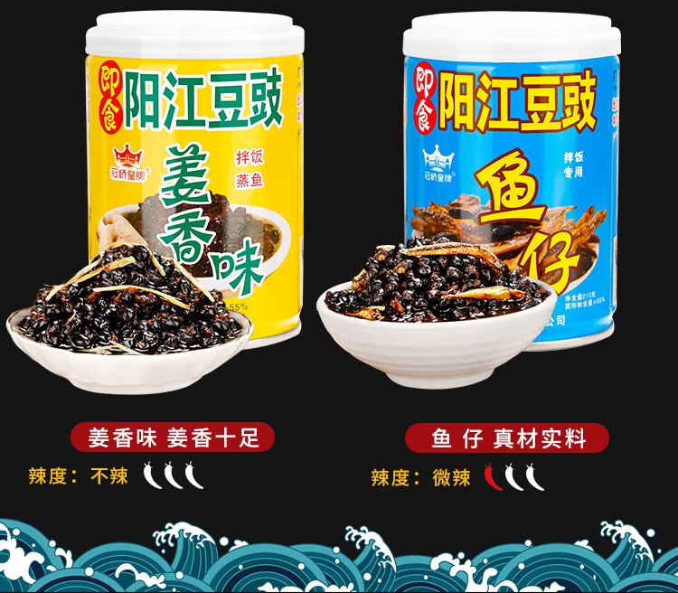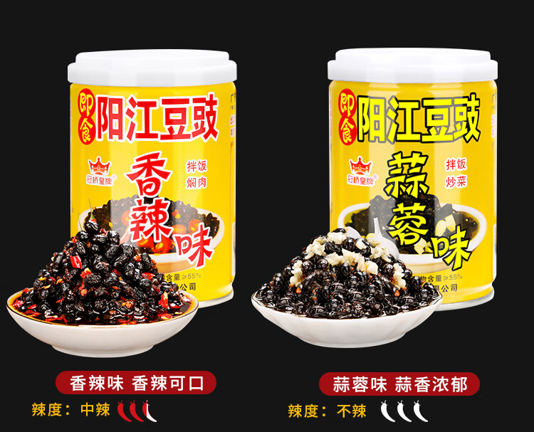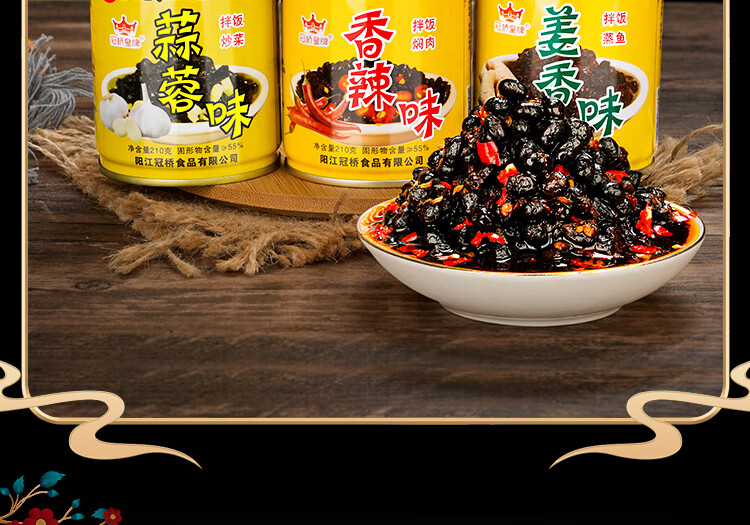 冠桥皇牌阳江豆豉即食豆豉正宗正品铁罐蒜香姜香辣广东特产豆鼓拌面拌饭用 香辣蒜香姜香【组合】210克*3罐