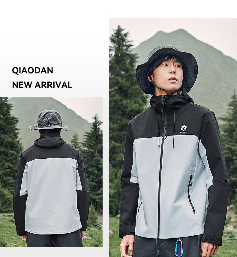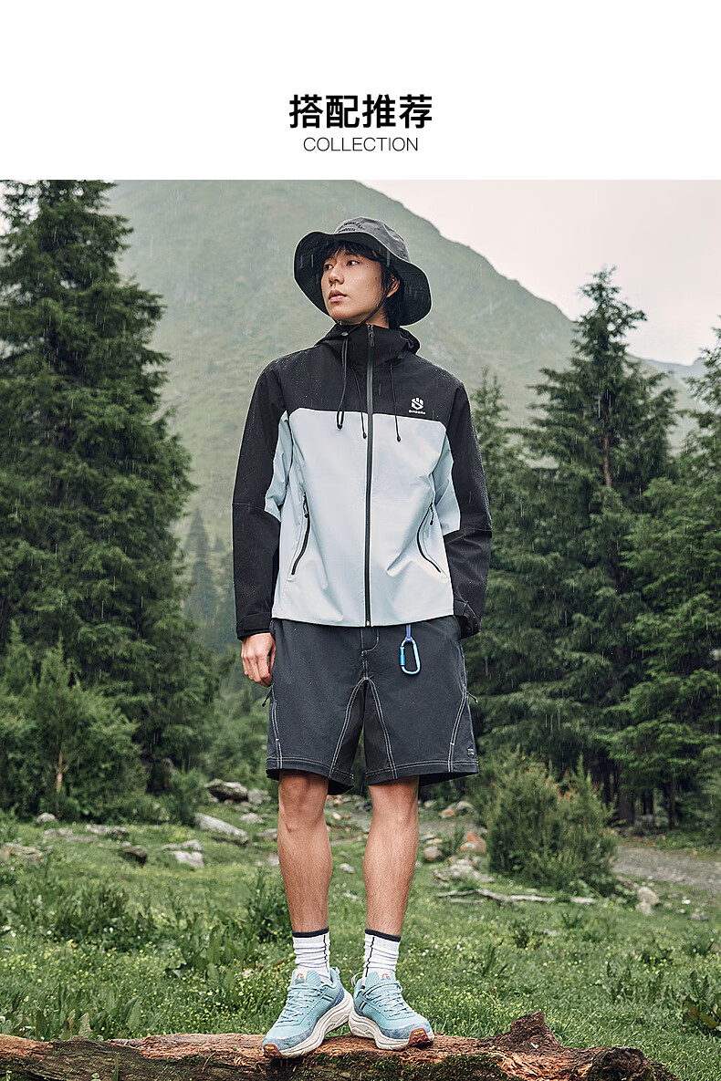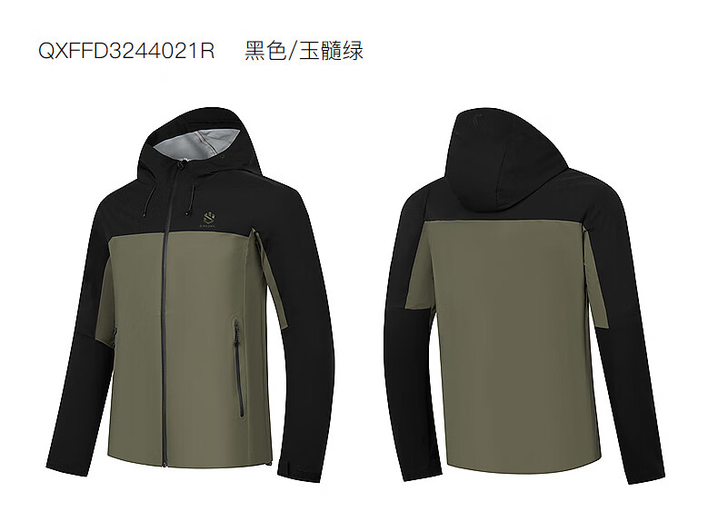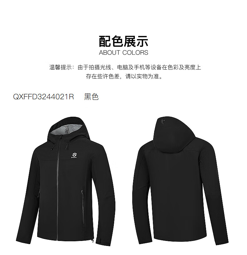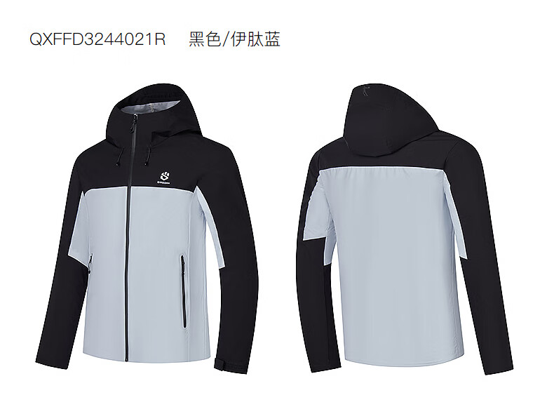 乔丹山神风衣男外套秋冬季防风防泼水户外冲锋登山夹克 黑色/伊肽蓝 M