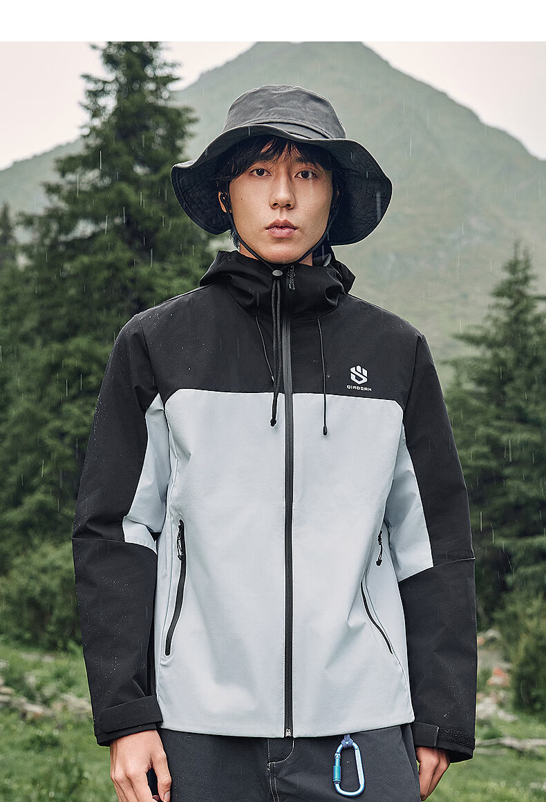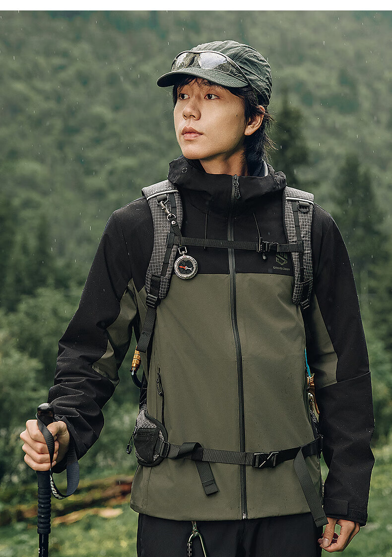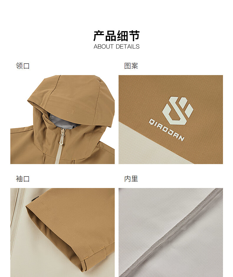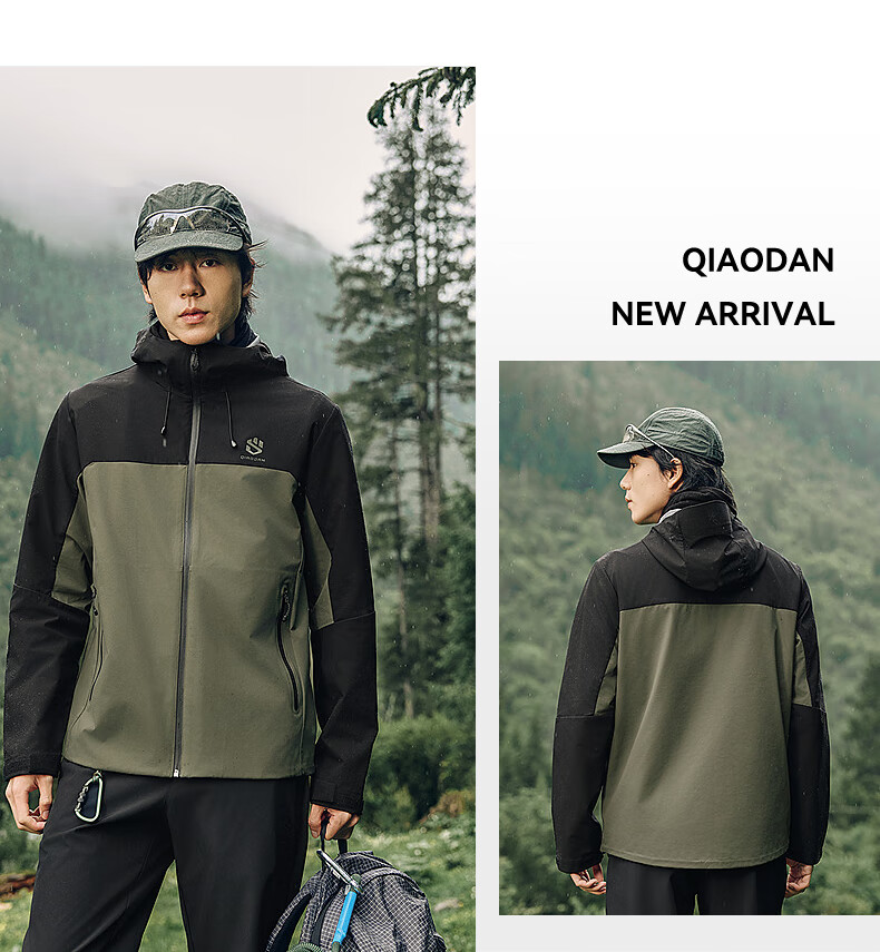 乔丹山神风衣男外套秋冬季防风防泼水户外冲锋登山夹克 黑色/伊肽蓝 M