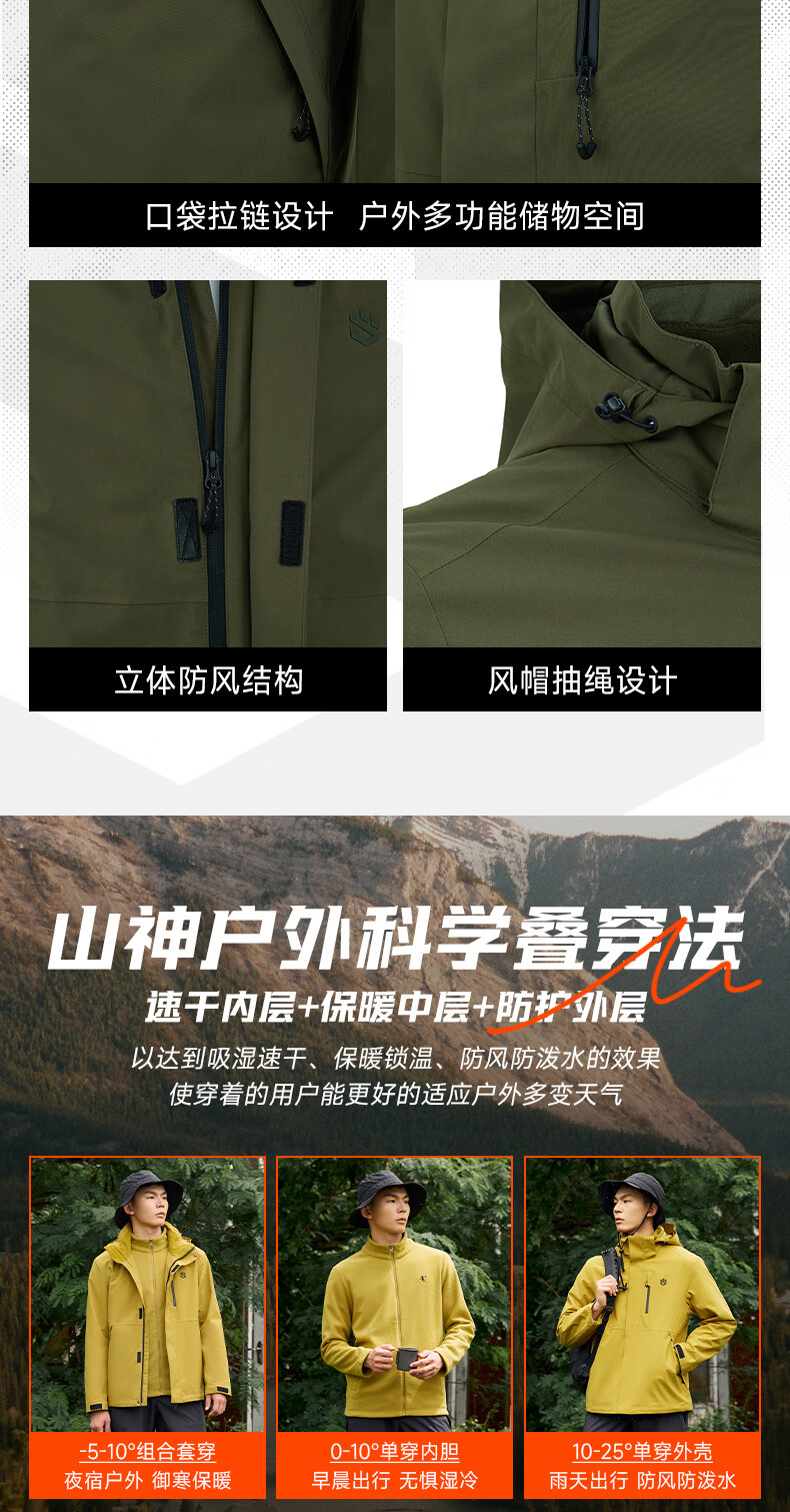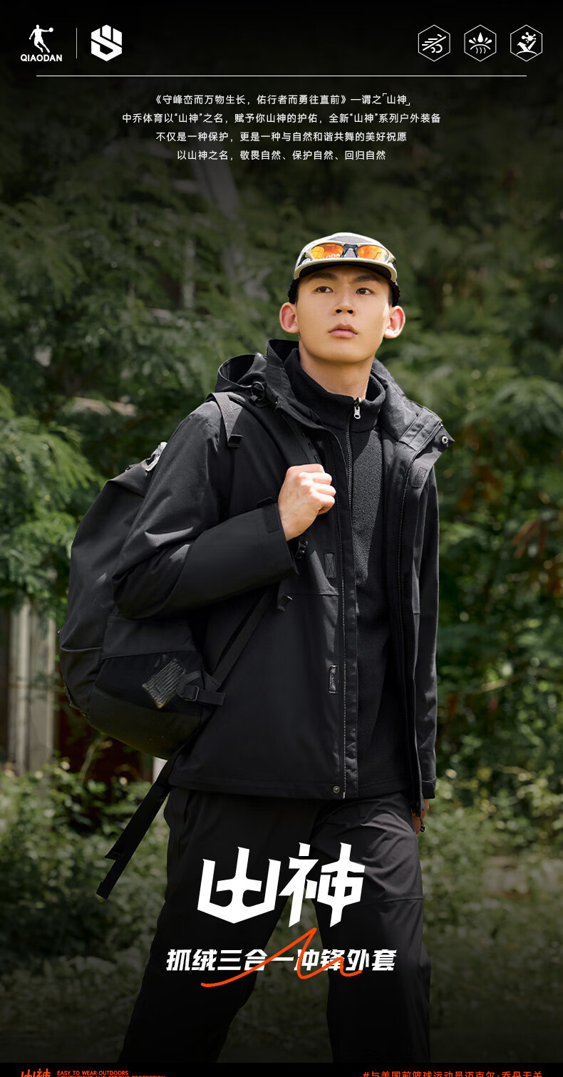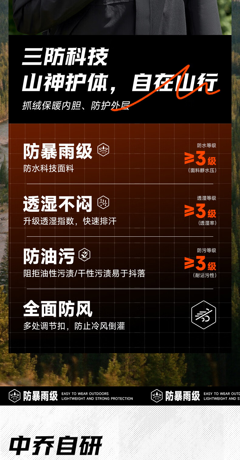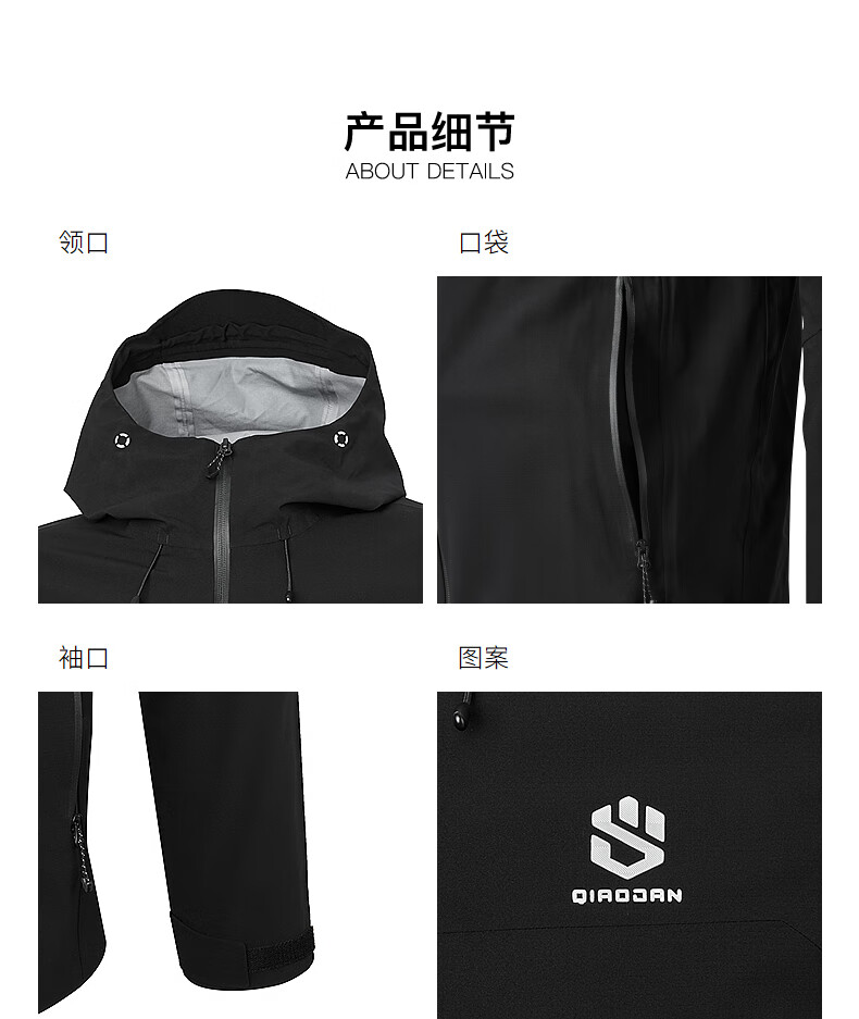 乔丹冲锋衣男山神PRO秋冬季外套户外连帽防水防单层风衣男夹克