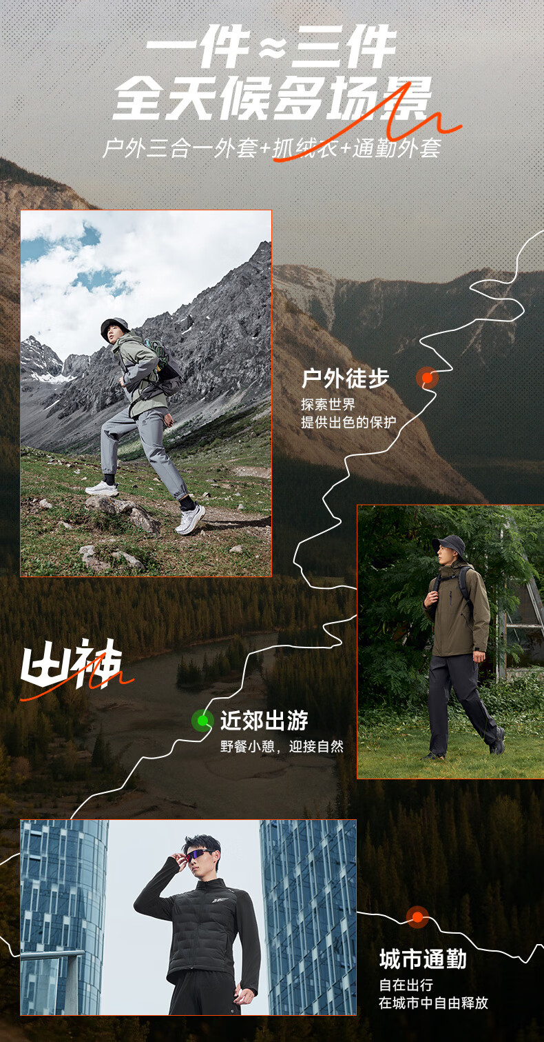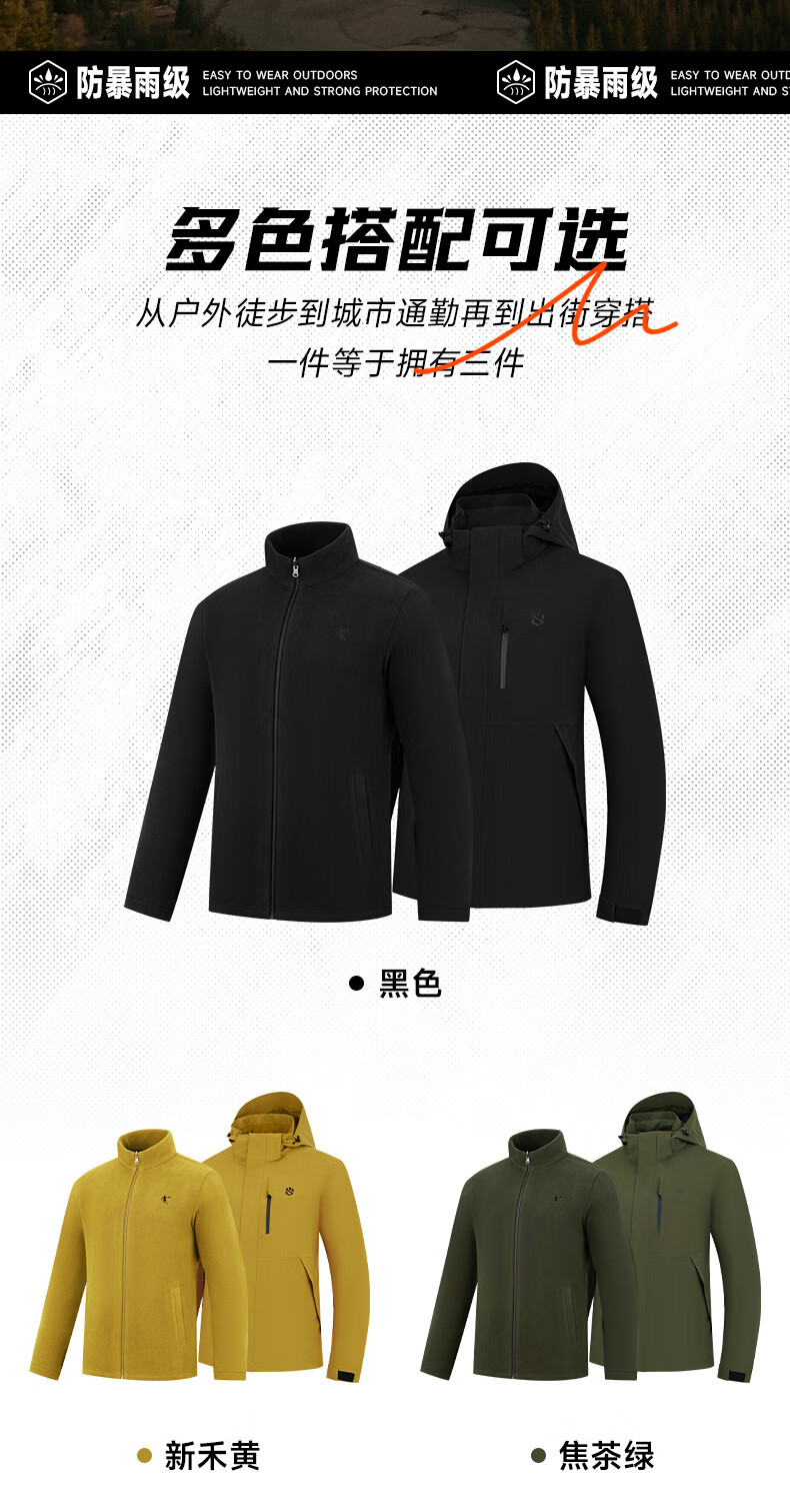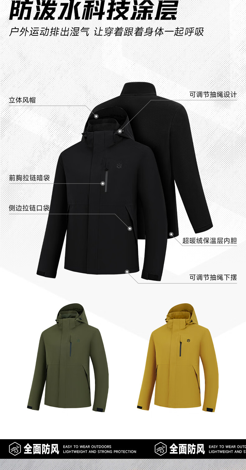 乔丹冲锋衣男山神PRO秋冬季外套户外连帽防水防单层风衣男夹克