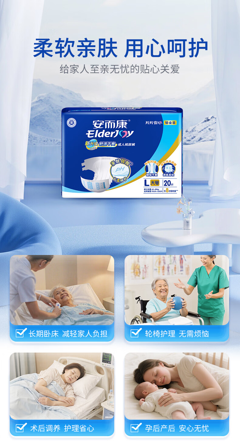 安而康(Elderjoy)舒适干爽成人纸尿裤L80片臀围95-120cm成人尿不湿老人亲肤