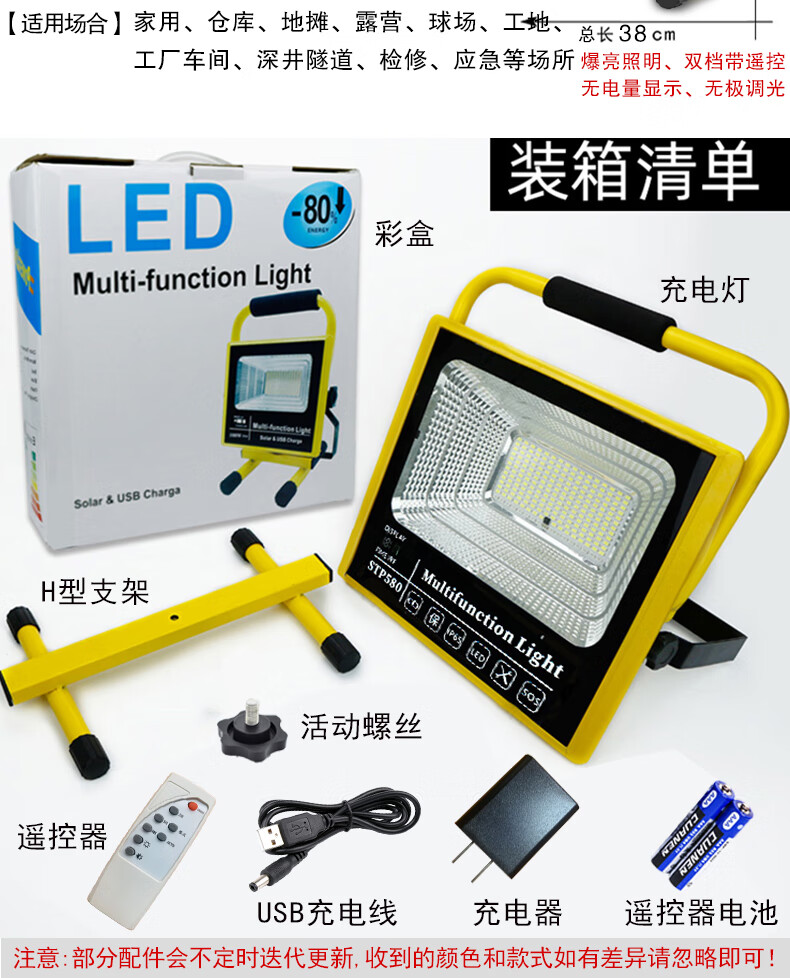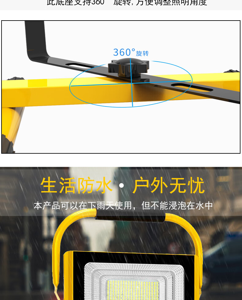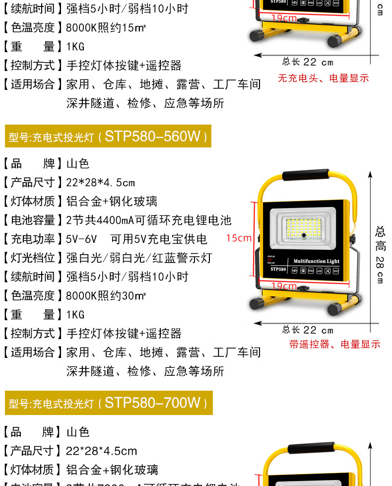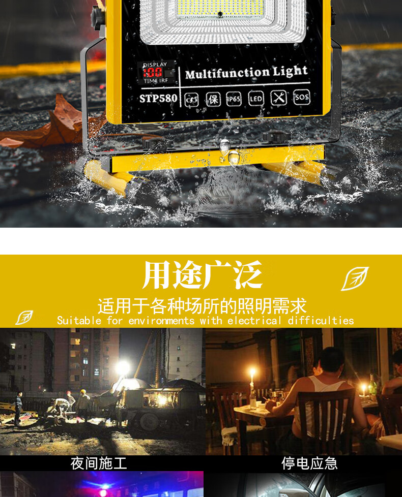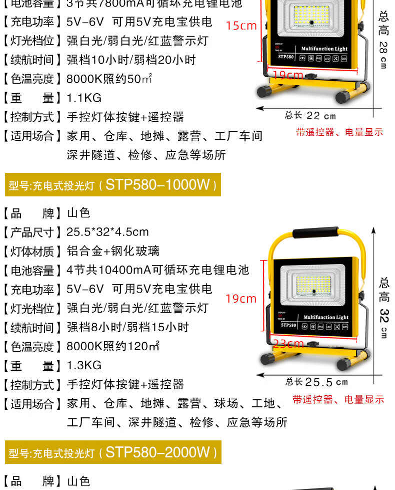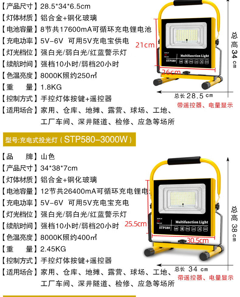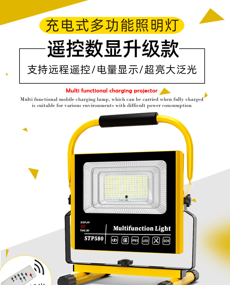 山色充电照明投光灯LED工地工作灯户外家用停电应急露营球场手提灯 560W/2锂电56珠丨数显超亮5-10H