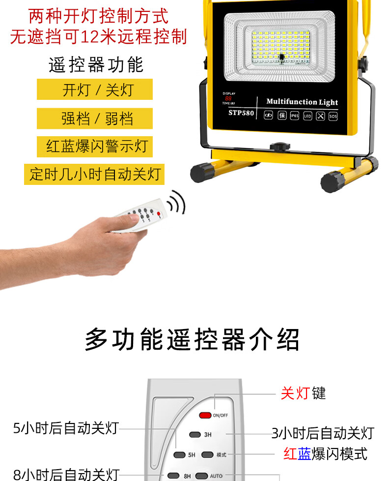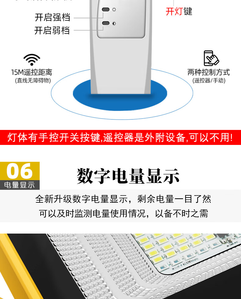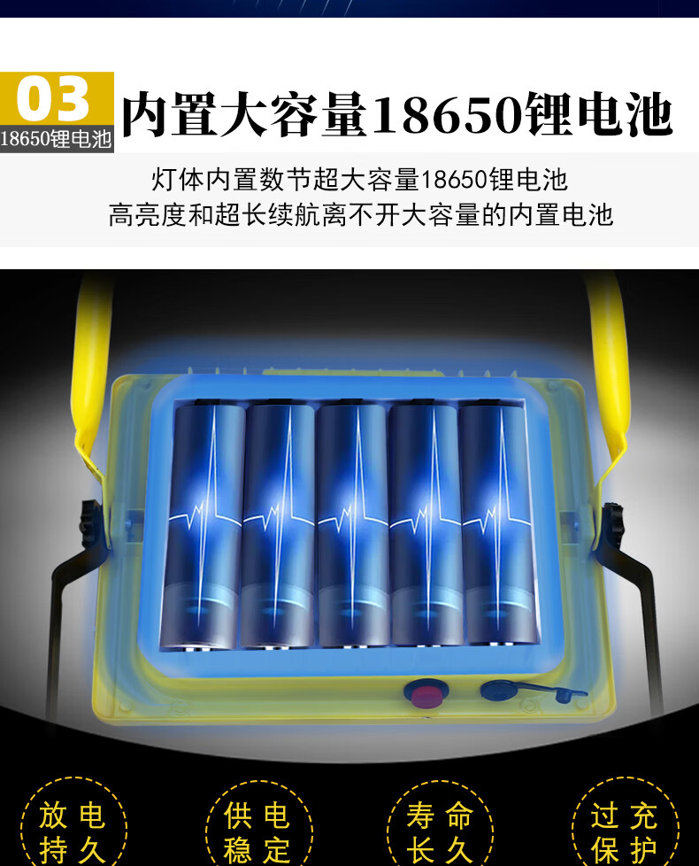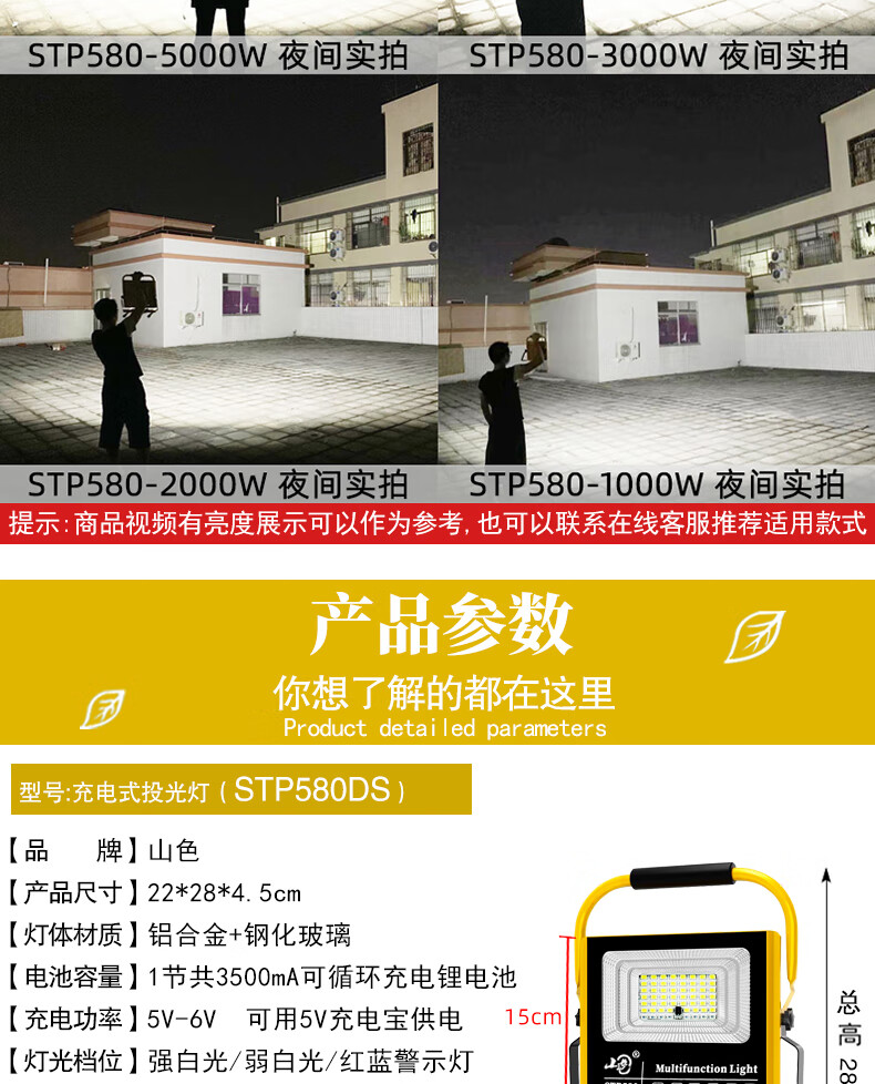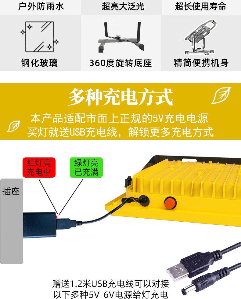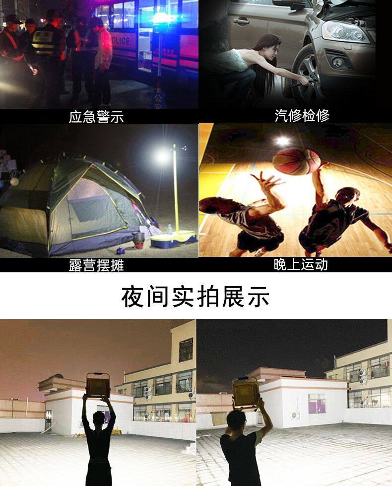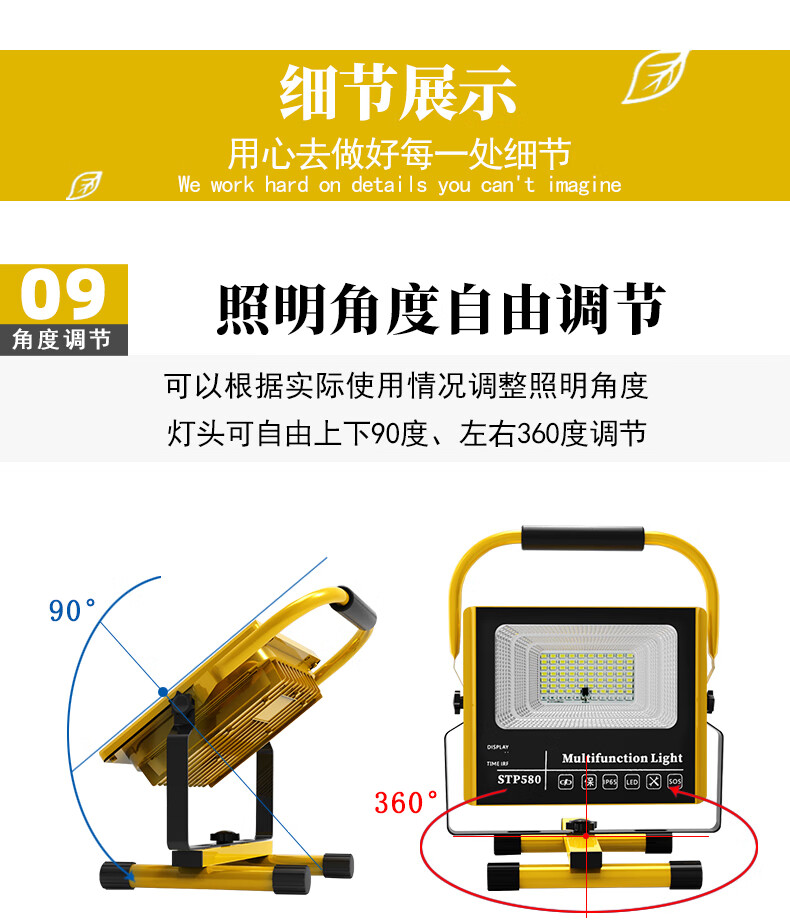 山色充电照明投光灯LED工地工作灯户外家用停电应急露营球场手提灯 560W/2锂电56珠丨数显超亮5-10H