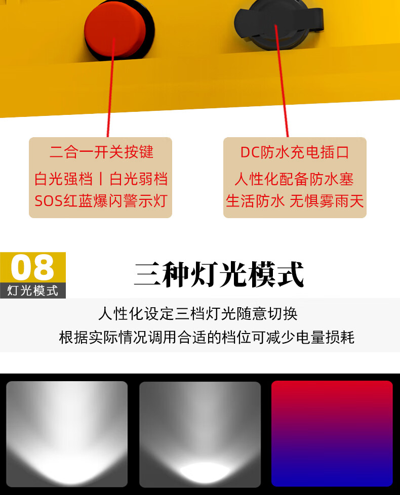 TOWILD拓野户外防水手电筒聚光强光充电远射磁吸巡逻灯手电筒小型便携式 BC10