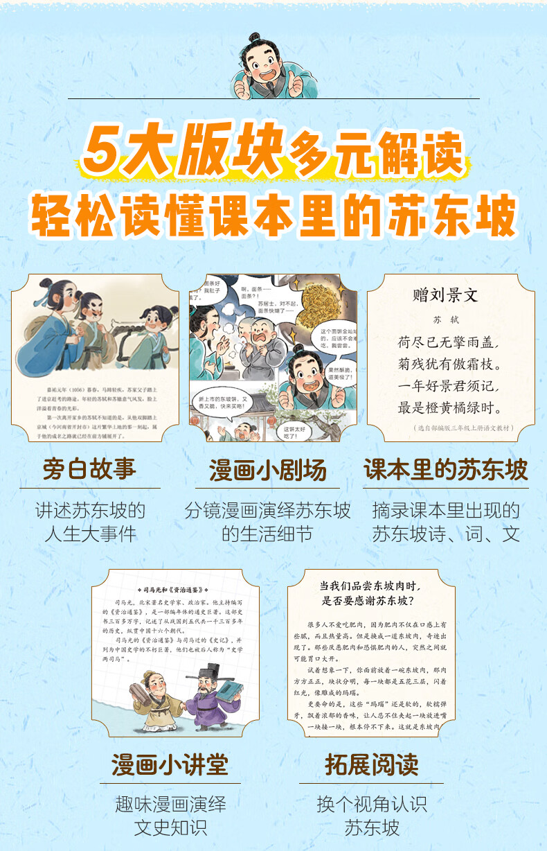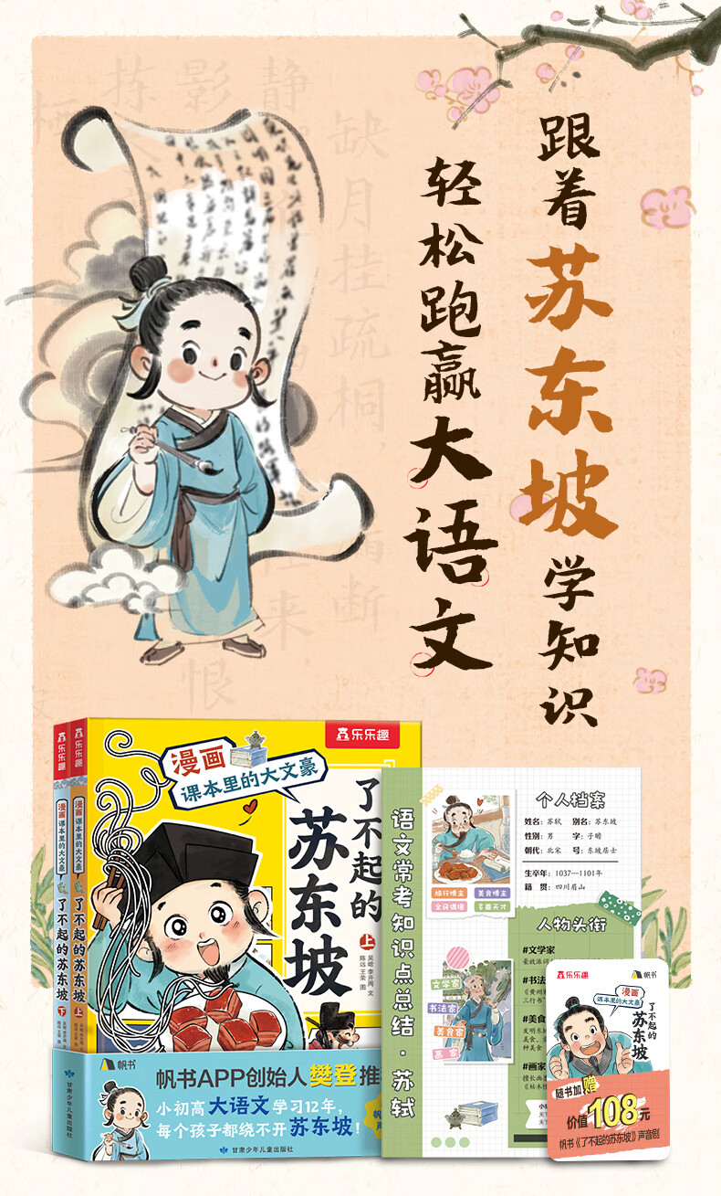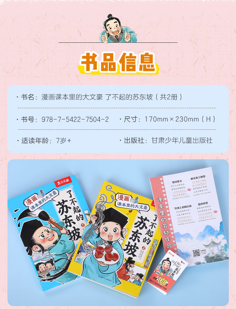 【樊登推荐】乐乐趣了不起的苏东坡乘风破浪的李清照课本里的大文豪苏东坡传李清照传漫画书人物传记人生得遇苏东坡绘本小初高大语文常考知识6-8-12岁 漫画版了不起的苏东坡(2册)