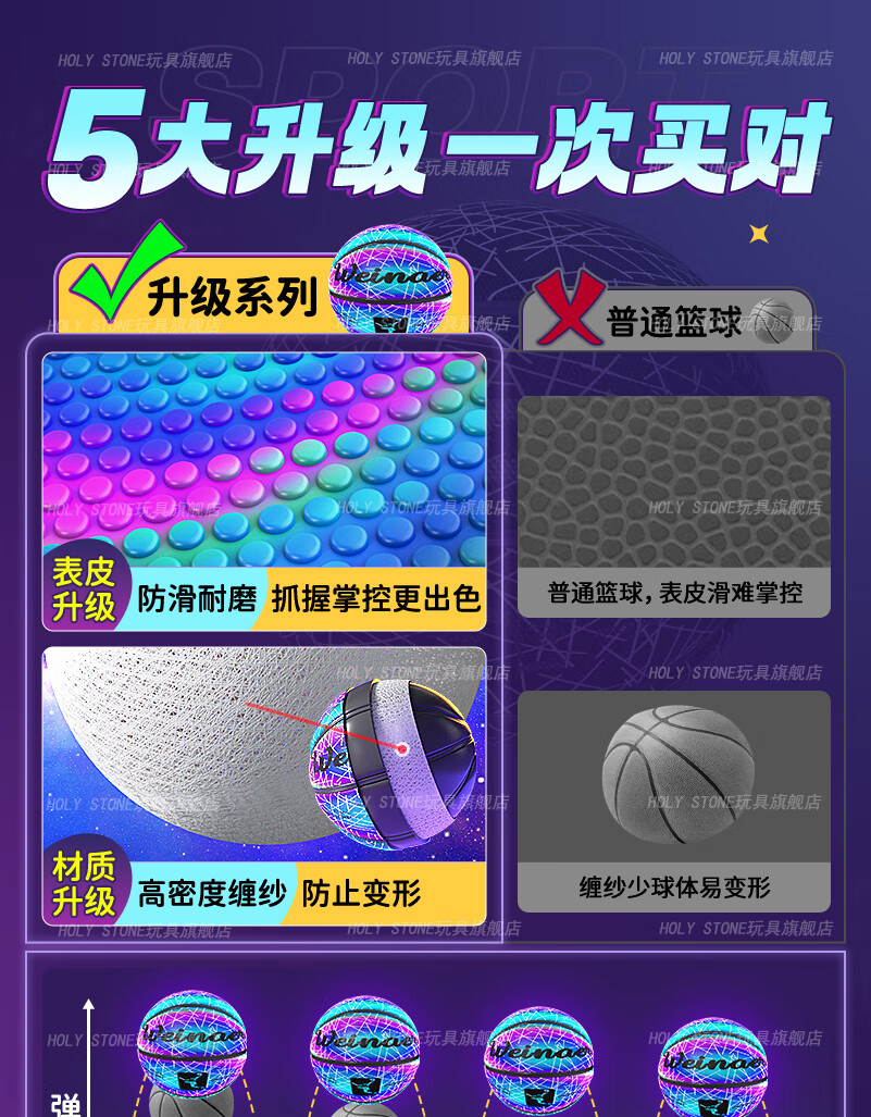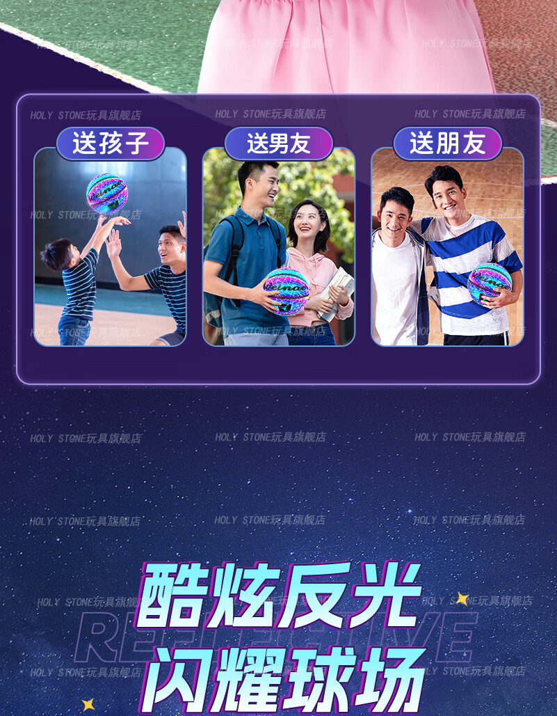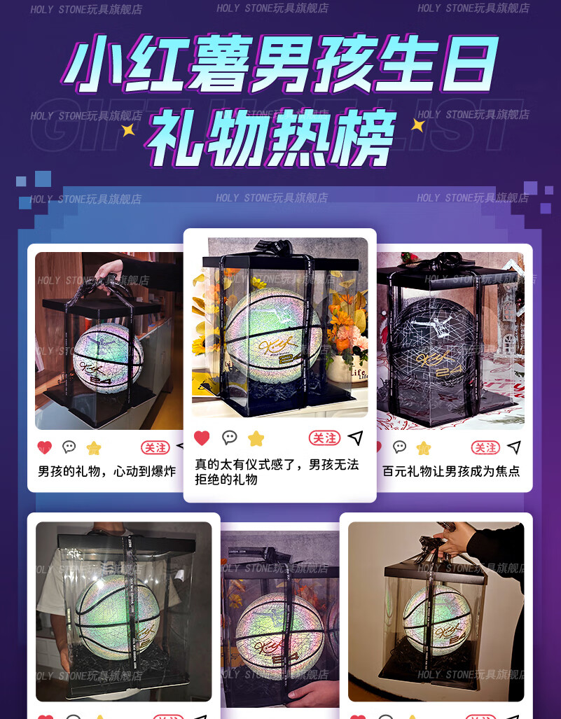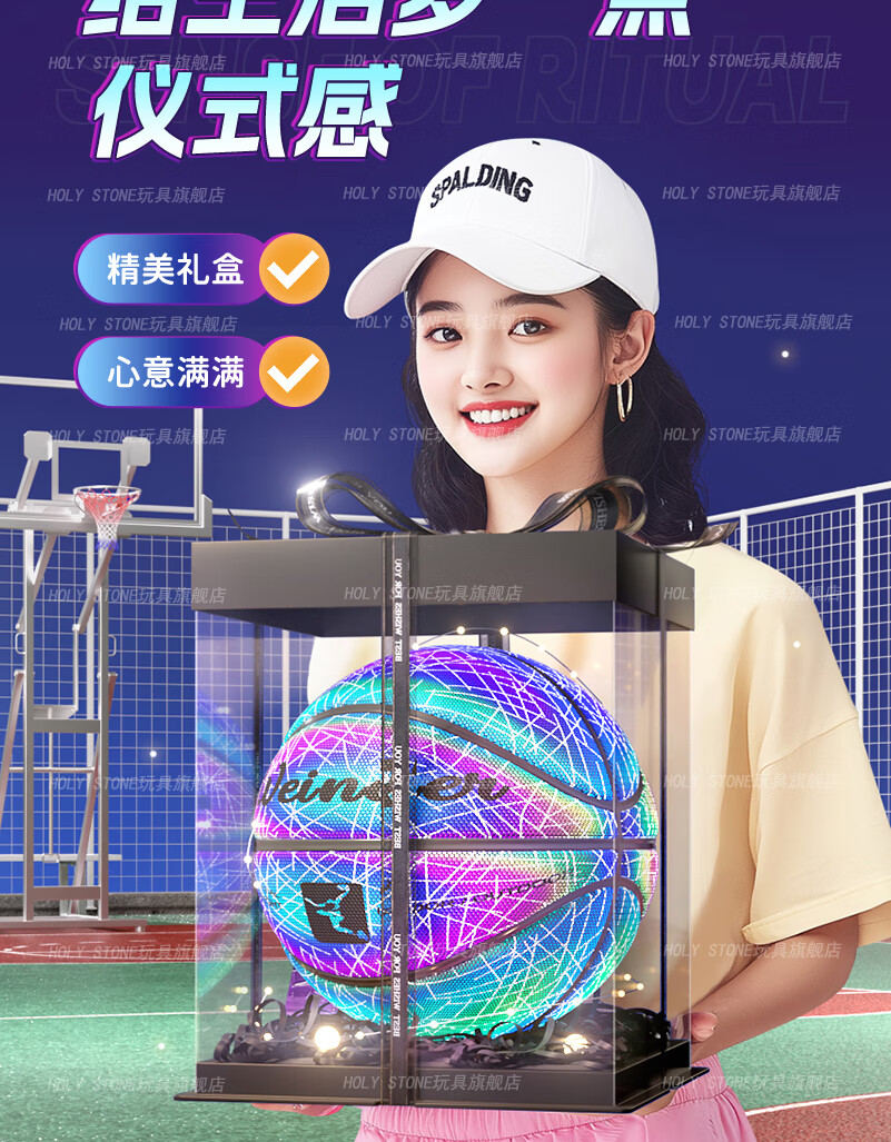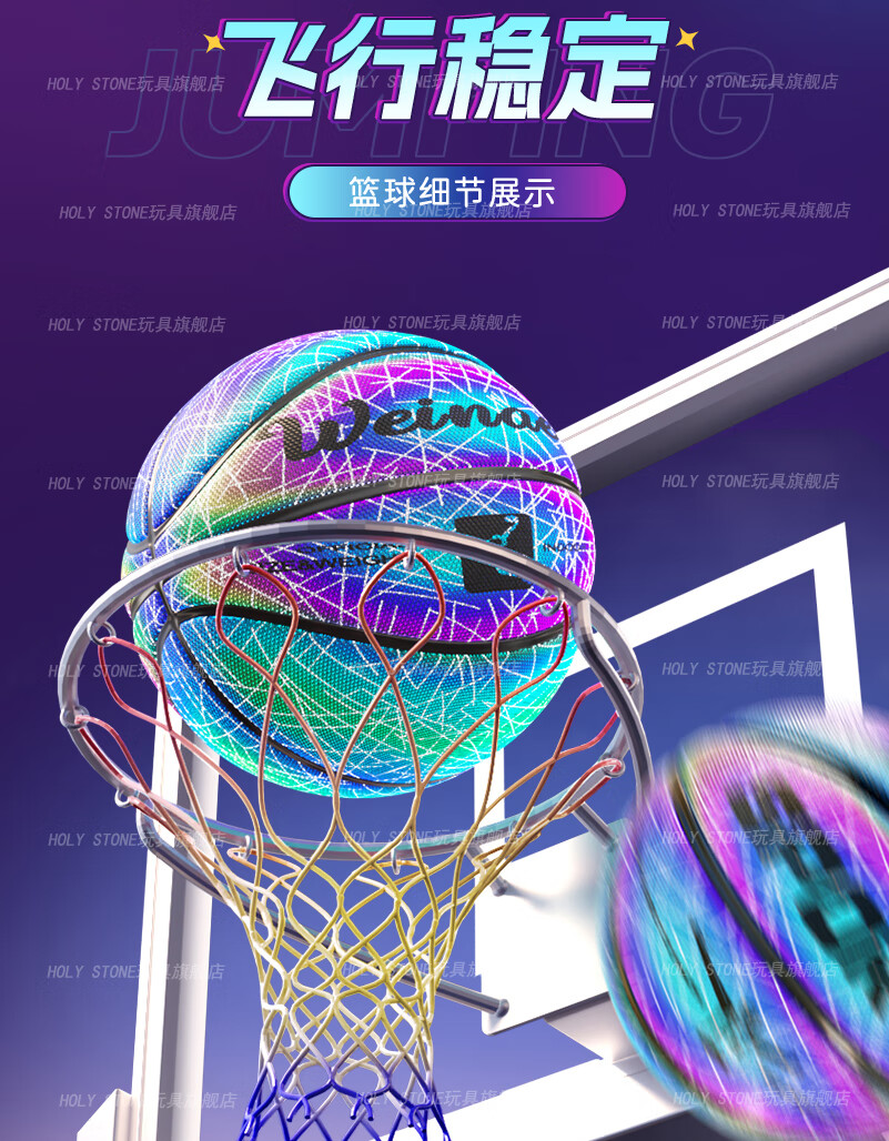 Holy STONE十岁男孩生日礼物10-14实用礼盒高档小学生发光篮球8-12岁小男生 【反光】星空彩虹篮球+精美礼盒+打气筒 56789五年级男童青少年2025火的玩具黑科技