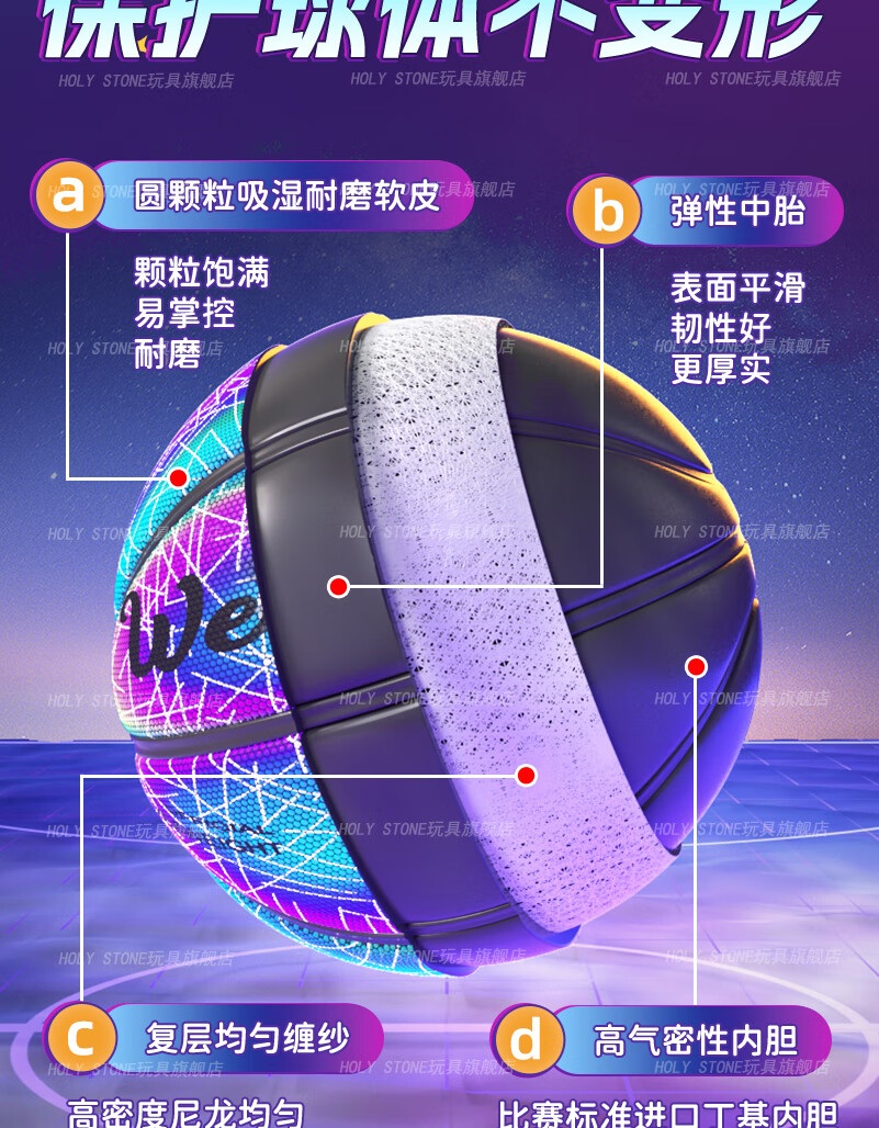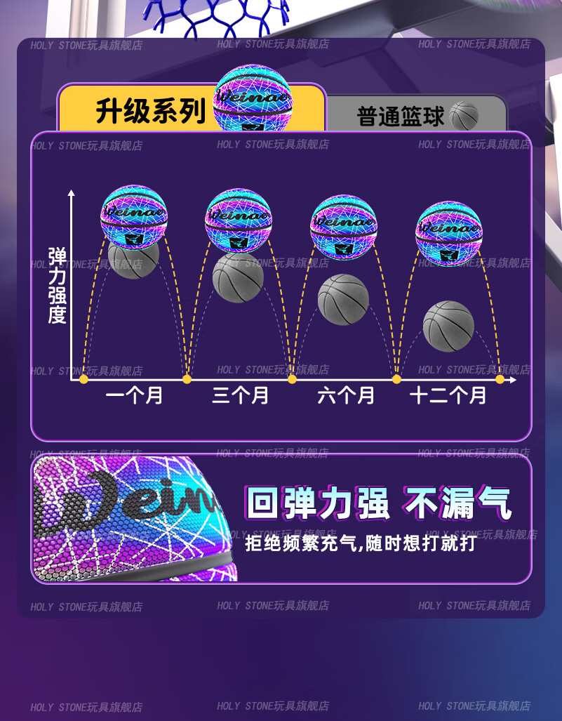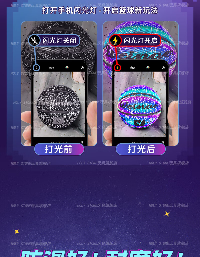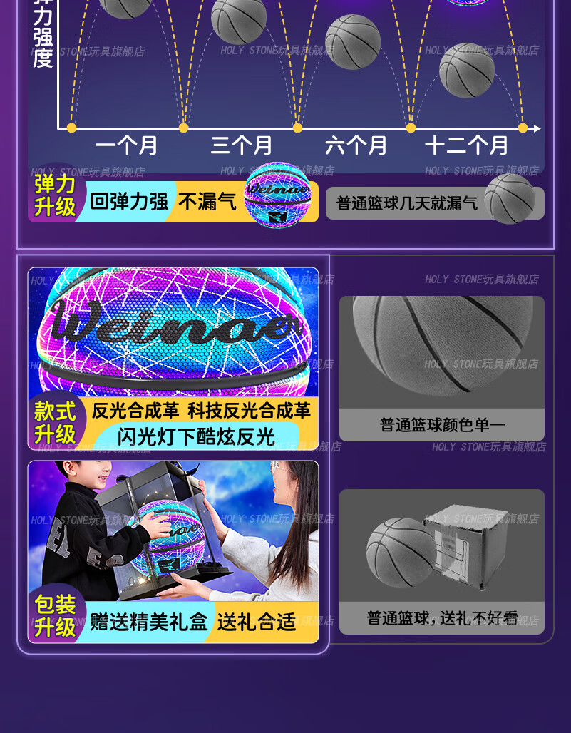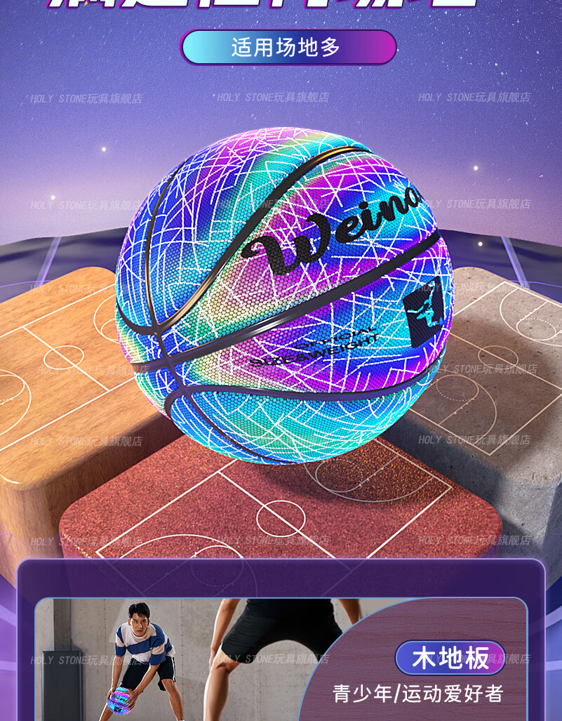 Holy STONE十岁男孩生日礼物10-14实用礼盒高档小学生发光篮球8-12岁小男生 【反光】星空彩虹篮球+精美礼盒+打气筒 56789五年级男童青少年2025火的玩具黑科技