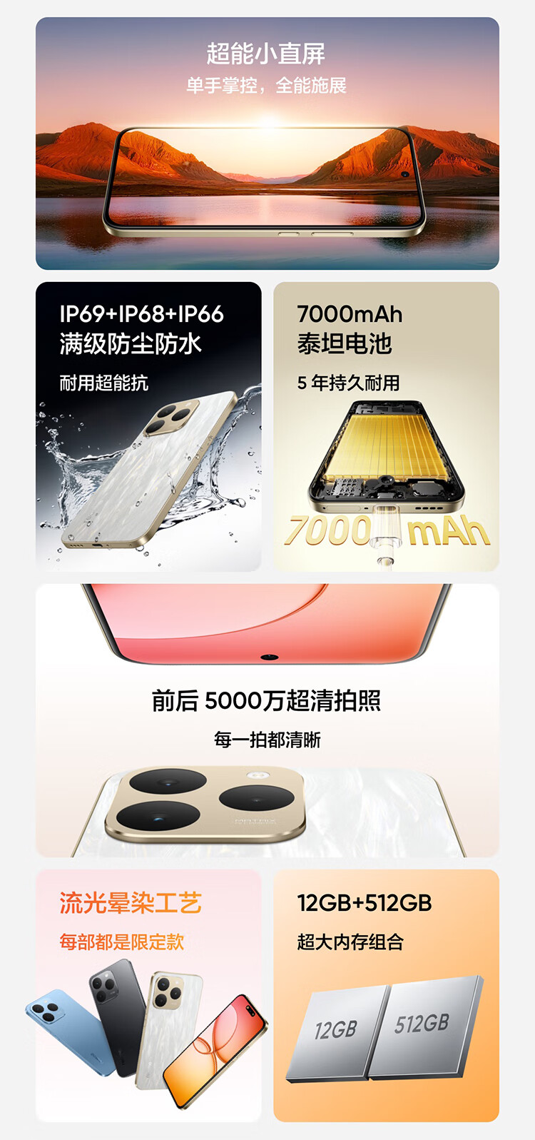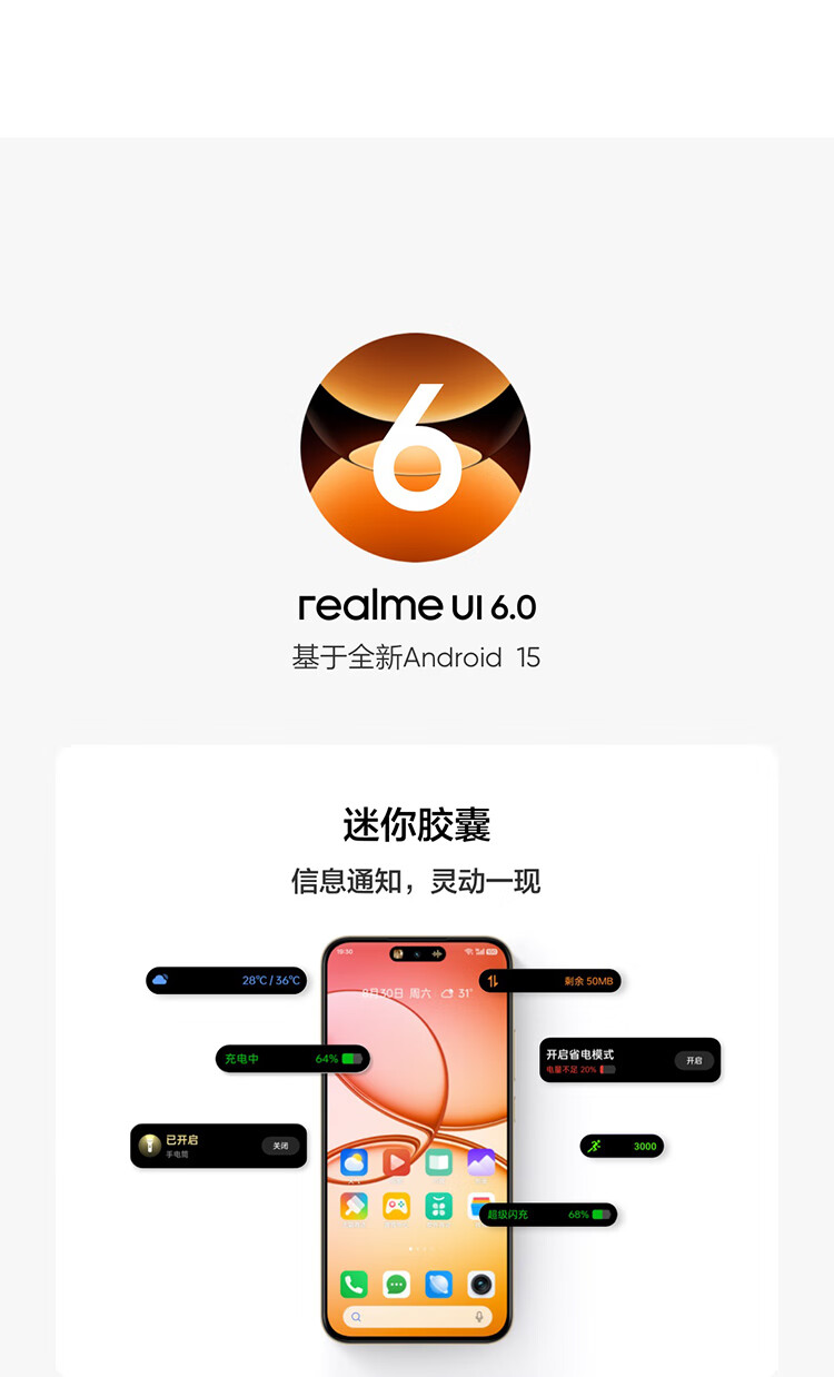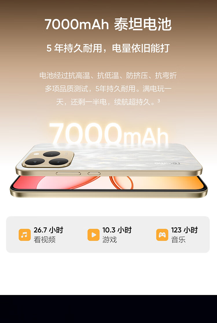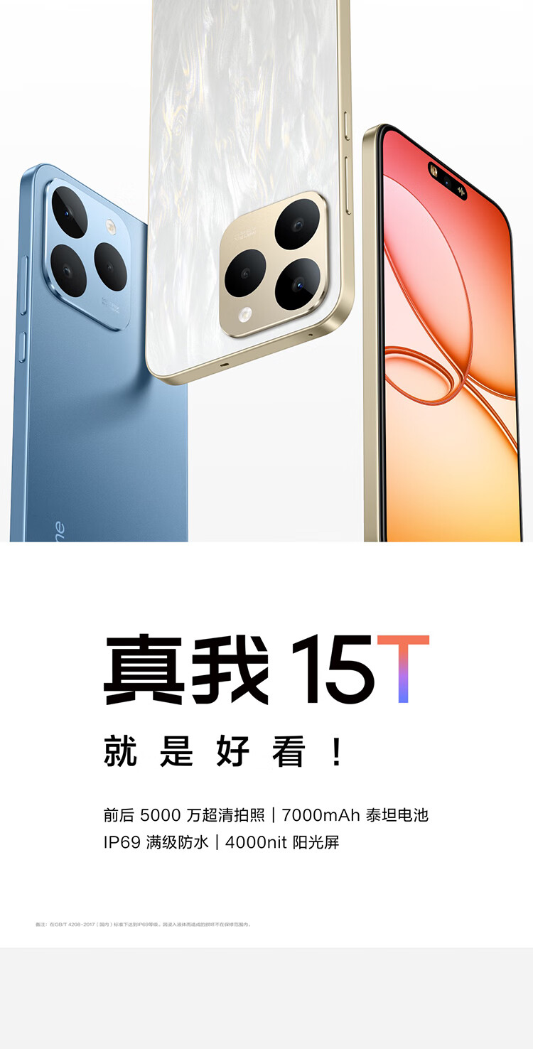 realme真我15T 超能小直屏 IP69防水耐用 7000mAh长续航 轻薄智能拍照AI手机 8+128 夜光蓝