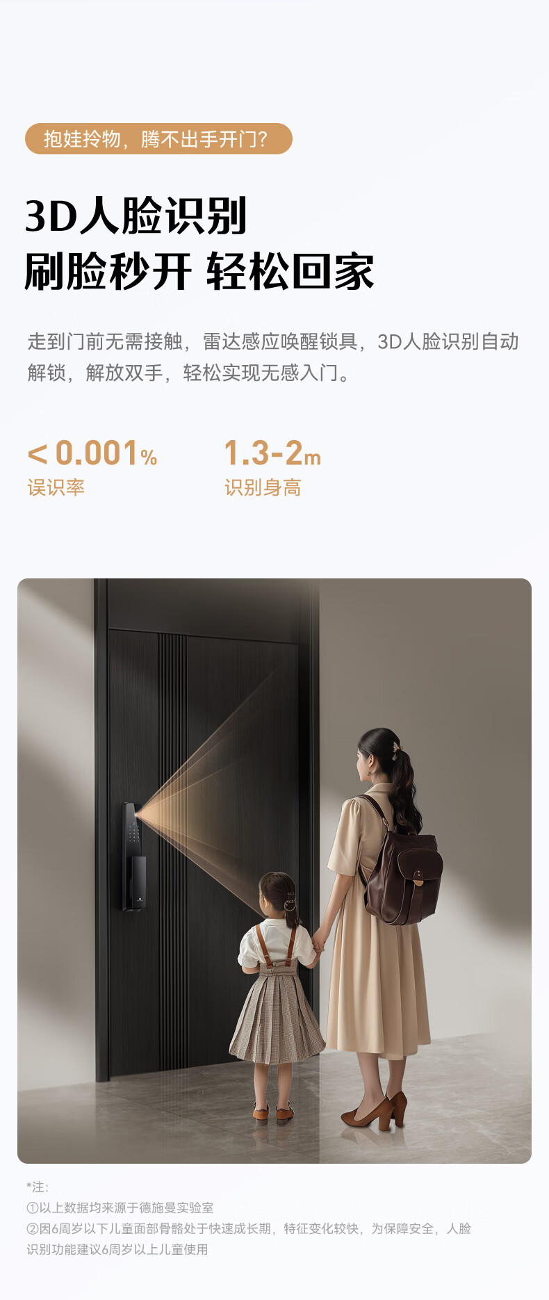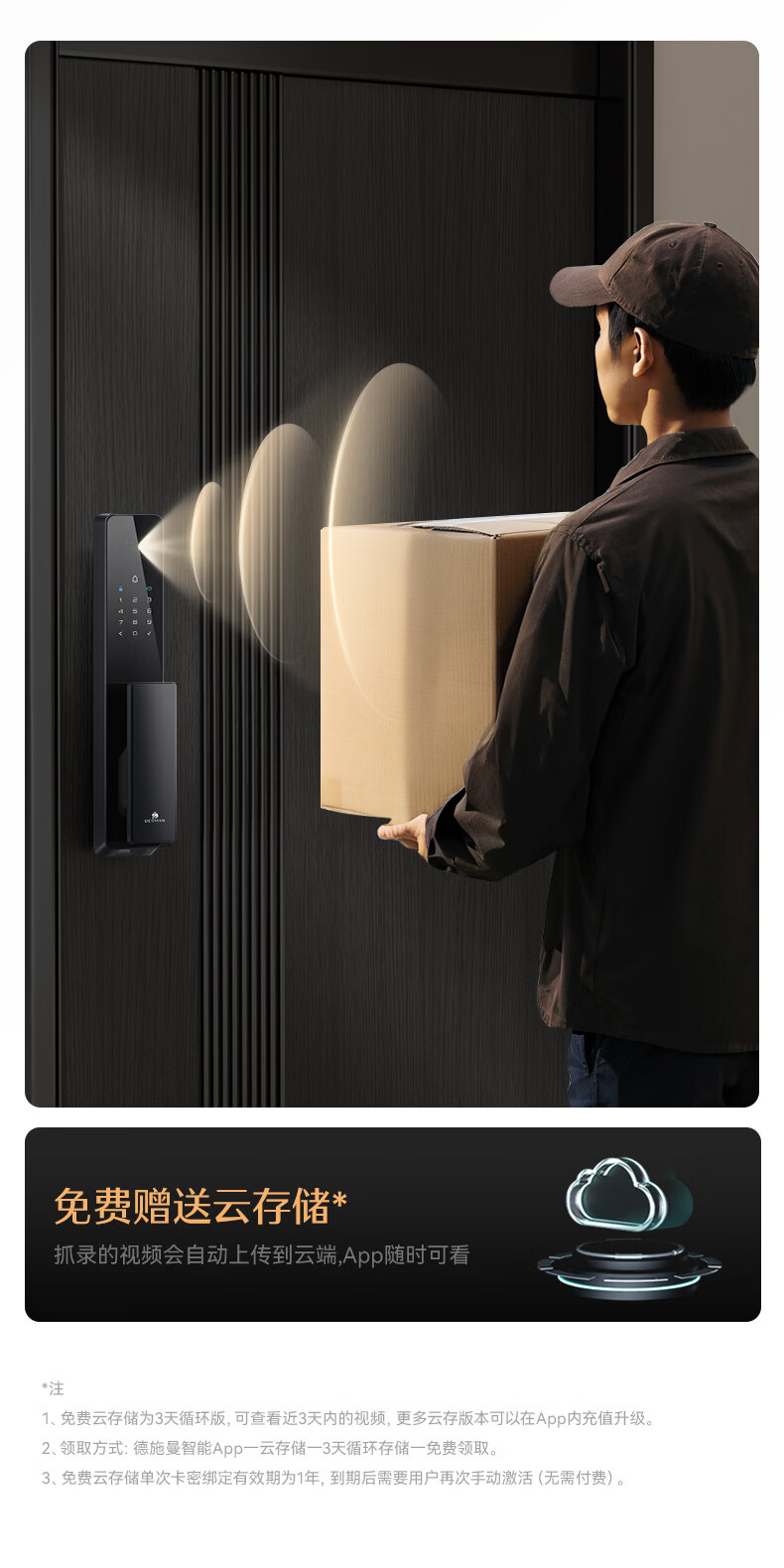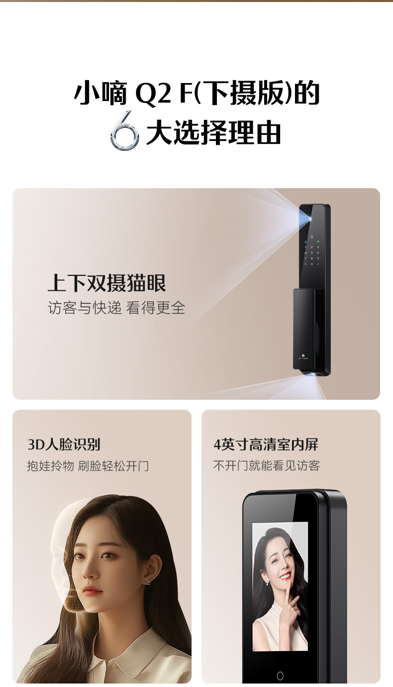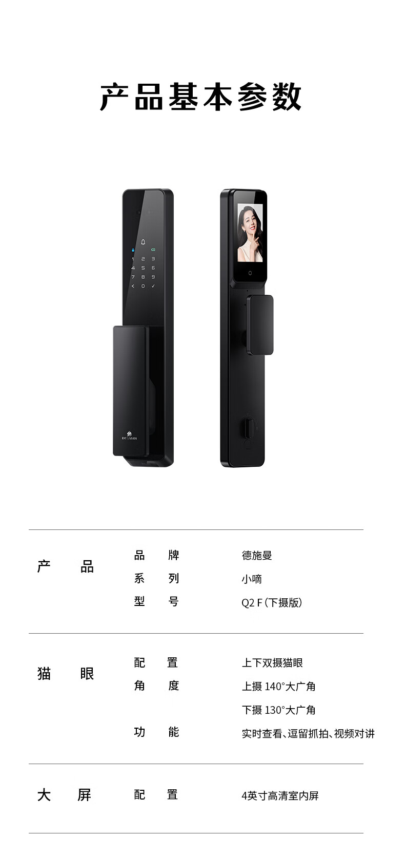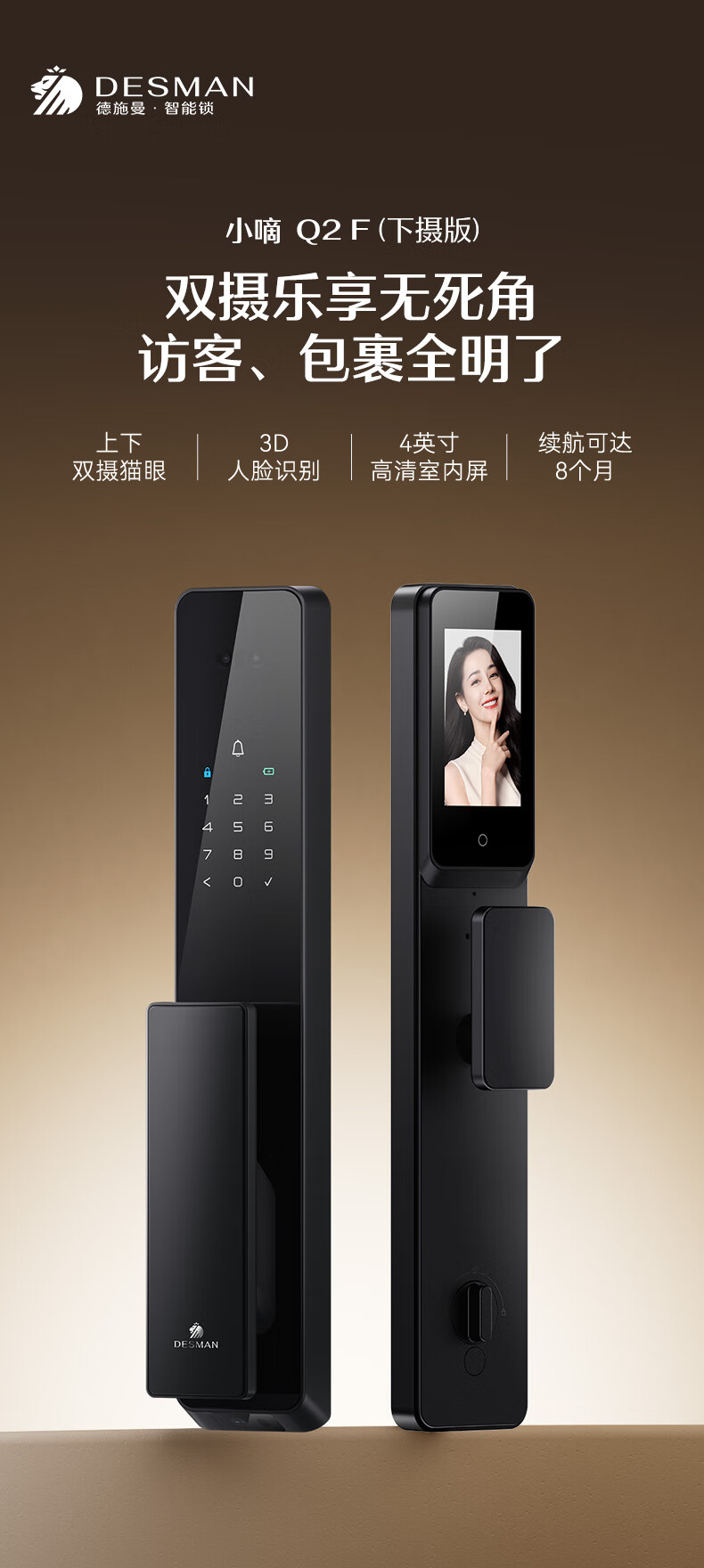 德施曼(DESMAN)智能门锁3D人脸识别猫眼大屏指纹密码电子防盗锁小嘀Q2F下摄版