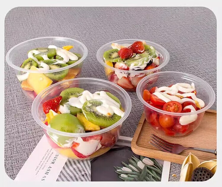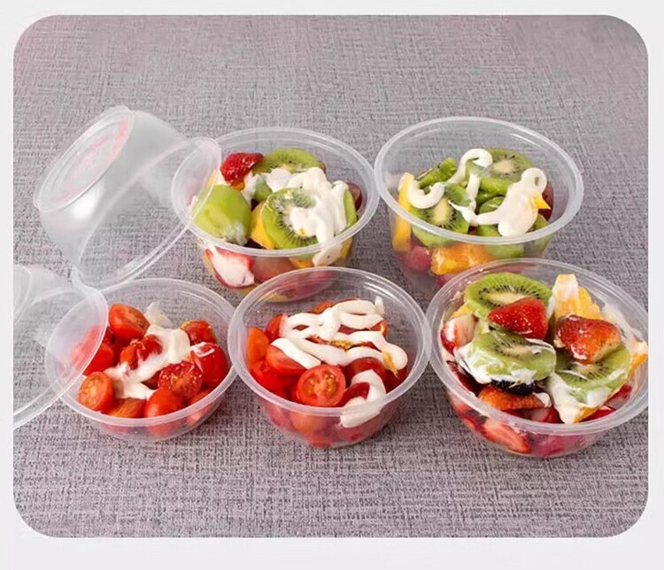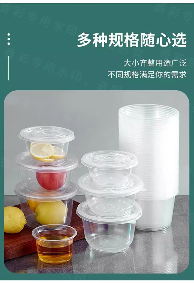 DEATKN德国一次性碗筷塑料碗打包加厚外卖小饭盒快餐盒带盖方形圆形汤碗 700型圆形-加厚【不带盖】食品级 100个碗+筷子