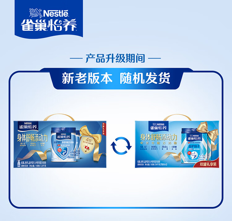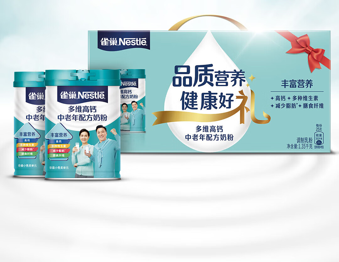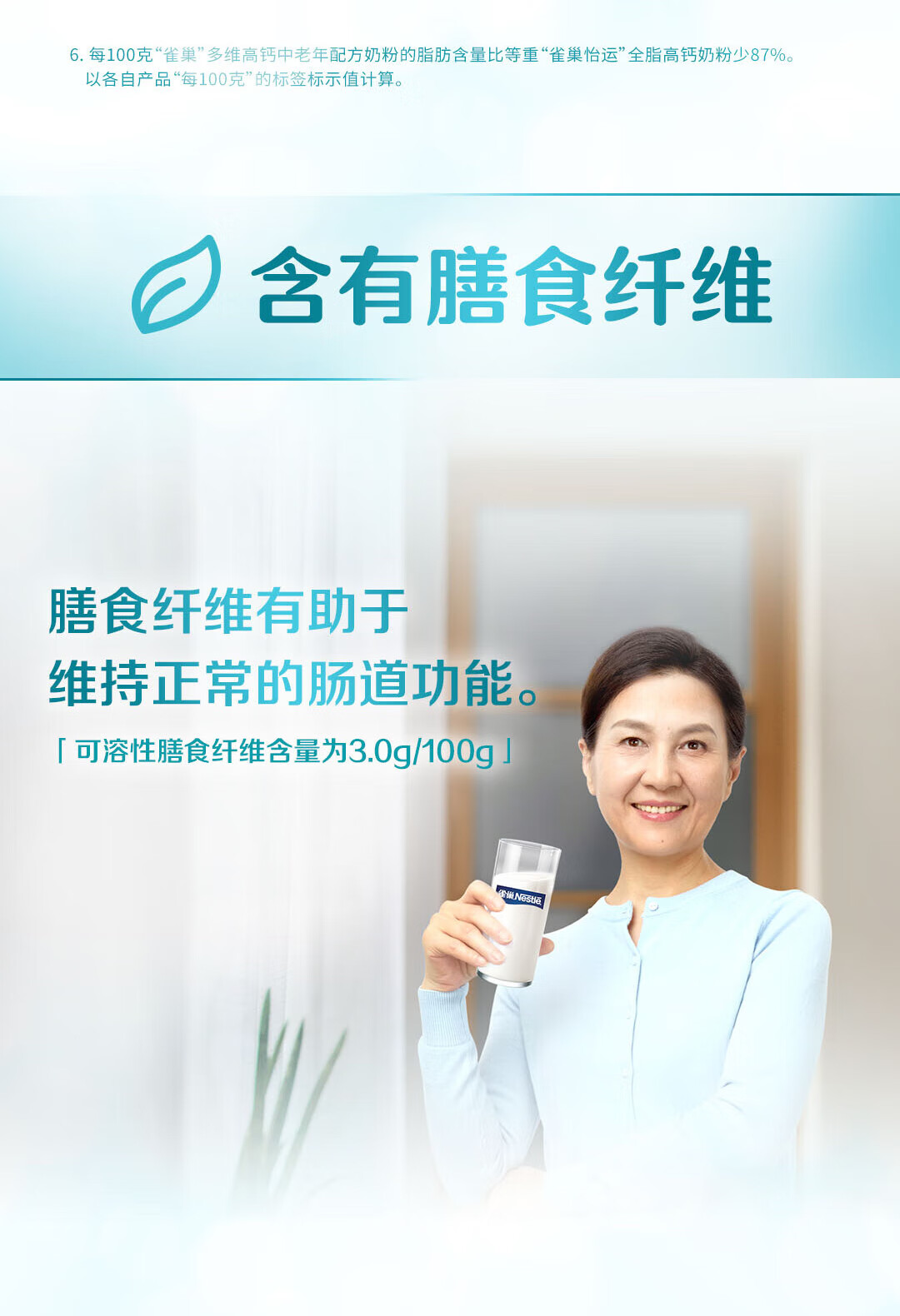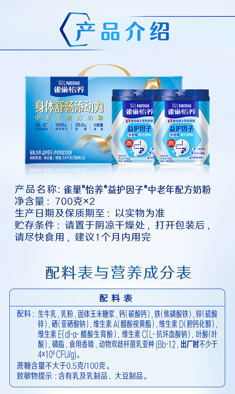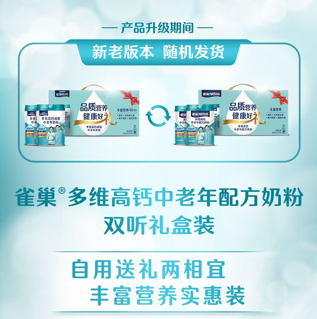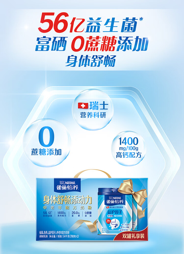 雀巢(Nestle)怡养 中老年奶粉 膳食纤维不添加蔗糖 端午送礼送老人 益护因子中老年700g*2罐礼盒装