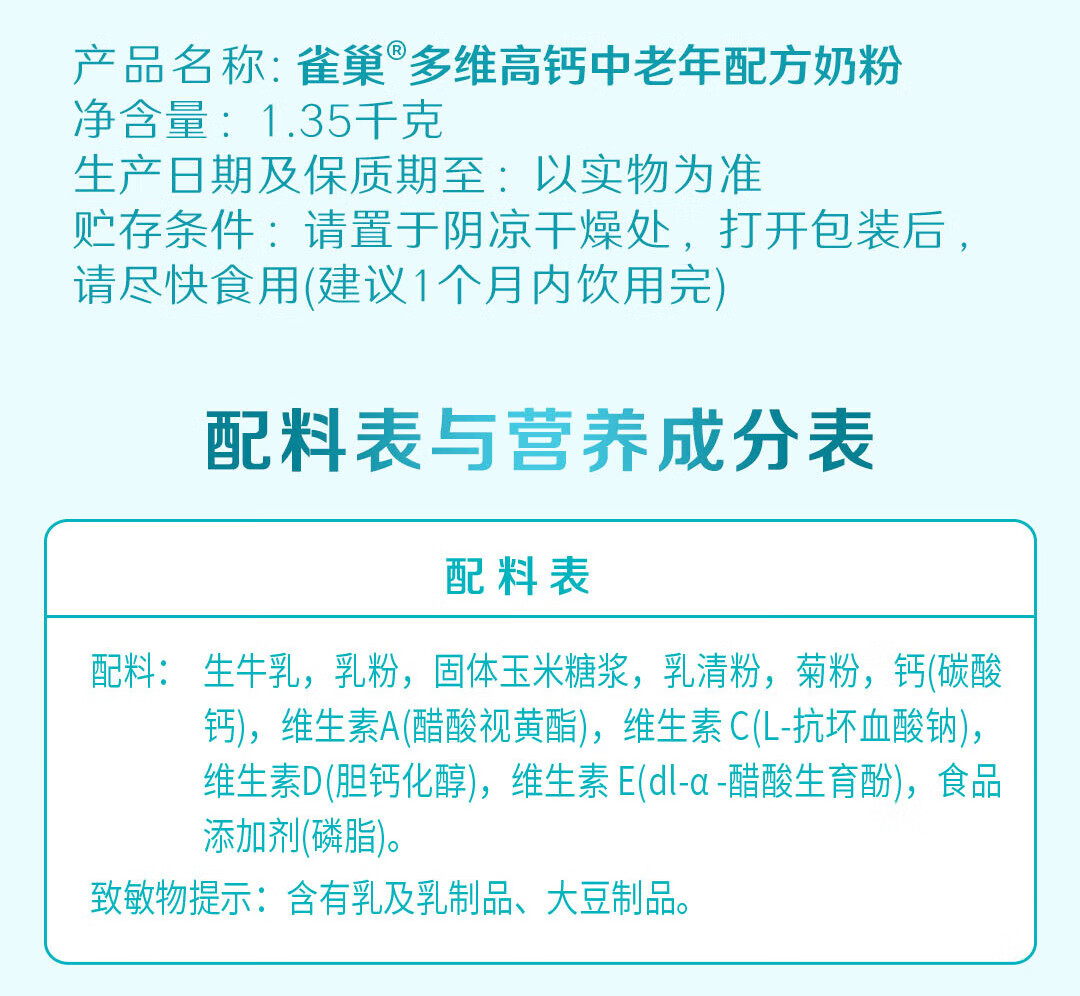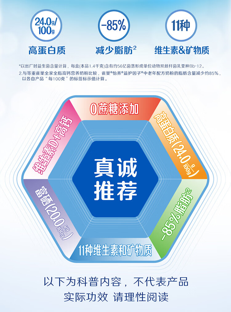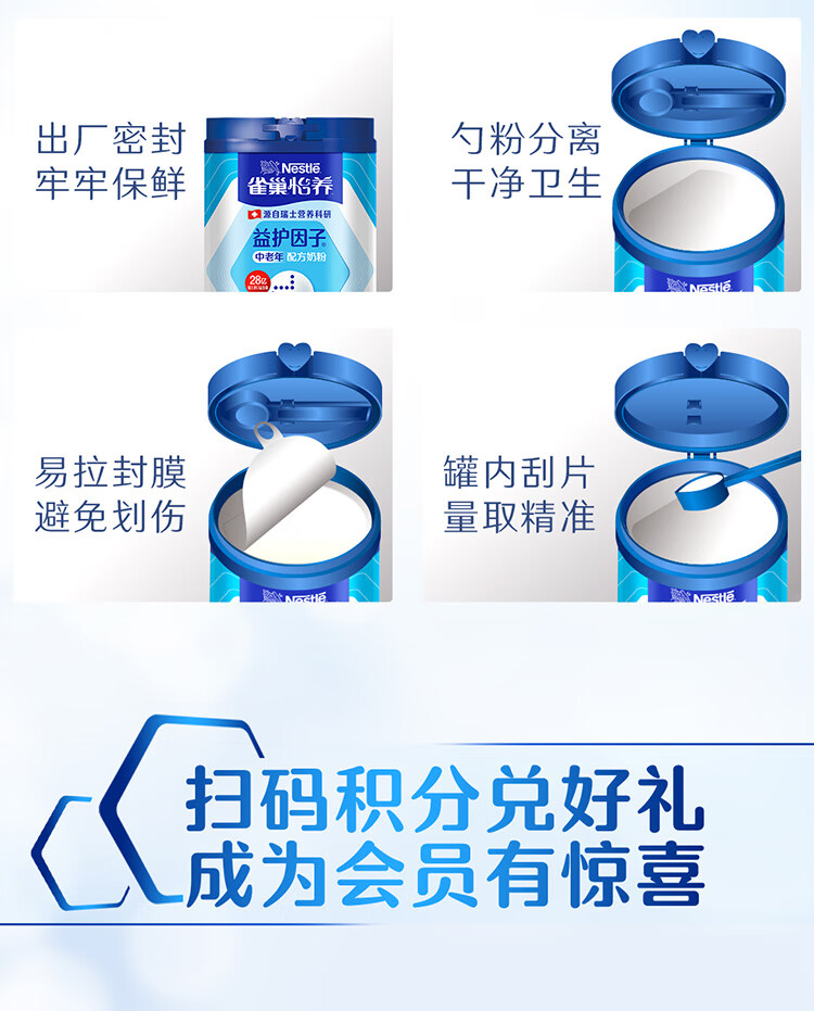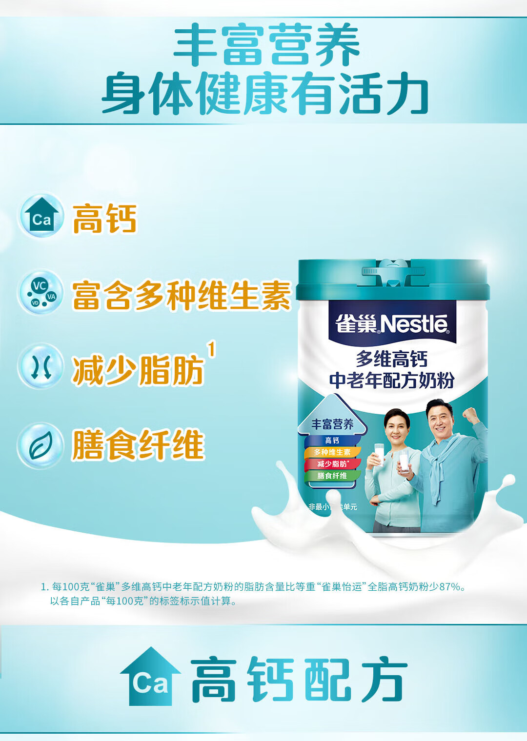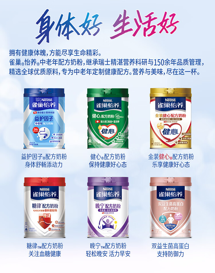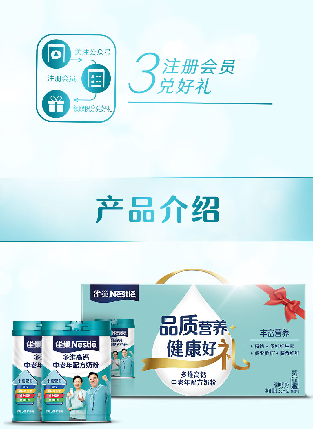 雀巢(Nestle)怡养 中老年奶粉 膳食纤维不添加蔗糖 端午送礼送老人 益护因子中老年700g*2罐礼盒装